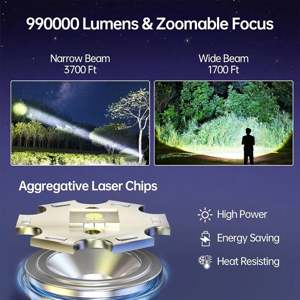 99000000 Lumens Super Bright LED Tactical Flashlight Work Light Rechargeable 2X