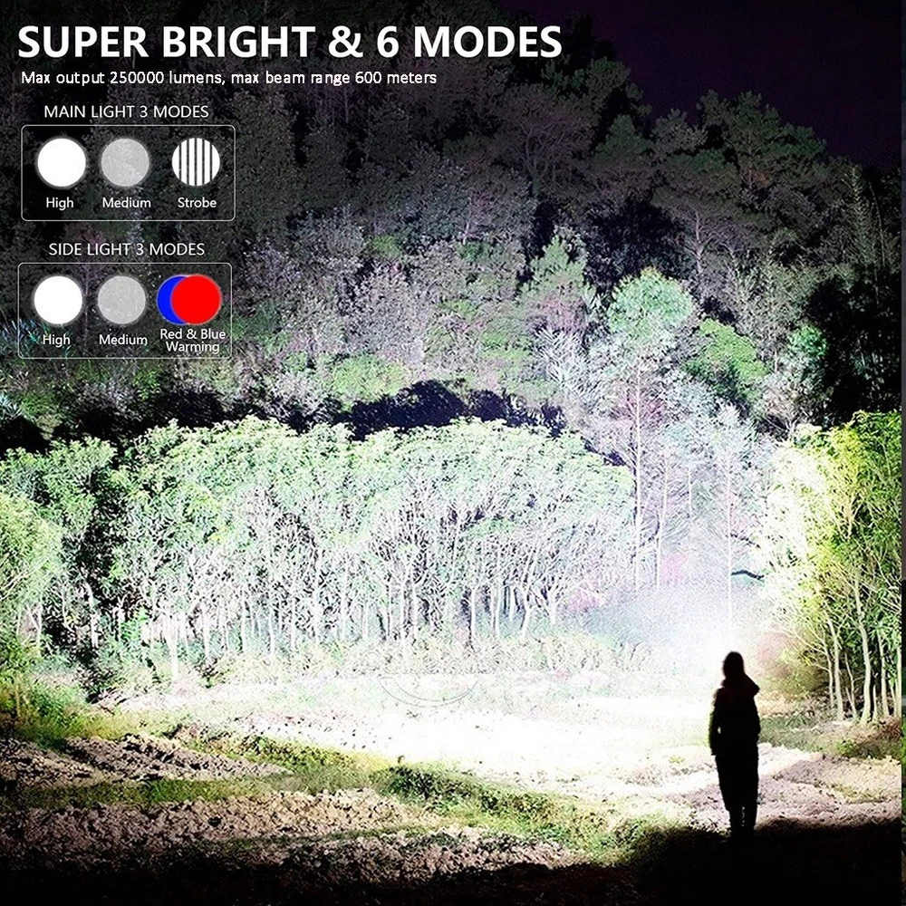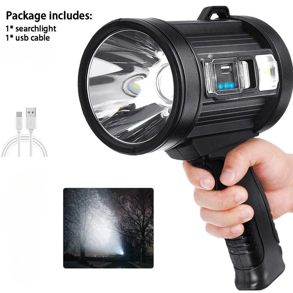 【Super Bright Large Searchlight 】Spotlight flashlights Built-in 9600mAh Battery Pack, can generate up to 90000 lumens light output,Irradiation distance is about 3280 feet(1000m), perfect for use hiking, camping, sailing or hunting outdoors, or emergency home light etcs. 【3 Main Lights Modes & 3 Side Modes】Most practical multi-functional spotlight has 3 main modes and 3 side light, front light (High -Meidum- Strobe), side light (High-Low-Safety warning light) . the warning light with red & blue light flash, which can be used as a searchlight or warning light in bad weather outdoor activities. Press and hold for 4-5 seconds to turn all off light. 【3 Charge Choice】Our solar flashlights include built-in battery USB input & output & solar, Come with a USB charging cable support rechargeable 100000 times, That's included USB Cable (4-5hrs) or by solar power (10-20hrs).The 3 blue indicator lights will show the battery situation (35%,65%,100%).USB output become power bank for your mobile phone, camera, digital product in emergency. 【IPX6 Waterproof & Durable】Super Bright flashlight ergonomic handles made of high quality ABS and aluminum alloy materials, upper tightness and IPX6 waterproof can easily handle water drops and other scratches you will encounter, Also with skid-proof, shock-proof, waterproof,rainproof, dustproof etcs advantages. 【Enjoy your 3 Color Filter】The spotlight also come with 3 color lens (red,yellow,blue), Made your own have 9 different lighting modes to indoor and outdoor activities, Put on the Blue /Yellow/Red filter both have 3 lighting modes (High - Medium - Strobe). 【Unique design】Handheld spotlight flashlight with one-touch off and power display. When you are ready to turn off the spotlight, you can simply press and hold the button for three seconds to achieve one-touch shutdown. When you turn on the LED spotlight, the power display light will automatically light up to show the real-time power level; you can also press the button next to the power display light to check the power level 【2 Years After-sale Service】Despite our best efforts, we still cannot guarantee that our led searchlights will be 100% trouble-free. So the rechargeable spot lights provide 7 x 24 hours customer service guarantee. If you receive a defective product, contact us and we will immediately send you a replacement unit for free. 【Upgraded switch Button & Package Kits】Press and hold for 4-5 seconds to turn off all lights. Spotlight kit include: 1 X Flashlight Spotlight, 3 X Filter (Red, Blue, Yellow),1 X USB Cable, 1 X Packing Box. Note: Item built-in 2pc 18650 rechargeable battery(4500mAh) Best gifts for men. The LED spotlight has has 3 main modes and 3 side light. Choose the appropriate lighting mode according to your needs. Solar spotlight is suitable for farm use, daily indoor work, and car emergency use. Nine hours full NEXTWOOD Solar Charging Spotlight We found that as an outdoor camping light, one must have an endless supply of power, so we added a solar charging panel to the outdoor spotlight, which made this searchlight one of the hottest in the entire category of outdoor handheld spotlights in the second half of 2022. This is an all-round spotlight, it can be used as a handheld flashlight, searchlight, handheld spotlight, camping light, fishing light, table lamp, desk lamp. Product main function Additional features of the product Xhp70 chip This high-power spotlight is with a xhp70 chip, stable and bright, it has a powerful output, message clearly illuminate the objects within 3260ft. 9600mAh battery Built-in large rechargeable 9600mah battery, the flashlight can be used for up to 8 hours, lighting time up to 30 hours in low lighting mode. Radiator Cup Spotlight uses an upgraded radiator cup. Prevent LED lamp beads from being damaged during use, reduce flashlight temperature and power consumption. Add 3 color filters With red, blue and yellow filters. You can switch between different lighting colors by putting on the corresponding color filter. The spotlight is equipped for a variety of scenes, is a must for home, outdoor.