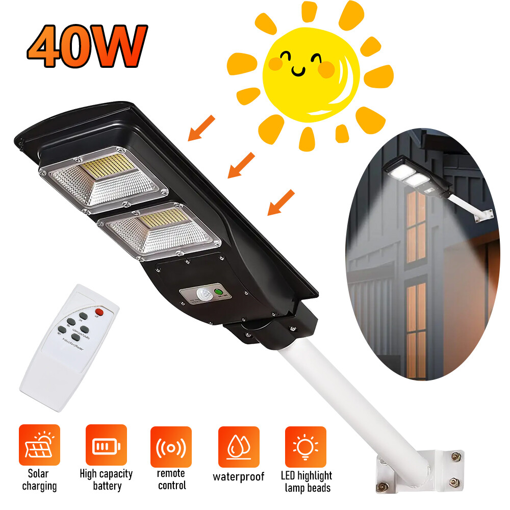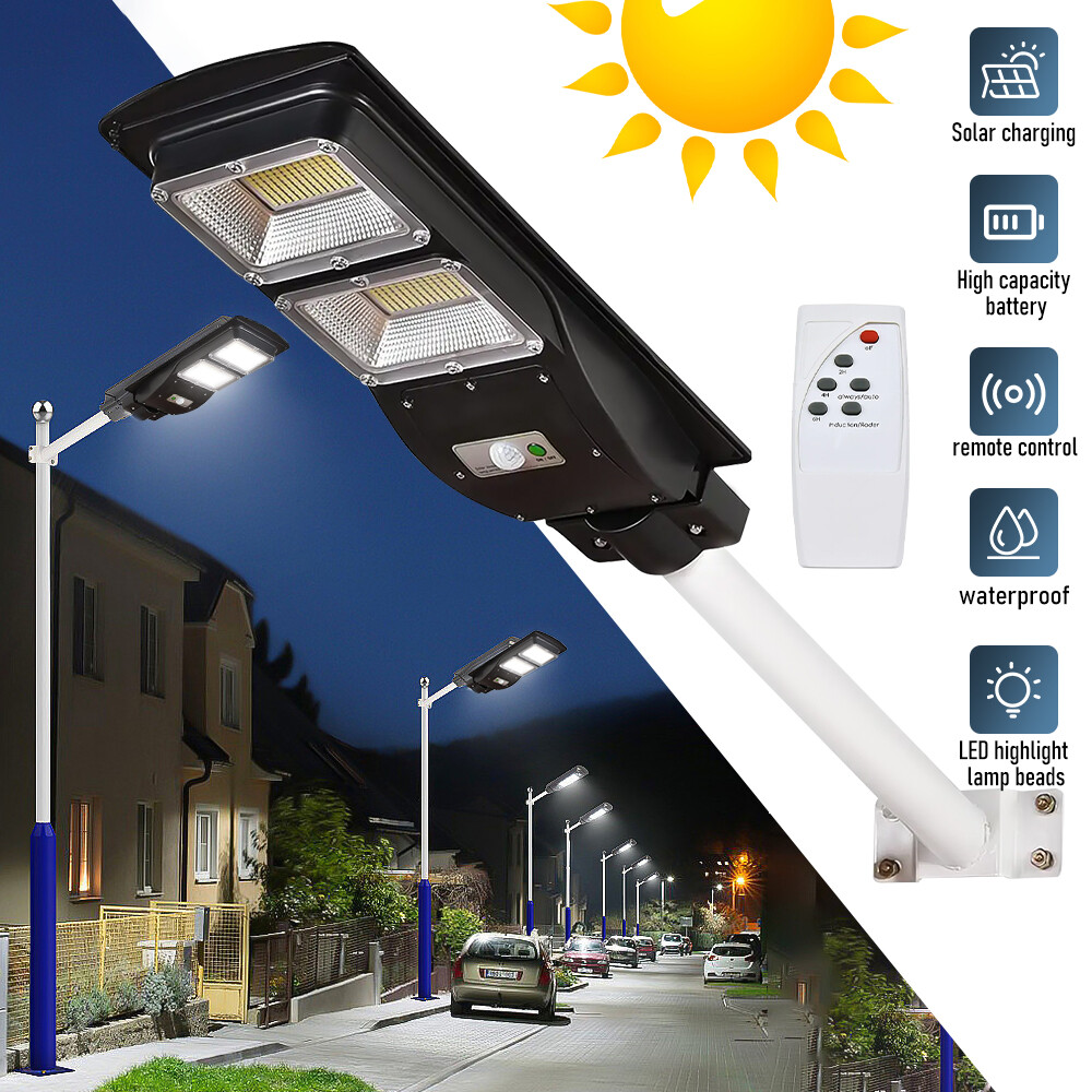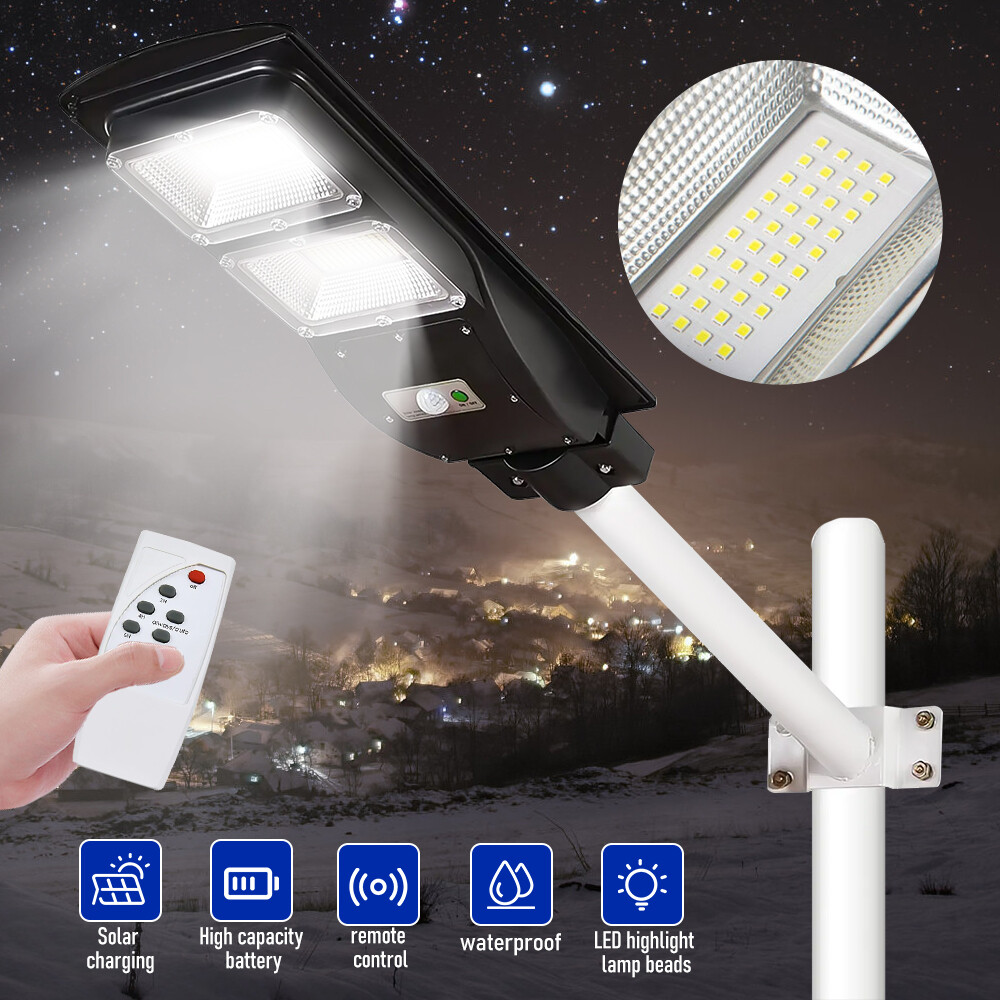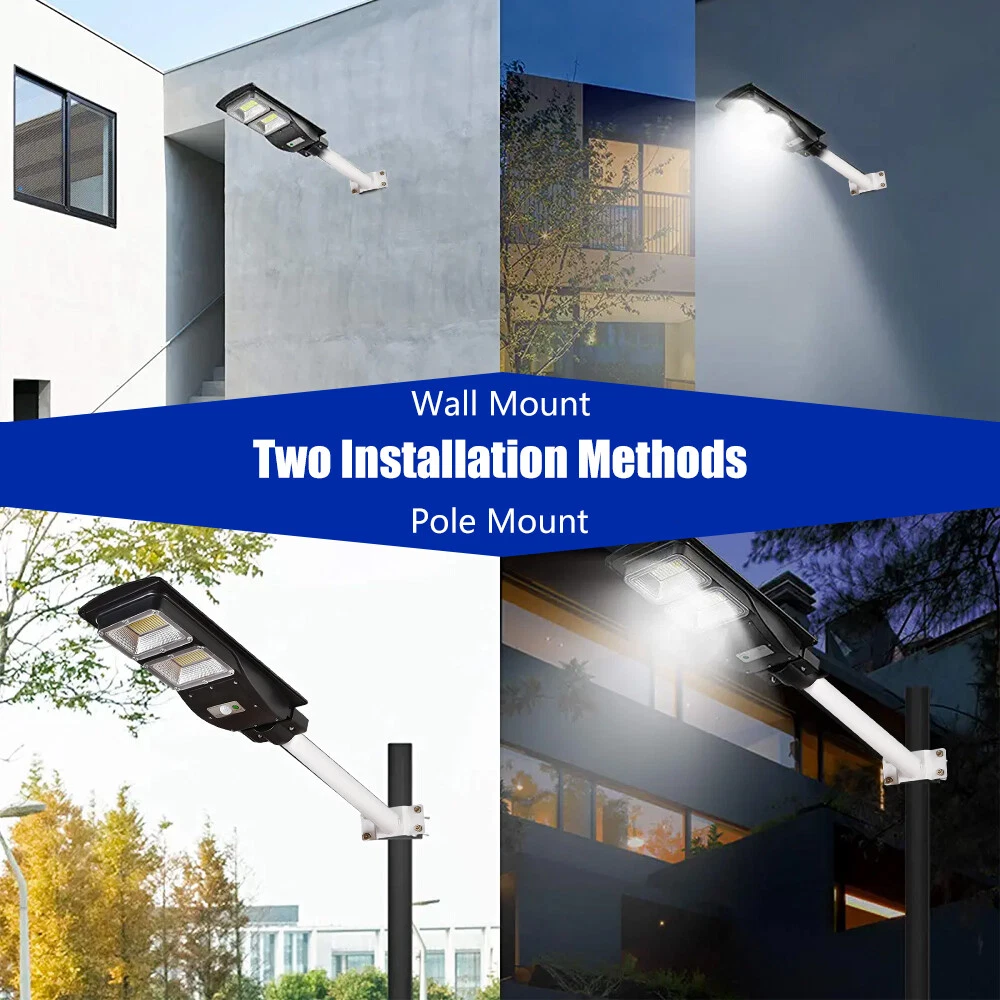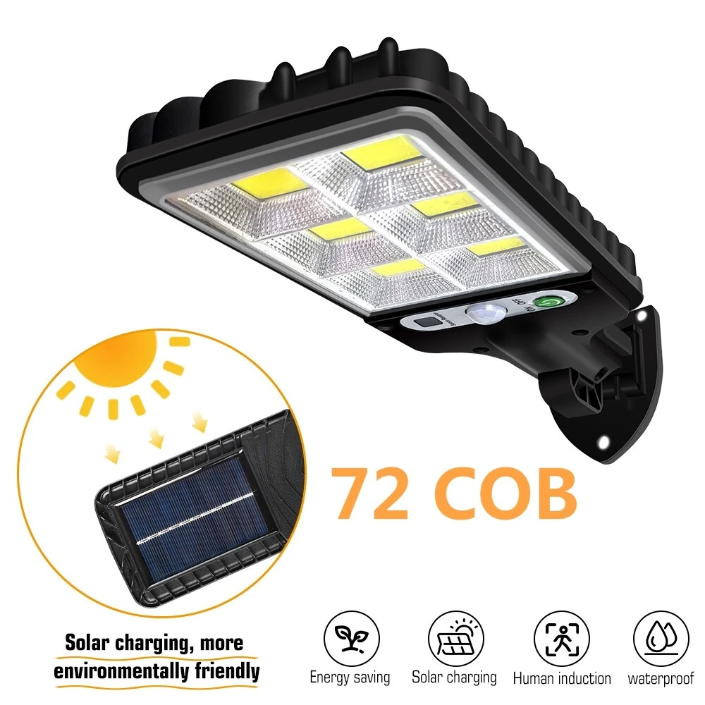 Note: There are 2 kinds of products with different specifications in this link, the product corresponding to the picture in the options is the product you will receive. Please buy your favorite products according to your own preferences. Thank you for understanding! --------------------------------------------------------------------------------------------------------------------------------------------------------------------- Solar Road Lamp Featu re : Intelligent Control - Street Lighting control: Automatically turn off at dawn, turn on at dusk. Remote Control: force the switch, timing, adjust the brightness, convenient. Energy saving, and no pollution SAVE MONEY-Commercial solar street lights built with patented technology to last for 50,000+ hours, aluminum material and PVC with excellent heat dissipation, you are reducing your electricity cost by up to 80% High Brightness(300W Equivalent) LED chips solar powered lamp beads, energy saving, even light, longer working. IP65 waterproof, which can work in any severe weather Easy to Installation-Mounted with screws, Mount onto wall, pole, tree, balcony, anywhere outdoor. No wiring required, no maintenance, installation can be used. Ideal for street and roads, courtyard, parks, squares, private gardens, courtyard, etc Specifications: Power: 100W Shell material: Aluminum alloy+ PC Solar Panel: Poly crystalline Solar Panel 6V Control System: Light Control + Radar Sensing Intelligent Recognition + Remote control (all LED on when sensing motion, 30% power on when sension no motion) Charge Time: About 6H with full sunshine Work Time: About 8-13H Irradiation Area: 80/120 square meters Recommended installation height: 3-5M Sensing distance: 3-5m Light Color : White (5500k) Waterproof Rate: IP65 Suitable For 50cm Mounting Pole Package Included: 1x Solar Street Light 1x Remote Control Does not contain: Mounting pole =========================================================================================== Solar Wall Lamp Description: 100% brand new and high quality. LEDs Super Bright: Unique designed, the led solar lights outdoor produce ultra-high brightness illumination for a wide area, providing lighting and security to front door, pathway, porch, front/back yards, gardens, driveways ,fence, wall, stairways, landscape, patio or any outdoor places that needs lighting, bring you a super bright lighting experience. 1200mAh Capacity Longer Lighting: The solar security light outdoor build in 1200 mAh rechargeable lithium-ion battery allows the solar lamp to be continuously illuminated for longer lighting.The solar light needs 6-8 hours of sunlight charging during the day and 6-12 hours of normal operation at night. Automatically Turn on: The PIR motion sensor can scan the heat source that continuously moves within the detection range. When someone appears in the area, the light will automatically turn on. 120° Wide-Angle Lighting: The solar lighting features high sensitivity and adjustable bracket design, can sensitively sense moving objects in 3-5m with 120 degrees range, providing security and convenience for your home when night falls. Durable & Waterproof: The solar street light is made of high-impact ABS which is waterproof makes it to withstand a variety of outdoor environments and other extreme weather conditions, suitable to be installed on front door, backyard, porch, patio, pathway, driveway, garage wall, and more places where sunlight can go. Specification: Material: ABS Highlight Delay: 20s Lighting Angle: 360° Solar Panel: 5.5V/2.5W Charging Time: 6-8h Working Time: 6-12h LED Qty: 72COB Waterproof: IP67 Battery: 3.7V 1200mAh lithium battery Working Mode: 3 Modes Size: 84*227mm/3.3*8.9inch Package Included: 1pcs* Solar Street Light