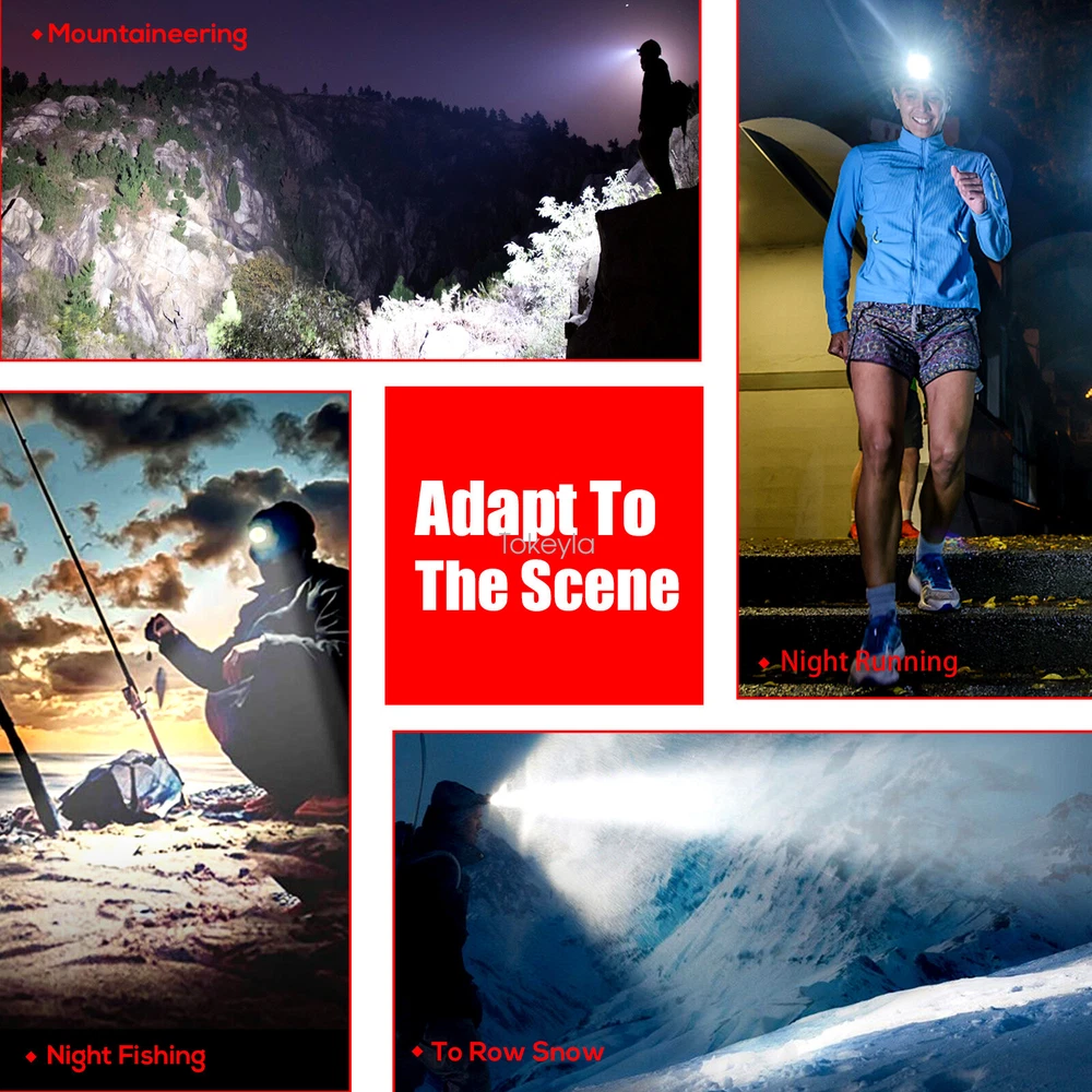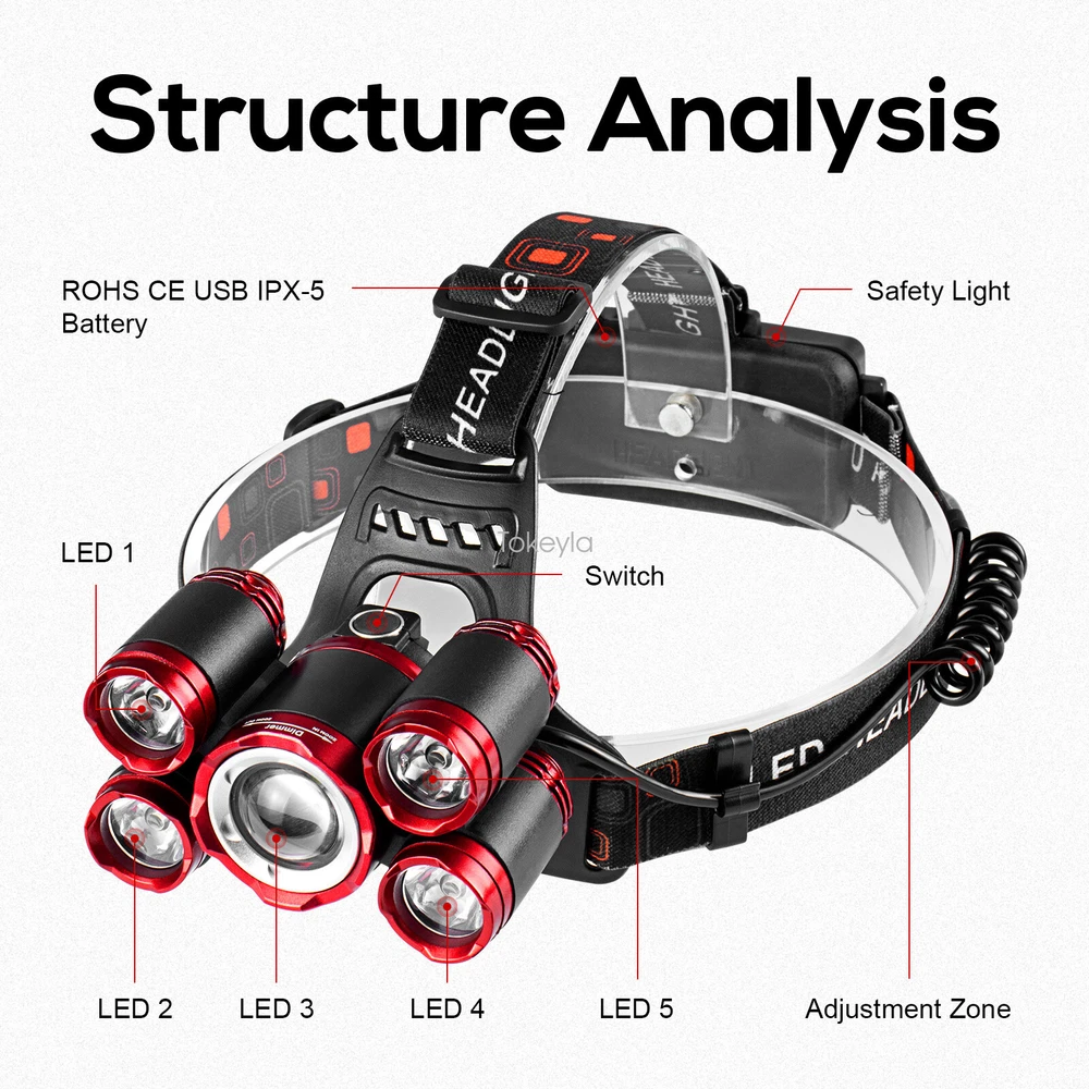990000LM LED Headlamp Flashlight Super Bright Headlight Head Torch Waterproof LED Headlamp Features: 1.This LED Headlamp Flashlight Headlight can be worn on your head so that you can do what you want to do with the lights from your head. 2.Wearing this headband light, you could do what you intend to do while having your hands free. 3.It comes with 4 modes for you to choose from. 4.As it is USB rechargeable, it can work well as long as you have a power bank, a charger, a laptop and so on. 5.4.A wonderful helper to provide a low brightness lighting when you are hiking, camping, cycling, fishing, building something at night and so on. 6.The batteries are included to help you use it immediately once you receive it. LED Headlamp Specifications: Theme: LED Headlamp Flashlight Headlight Type: 5x LED LED Headlamp Flashlight Headlight Material: Aluminum Alloy, ABS Plastic Bulb: 5 x LED bulb Color: Red Life Span: over 10,000 hours Working Voltage: 4.2 V Charger Type: 5V 1A USB Charging Running Time(Longest): 3-5H 4 Modes: main light/4 side light/all light/strobe super bright LED Headlamp Rechargeable A super bright LED Headlamp Rechargeable. The combination of 5 LED gives out the brightest light. Package Included: Only 1x LED Headlamp Flashlight Headlight (No Battery) On Feb 2, 2025 at 19:35:23 PST, seller added the following information: