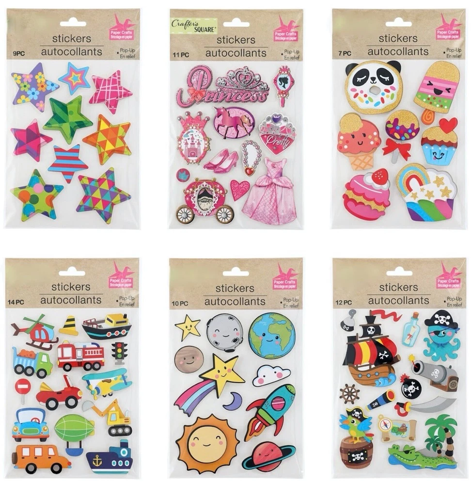Brand: Assortment of Popular Brands gtin13: 195464164365 Theme: Animal + Nature + Sports + Food + Travel + Numbers + Letters Color: Multi-Color UPC: 195464164365 Type: Vinyl Foil Embossed Puffy Magic On Craft Pop Up