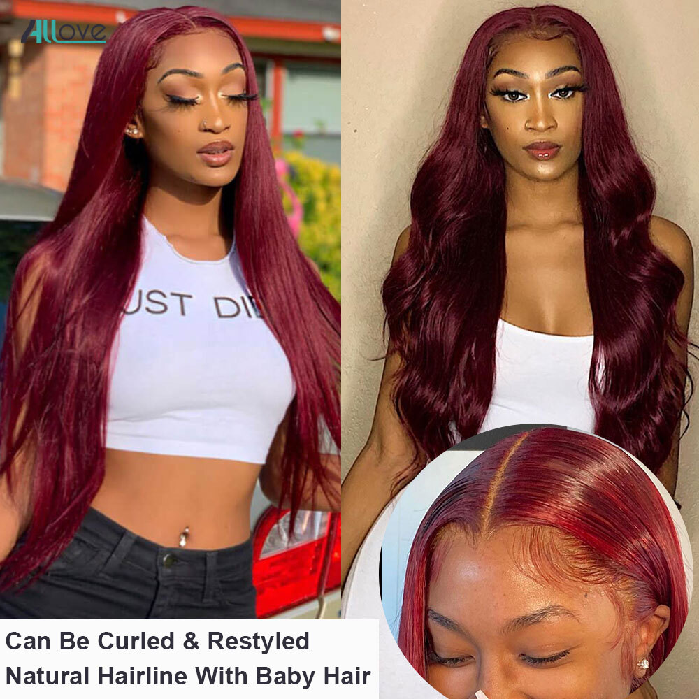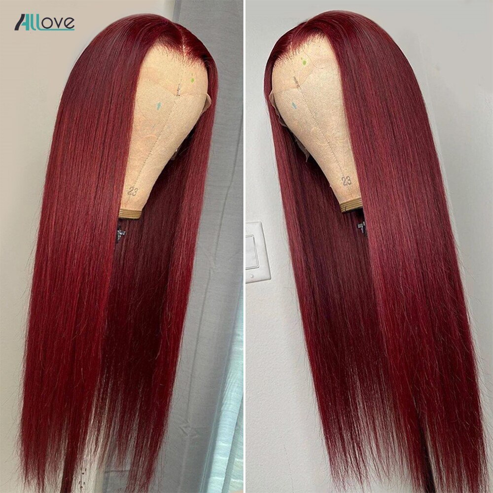 99J Burgundy 13x4 Lace Front Human Hair Wigs Brazilian Straight For Women Remy