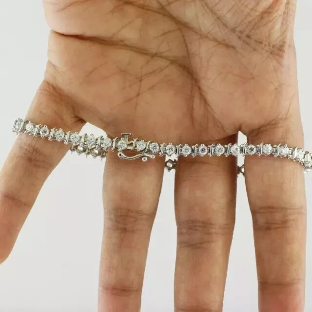Sizable: Yes Metal Purity: 925 Features: Engraved Color: White Shape: Round Seller Warranty: Yes Diamond Clarity Grade: Very, Very Slightly Included (VVS1) Secondary Stone: Diamond Main Stone Treatment: Not Enhanced Main Stone Color: White Material: Stone, Metal Main Stone Creation: Lab-Created Metal: Sterling Silver Setting Style: Prong Seller Notes: “?***$$$Valentine-day Big Sale Offer *$$?” Main Stone Shape: Round Cut Grade: Excellent Wholesale: Yes Type: Bracelet Occasion: Anniversary, Birthday, Christmas, Engagement, Valentine's Day, Wedding Certification: NA Chain Type: Round Link Diamond Color Grade: D Main Stone: Diamond Customized: Yes Closure: Spring Ring Base Metal: Silver Total Carat Weight: 9.00 Ctw Personalize: Yes Colored Diamond Intensity: Fancy Item Length: 7.5 in Theme: Beauty Style: Tennis Brand: Jewelryforyou-7 Gemstone Clarity Grade: Eye Clean