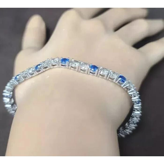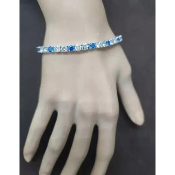 $ 2323.214k Wh Gold-Plated Lab-Created 4cts Round Cut Blue Sapphire Tennis Bracelet 7”