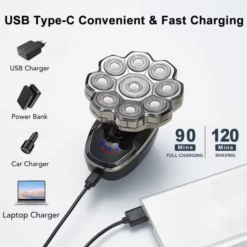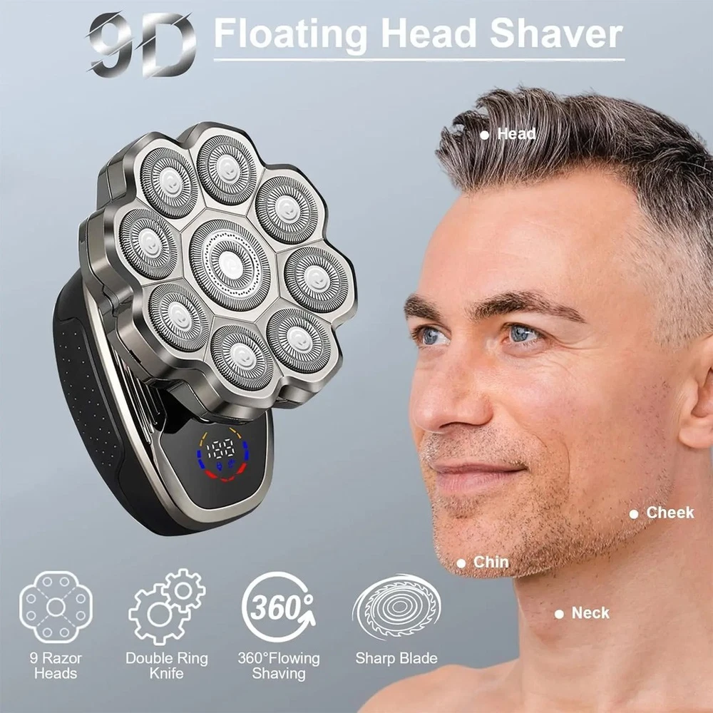 9D Bald Head Shavers Electric Shaver Cordless Wet Dry Rotary Razor for Men Tool