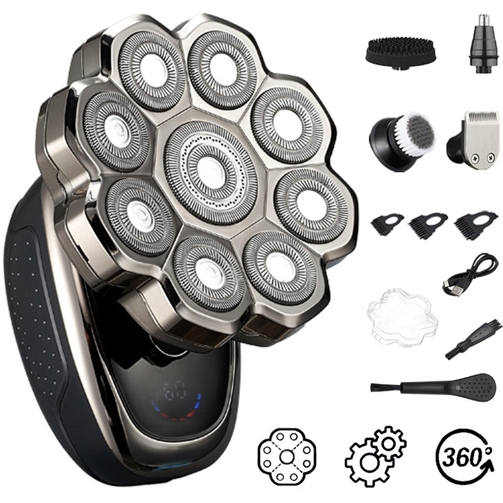 HOME PAYMENT SHIPPING ABOUT US CONTACT US Store Categories Store Categories Laptop Case Mobile Case Apple MacBook Accessories GPS Navigation Case LCD Screen Protector For Camera For Mobile For Laptop For GPS Lady Bag iPad / Tablet Case Camera / Camcorder Case Poly Mail Bags Belt Home Fitness Yoga Equipment Wallet Rugs Sofa Covers Decorative lights Kitchen Cleaning Gloves Ice Cube Mold Backpack Other DETAIL Product Description 9D Bald Head Shavers 5 in1 Cordless Electric Shaver Wet Dry Rotary Razor for Men Description: Upgraded 9D Electric Shaver: The head shaver for bald men uses double-layer durable blade to accurately capture long and short hairs, which are precise, sharp and safe. The double net provides protection and reduces irritation. The intelligent induction system effectively prevents hair pinching. This head shaver increase the contact area with the head to help you finish shaving faster. Accurately follow your face or head's contour and provide a complete hair removal experience. 5-in-1 Grooming Kit: Electric shavers for men includes 5 detachable Accessories, Head/Beard Shaver, Nose/Ear Hair Trimmer, Hair Trimmer(3/5/7mm), Facial Massage Brush, Facial Cleaning Brush, Body Trimmer. Expert 5 in 1 Multifunctional electric shavers, Different types of head razor shaver accessories meet all your personal facial shaving needs for beard and hair. Great gifts for husband, partner, father, friends and brothers. Ergonomic Design: This head shaver for men is small and portable for travel. The non-slip edge ensures a good grip, and the smart safety design prevents accidental activation. This electric head shaver set makes a great gift for your husband or boyfriend. Rechargeable Shaver & LED Display: 9D head shaver supports various USB devices for charging, 1.5 hours of fast charging can provide 90 minutes of working time. The bald head shaver for men with LED Display which you could easily check the power percentage. Bald head shaving machine for men is durable and sustainable, energy saving and money saving. Specification: Product Name: 9D Electric Shavers Material: ABS Battery Capacity: 600mAh Charging Timing: 1.5 hrs Working Timing: About 60mins Packaging list: 1 x 9-in-1 Electric Shaver (Main Unit) 3 x Adjustable Hair Clipper Guards (e.g., 3mm, 6mm, 7mm) 2 x Cleaning Brush 1 x Facial Massaging Head 1 x Facial Cleansing / Exfoliating Brush Head 1 x Precision Nose & Ear Hair Trimmer 1 x Hair Trimmer / Clipper Attachment 1 x USB-C Charging Cable SHIPPING POLICY PAYMENT METHOD RETURNS POLICY SHIPPING POLICY PAYMENT METHOD RETURNS POLICY