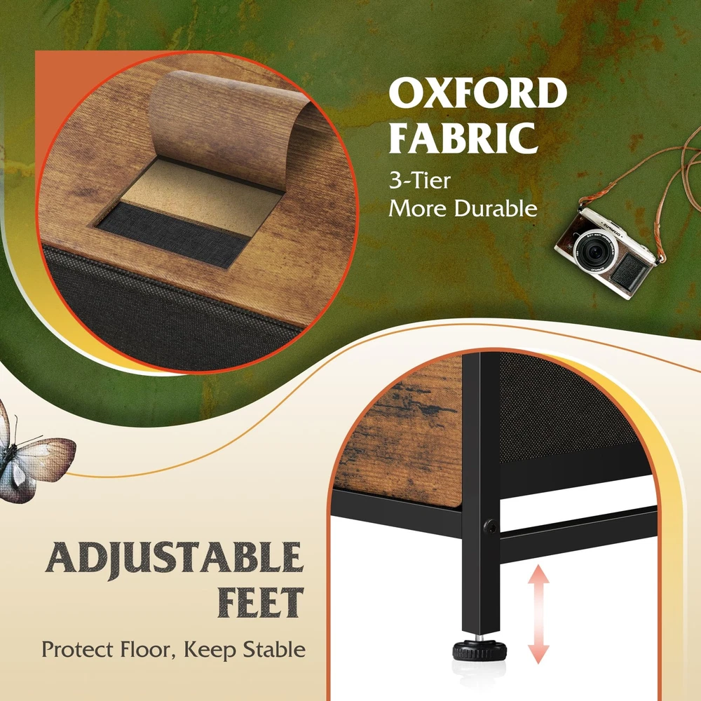 9-Drawer Dresser, Fabric Storage Tower for Bedroom, Hallway, Closets, Tall Chest Organizer Unit with Textured Print Fabric Bins, Steel Frame, Wood Top, Easy Pull Handle, Dark Grey Multifunction Tower: This fabric dresser for bedroom is ideal for wherever you want to keep clutter under control, such as bedrooms, playrooms, entryways; matches perfectly with other storage organizers. Roomy Storage Space: The 9 foldable deep drawers are so spacious that they provide endless organizational possibilities. Wooden top is great for lamps, clocks, glasses and other daily essentials, keeping them in your reach. Sturdy and Durable: Strong steel frame and water-resistant wood top offer stable support and ensure years of use; 4 adjustable plastic feet can protect your floor from scratches and are also designed for uneven ground. Safe for Your Family: Feel free to place chest of drawers anywhere; the anti-tipping accessories included can prevent incidents; the non-woven fabric is breathable and harmless, suitable for teens and adults. Overall Dimension: The fabric dresser measures 39.6" L x 11.8" W x 40.2" H. The storage tower comes with instructions and all hardware needed for installation, easy to assemble.
