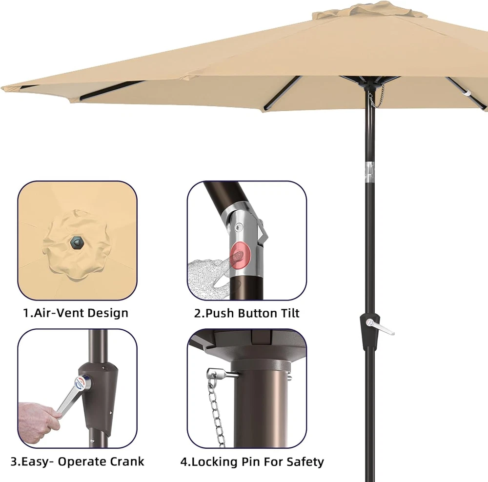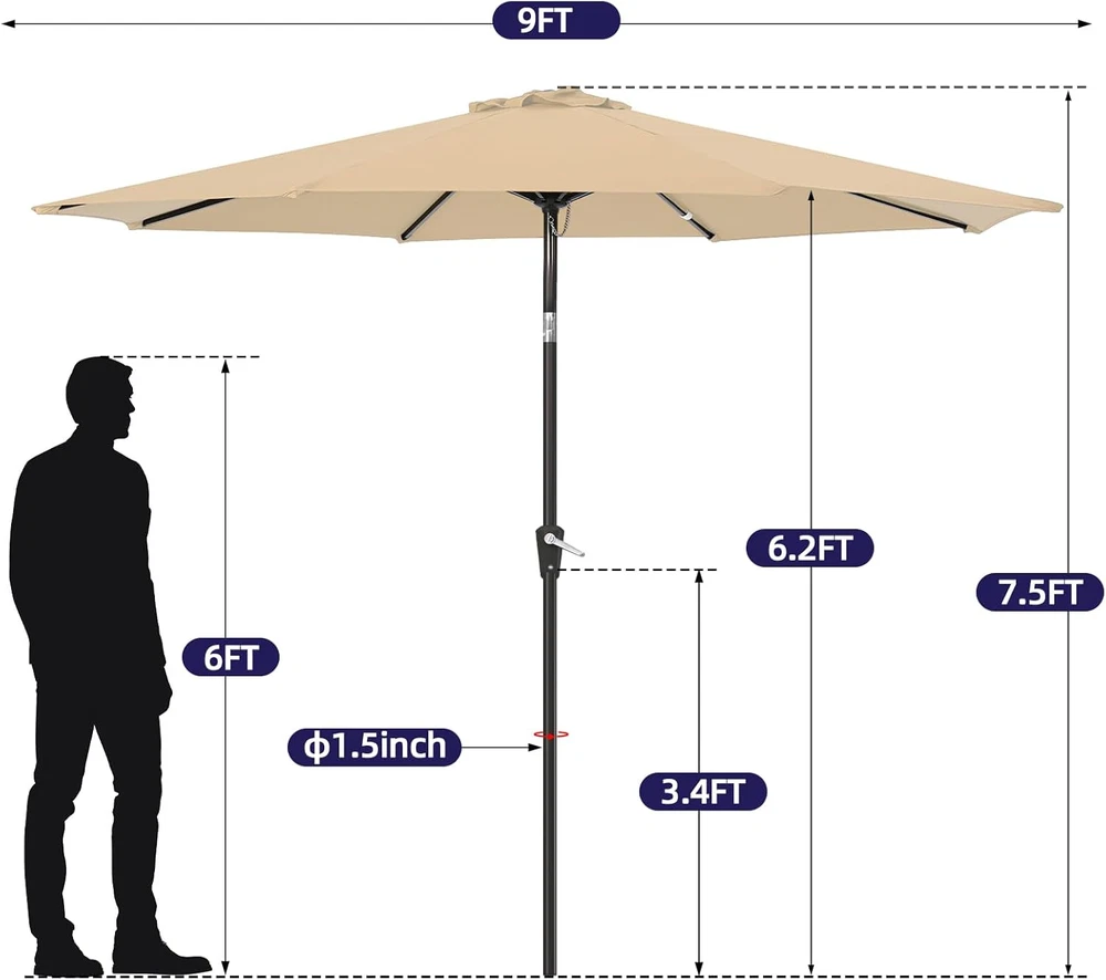 Store New Arrivals Add to Favorite View Feedback Contact 9FT Patio Umbrella Outdoor Table Umbrella with Push Button Tilt and Crank for Garden, Deck, Backyard, Pool Description Color Cream Shape Round Package Dimensions 54.72 x 5.71 x 5.71 inches Item Weight 14.74 pounds Shaft Material Aluminum Handle Material Ethylene Vinyl Acetate Frame Material Aluminum Recommended Uses For Product Patio Target Audience Adult Specific Uses For Product Sun Premium Material : The 9Ft patio umbrella is made of polyester. waterproof and UV resistant, easy to clean Wide Shade: This outdoor umbrella easily shades patio table. square or rectangle table with 4 to 6 chairs Easy to Use: Push-button tilt 45°design.Operates with crank lifting system for your easy and quick use Durable Construction: 9ft patio umbrella is made of stainless steel heavy-duty ribbed brackets Umbrella Base is Not Included: Umbrella base is not included. Outdoor patio umbrella perfect for your patio, garden, pool. Please contact us with any problem at anytime ABOUT US We offer the best prices around on high quality products. Our E-store includes media such as books, movies, music and games while offering electronics, toys, sporting apparel, clothing, tools, general home, garden items and more. SHIPPING We are always working hard to ensure your package arrives as soon as possible. Please understand that some factors like weather, high postal traffic, and the performance of shipping companies are outside of our control. We offer free shipping to the lower 48 states and ship within 2 business days of payment, usually sooner. We do not accept P.O. Boxes. Please provide a physical address. For shipping outside of the continental USA, we only use eBay's Global Shipping Program.The item is shipped to KY and then sent to the rest of the world. International customers are responsible for all duties and taxes. Continue to check out in order to calculate costs for shipping the item to your country. Messages regarding eBay's Global Shipping Program MUST be directed at eBay EXCLUSIVELY. RETURNS We offer a 30-Day Return Policy on items which you are not completely satisfied with. You have the option for a full-refund or an exchange of the item. No returns are available on items shipped outside of the USA. PAYMENT We accept PayPal. CONTACT US This page content is yet to come Please ad us to your favorite seller and visit again later Thank You CUSTOMER SATISFACTION We try our very best to make sure every customer is completely satisfied. If there's a problem, message us! We're happy to help. WE ACCEPT Copyright © 2021 AutoDS. | All Rights Reserved