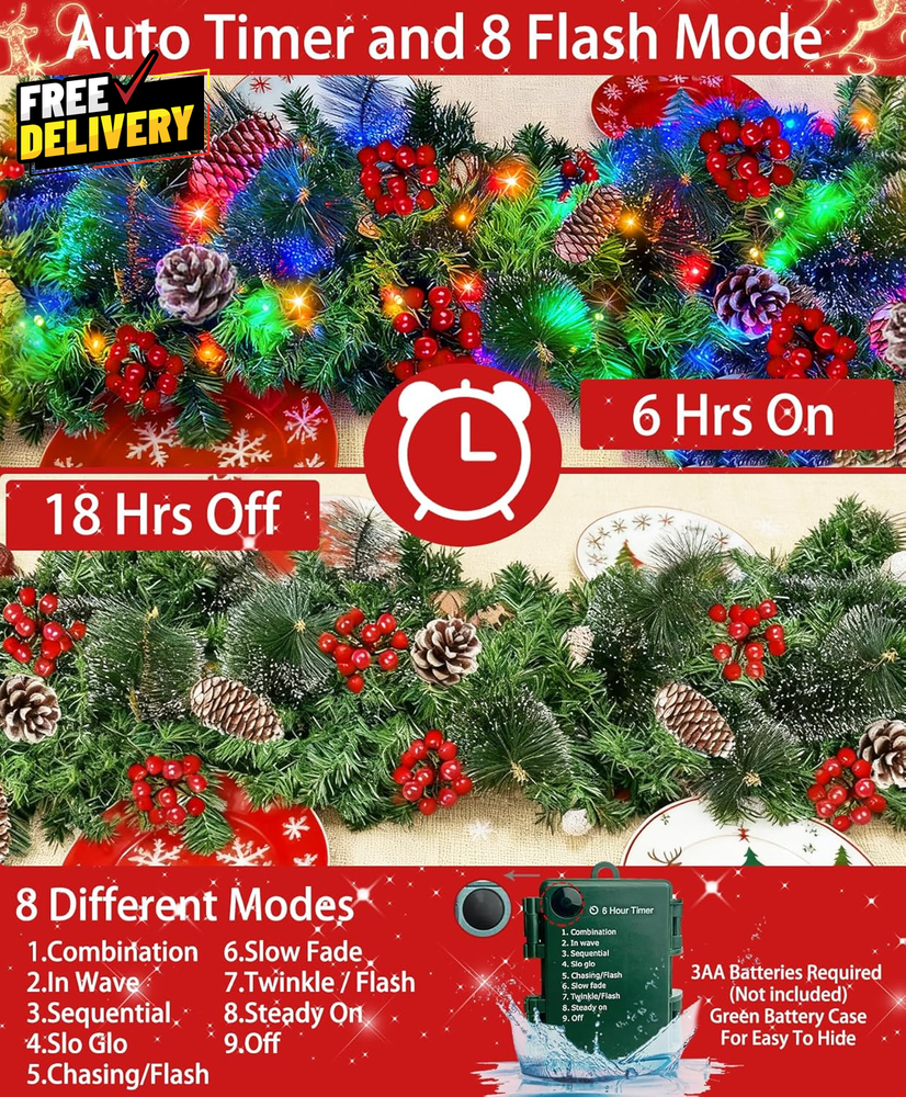 ultimatesavvyshop New Arrivals Add to Favorite View Feedback Contact 9Ft Prelit Christmas Garland 50 Colorful Lights Snowy Tips Red Berries Pinecones ? PLEASE CONTACT US FIRST BEFORE TAKING ANY ACTION ? If you face any kind of issue , please reach out to us directly . Especially before leaving Negative Feedback, opening an “Item Not Received” case, or starting a Return . ? We are always happy to assist and resolve any problem quickly and professionally! If you have any questions or require assistance, please don’t hesitate to reach out. Description Item model number SD-8 Style Modern Number of Light Sources 50 Is Artificial Garland Yes Material Classics branch, Polyvinyl Chloride (PVC), pine Shape Round Item Weight 1.83 Kilograms Color Colorful Batteries 3 AA batteries required. Item Length 108 Inches Is Lighted Yes Number of Batteries 3 AA batteries required. Size 9FT-Colorful Lights Package Dimensions 12.32 x 11.97 x 7.28 inches Full and Lush Lighted Garland: 9 Feet by 10 inch Christmas garlands, mantle garland is very lush and is decorated by 245 classic branchs, 25 pine needles snow spray, 10 pinecones, 70 red berries and 50 LED Lights(Lighting colors: red,blue,green,warm white) Timer&8 Lighting Modes: Battery box for easy adjustment Christmas garland of 8 modes: combination, in waves, sequential, slo-glo, chasing, slow fade, flash,steady on. Timer auto activates with light (6-hour on, 18-hour off cycle daily) Christmas Garland with 50 LED Colorful Lights: No plug and wire bothered, prelit garland is powered by 3 AA batteries(not included). Speciality: The only Christmas garland whose wire and battery case are green, which helps hide the wire and battery case Bendable Christmas Garlands: Battery operated christmas garland is bendable so you can shape it as needed to the way you like. Outdoor garland with lights bring a touch of nature into your home; Suitable for Indoor and outdoor Christmas decor ABOUT US Prior to making any purchase from our store, we’d like to introduce ourselves. My name is Shahzad Yaqub , and I am the proud owner of Epic Emporium Deals , located in the great state of Illinois, USA. I have been an active and trusted eBay seller since Jan 14, 2025 . At Epic Emporium Deals , we are committed to offering competitive prices and top-quality products . Our extensive collection features a wide variety of items, including media such as books, movies, music, and games , as well as electronics, toys, sporting apparel, clothing, tools , and general home and garden essentials —and much more! Your satisfaction is our priority, and we look forward to providing you with an exceptional shopping experience. SHIPPING We are always working hard to ensure your package arrives as soon as possible. Please understand that some factors like weather, high postal traffic, and the performance of shipping companies are outside of our control. We offer free shipping to the lower 48 states and ship within 2 business days of payment, usually sooner. We do not accept P.O. Boxes. Please provide a physical address. For shipping outside of the continental USA, we only use eBay's Global Shipping Program. The item is shipped to IL and then sent to the rest of the world. International customers are responsible for all duties and taxes. Continue to 'check out' to calculate costs for shipping the item to your country. Messages regarding eBay's Global Shipping Program MUST be directed at eBay EXCLUSIVELY. RETURNS We do not accept returns under normal circumstances. However, we will gladly consider a return if the item is received broken or if the wrong size is sent to you. In all other cases, returns will not be accepted. CUSTOMER SATISFACTION We try our very best to make sure every customer is completely satisfied. If there's a problem, message us! We're happy to help.