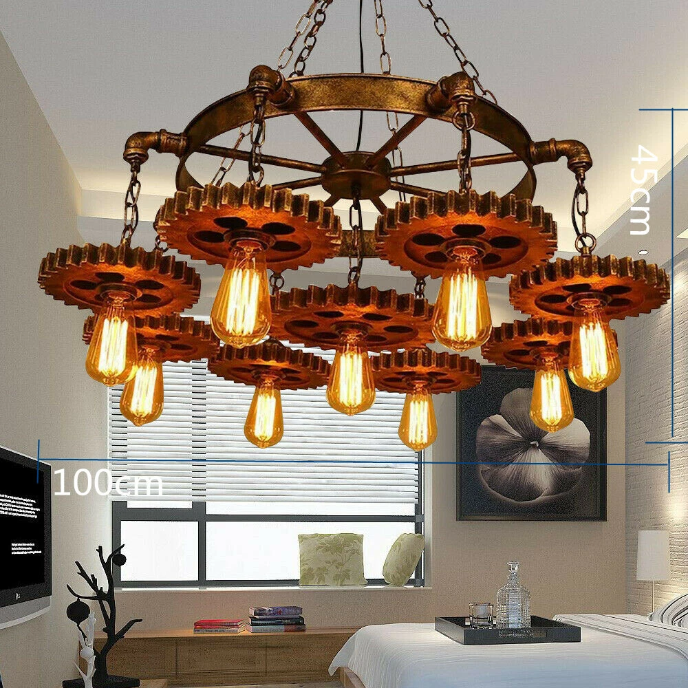 9-Head Rustic Ceiling Light Pendant Lamp Fixture Steampunk Gear Chain Chandelier This is a lamp with retro-industrial characteristics. Made of high-quality iron process, original and elegant, with a strong retro atmosphere, suitable for different places. You can decorate it in restaurants, cafes and bars. Specification: Material:iron Gear:9 Height: 90cm length: 100cm Lamp holder: E27 Input Voltage: 110-120V Irradiation area: 15-30m² Features: 1. Simple lines, rust-colored lamp, retro and versatile, bring new visual experience to family decoration. 2. Refined Iron Art: High-quality baking paint metal, high strength, corrosion resistance, not easy to rust. 3. Adjustable chain: effectively reduce the pressure of droplight, safer. Package Included: 1 x Large Iron Light(Bulb is Not Included) Note: Please allow 1-3CM differs due to manual measurement. Due to the different display and different light, the picture may not reflect the actual color of the item. Thanks for your understanding. Payment Delivery details Terms of sales About us Contact us Payment We accept ebay payment 。 Fees such as import duties, taxes are not included in the item price or shipping costs. These charges are the buyer's responsibility. Delivery details Shipping: 2-9 working days to: USA Terms of sales We maintain high standards of excellence and strive for hundred percent customer satisfaction. Feedback is very important to us. We hope that you contact us immediately before you give neutral or negative feedback, so that we can address your concerns. It is impossible to address issues if we do not know about them! About us Your satis faction is our ultimate goal. We work hard to earn your trust and future business. Our certified technicians have tested each item before shipping. The unit comes with 1 year limited warranty on all manufacturing defects. a) If you receive a defective item, you may return it or ask for a discount. Please contact us within 14 days after you receive the package. b) What you returned must be intact and in its original packaging as re? u. Customer is responsible for shipping costs of the returned item. c) We will cover the cost of shipping back t with the shipping rate indicated in the registration page. We will send you a new unit or refund the full payment you paid. Thank you. Contact us Business Hour Business Hour: Monday To Friday: 8:30 AM to 5:00 PM (Beijing China time) Due to time zones, our reply to your questions may not be immediately. But within above working time, we will reply your email within 24 hours. If it's non-workdays, please kindly be patient and wait till Monday. Please contact us with ebay message. Please feel free to contact us if you have any questions. Monday To Friday: 8:30 AM to 5:00 PM (Beijing China time) Due to time zones, our reply to your questions may not be immediately. But within above working time, we will reply your email within 24 hours. If it's non-workdays, please kindly be patient and wait till Monday. Please contact us with ebay message. Please feel free to contact us if you have any questions. Features: US Stock Features 3 FAST SHIPPING Type Steampunk Light MPN Does Not Apply Brand Unbranded Material Iron Gear 9 Height 90cm length 100cm Lamp holder E27 Input Voltage 110-120V Irradiation area 15-30m² Note Bulb Not include Sensor Type Light Style Rustic Steampunk Ceiling Light Room Bar, Dining Room, Bedroom, Den, Attic Lighting Technology LED Number of Settings 1 Finish Iron Color Brown Cord Color Black Light Color Warm White Shade Shape Round Power Source Corded Installation Area Indoor Manufacturer Large Iron Light Energy Star A+++ Department Adult LED String/Strip Type / Control Style SWITCH EC Range A+++ - G Occasion all Features easy to use EAN Does not apply UPC Does not apply On Jan 7, 2025 at 02:06:31 PST, seller added the following information: