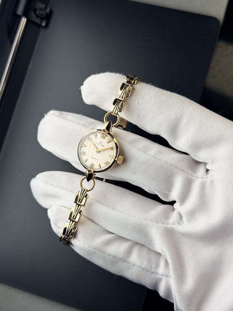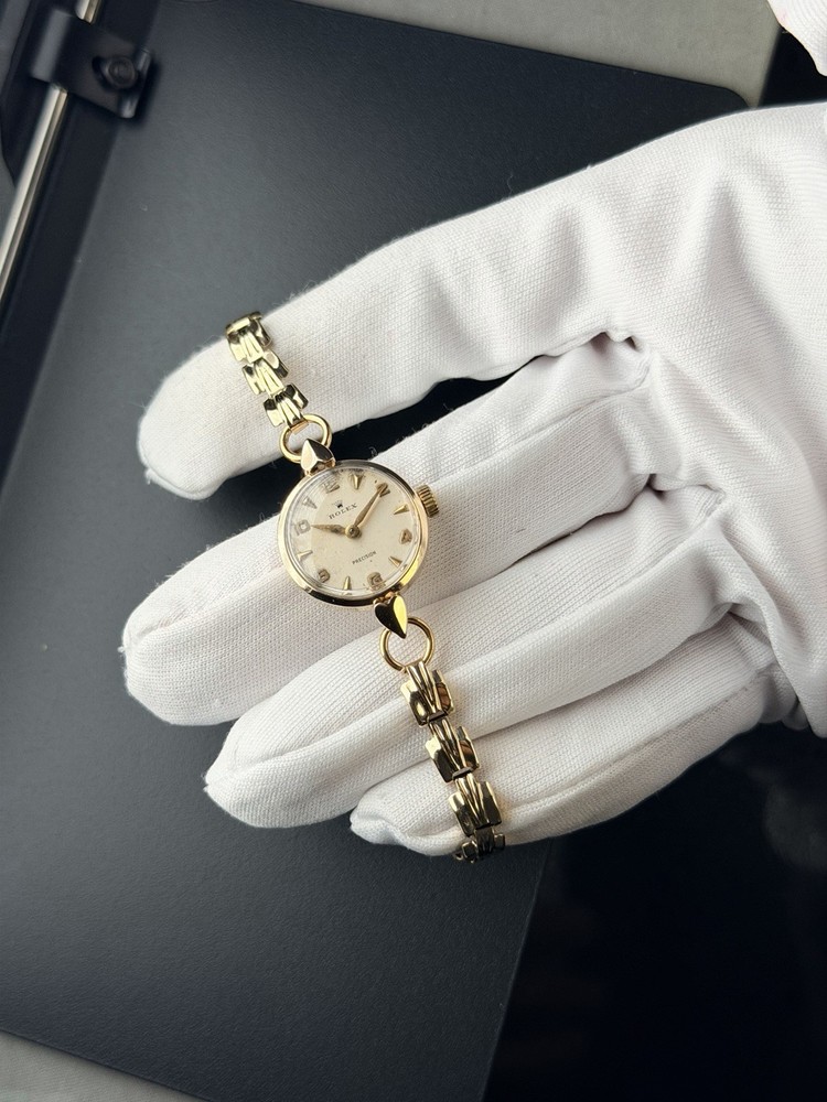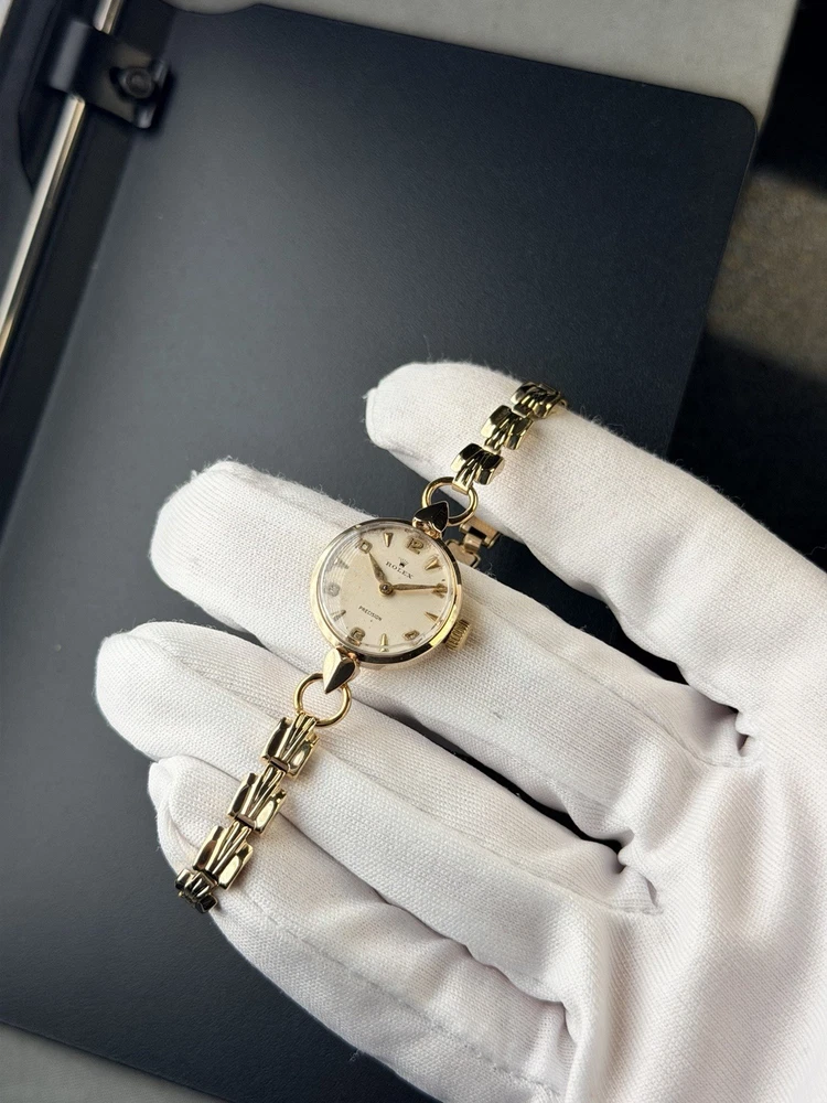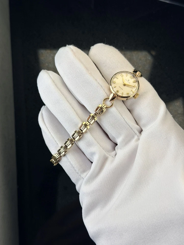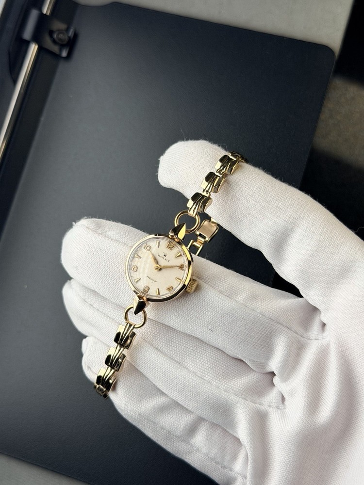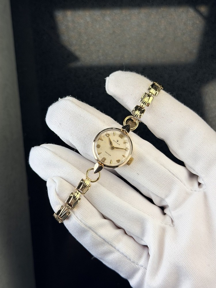 Vintage Rolex Ladies Watch in 9K solid gold case, good working condition, keeping good time. This watch features silver dial in gilt hands and batons. Case size is 20mm with corresponding DS&S gold 9-375 hallmarks, bracelet is a gold plated one with buckle. The watch had been deep cleaned, ready to wear as gifts. To be shipped via Royal Mail Special Delivery Next Day 1pm Tracked & Signed. Authenticity Guarantee: Yes Dial: Good/fair condition, showing signs of age. Movement: Rolex signed movement in going order, no warranty for future time keeping or going order. Case: Signed DS&S 9-375 with corresponding gold hallmarks. In good/fair condition, general scratches. Free of personal engraving. Strap/Bracelet: Gold plated. Terms & Conditions: Please be aware that all vintage watches have their own unique imperfections, whether aesthetic or functional. We kindly encourage you to thoroughly review the photos and ensure it meets your satisfaction before placing an order. Should you have any questions, please don’t hesitate to reach out – we’re always happy to assist. For watches priced at £1,500 and above, we use Royal Mail Special Delivery Next Day 1pm Guarantee Signed & Tracked to send to eBay's Authenticity Centre for verification and certification before they are dispatched to customers.