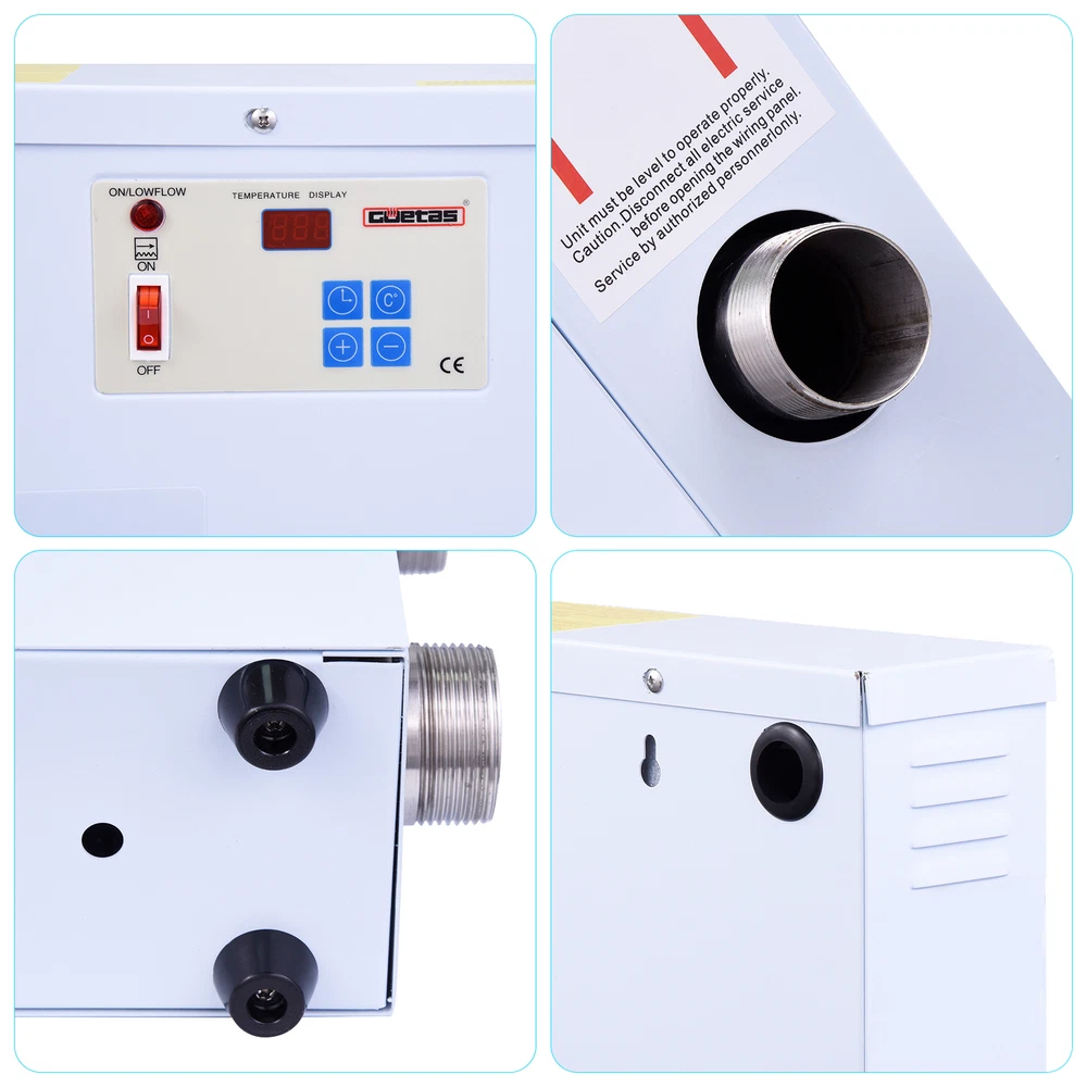 Store category Sign Up Now ! You may also like Product Description Bullet Points: Advanced Control Technology: Revolutionize your pool heating experience with our thermostat. Temperature is visually displayed for better precision and control, enabling easy adjustments through the intuitive touch screen. Internal Circulation System: The pool heater thermostat ensures efficient heating by automatically turning off when water temperature exceeds preset stages, and turning on when it drops. Reduce Energy Costs: Our pool heater thermostat's 304 stainless steel heating tube expedites heating time, allowing for quick and efficient heat transfer that reduces energy costs. Expert Installation: This high power pool heater thermostat ensures efficient heating. Ensure safe and correct wiring with a certified electrician upon installation. Swimming Enhancement: With our pool heater thermostat, entering the swimming pool won't be too cold, making your swim more enjoyable and comfortable, which will enhance your mood. With excellent thermal conductivity, it ensures that when the water temperature reaches or exceeds preset levels, entering the swimming pool won't be too cold. Features: 1, fuse protection, emergency and extreme cases of rapid fusing, quickly disconnect the power supply. 2, dry burning protection, two sets of temperature sensors always monitor the temperature. 3, water flow induction system, water shortage automatic shutdown: the pump does not start the machine does not work, can effectively prevent water shortage and non-standard operation to damage the machine. 4, the temperature limit switch, with the temperature reaches the automatic shutdown, the temperature can be automatically reduced after the work, can prevent the machine temperature caused by too high damage. Product introduction: Automatic constant temperature, can be adjusted according to the required water temperature heating constant temperature, the maximum set temperature of about 55°, safe and reliable, the machine is equipped with a water flow induction device, when the pump stops or the pipeline water shortage, the machine automatically disconnect the power supply. Note: The thermostat needs to be used with the corresponding size of the water pump, if the water pump and the thermostat do not match, the flow rate is too small, the heat pipe dry burning will cause damage. (9kw recommended with water pump flow 8 cubic meters/hour recommended with a lift of 14-21 meters of circulating water pump. Specification: Product name: Pool thermostat Power: 9KW Voltage: two-phase voltage 220v Current: 40.9A Inlet and outlet diameter: 1.5 inches Product weight: 9kg Product size: 490*100*380mm Features: Suitable for large and medium hot springs, swimming pools, Jacuzzi heating constant temperature system list: pool heater thermostat * 1pcs Instruction manual * 1pcs Accessory package * 1pcs Payment Delivery details Terms of sales About us Feedback & DSRs Payment Before you palce an order, please kindly make sure that you have a paypal account. We accept PAYPAL payment only. Payment should be completed within 2 days after auction closed, or unpaid dispute will be filed for an closing auction. An unpaid case will be filled after 4 days. Delivery details We ship to your eBay address. Each package will be shipped to US by UPS Regular Parcel with tracking number. Please check your shipping address carefully before checkout, it can't be changed if order completed. All items will be shipped within 1-2 business day upon receipt of payment.Orders placed on weekend will be shipped within 3 days. If you do not receive your item in 7-10 business days.please contact us immediately for further assistance. We will be responsible for any damages or losses incurred in the shipping process. About us We maintain high standards of excellence FIVE STAR and strive for 100% customer satisfaction! Positive Feedback is very important to us. We hope that you contact us immediately Before you give us neutral or negative feedback, so that we can satisfactorily address your concerns. We promise to offer the lowest price and high quality produce. Our working time: From Monday to Friday(9:30 am to 18:00pm), we don't working on holidays ,hope you can understand and know that , thank you. Please always talk to us via ebay Message. We appreciate your business and look forward to growing our e-Bay sales with satisfied customers. Feedback Contact us If you have any questions, please feel free to contact with us by ebay Message during our business hours ( 9:30a.m. to 5:30 p.m.), or email us through eBay, we will try our best to help you to resolve it. For any presale or after-sale questions,please do feel free to email us! Due to the time difference, each email will be replied within 1 working day,and weekend will be delayed a bit. Feedback