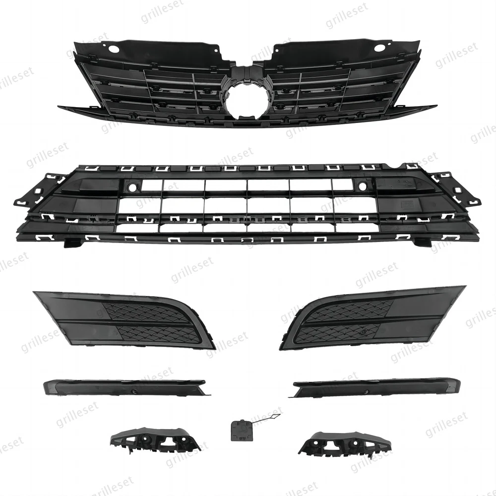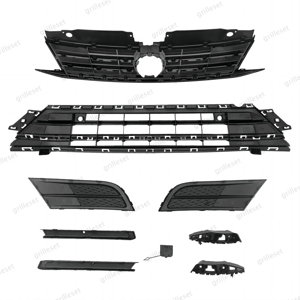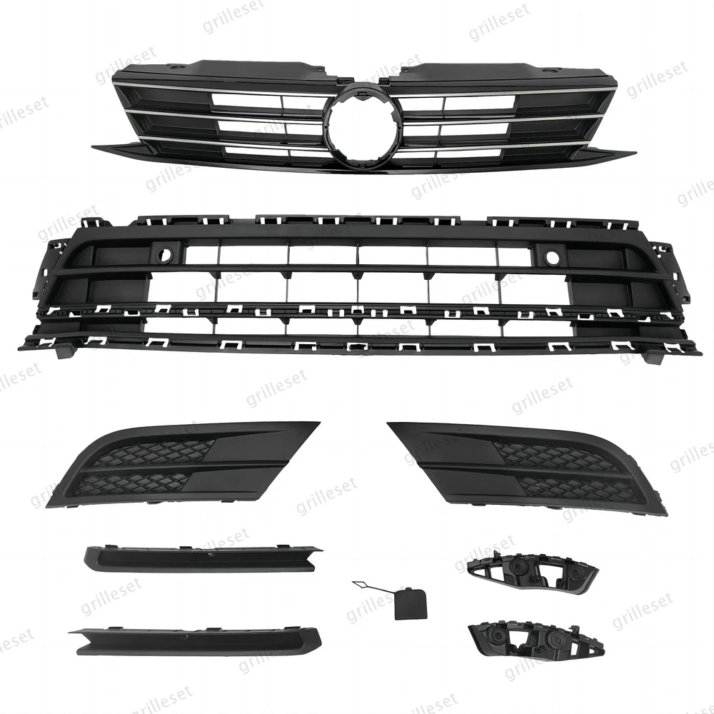 Fit for : 1 Set (9 PCS) Includes:(See more pictures for details) 1 Pc front upper black grille with chrome trim 1 Pc front lower black grille mesh with park sensors 2 Pcs fog light covers 2 Pcs front lower bumper trim 2 Pcs front bumper brackets 1 Pc tow hook hole cover Item OE number : 5C6-853-651-AN-ZLL;5C6-853-671-P-9B9;5C6-853-665-H-9B9;5C6-853-666-G-9B9;5C6-807-233-A-9B9;5C6-807-234-A-9B9;5C6-807-183-A;5C6-807-184-A;5C6-807-241-F-GRU Installation : Perfect fit direct replacement, no modifications required. Installation manual not provided; we recommend professional installation. Item's-Features : Superior quality kit 100% brand new Made from high-quality materials Excellent replacement part, no modifications needed Other parts fit for