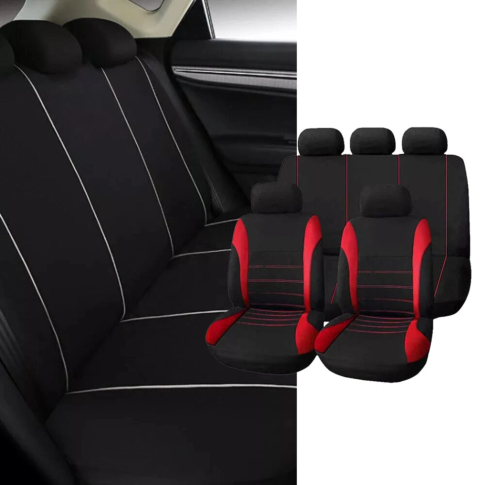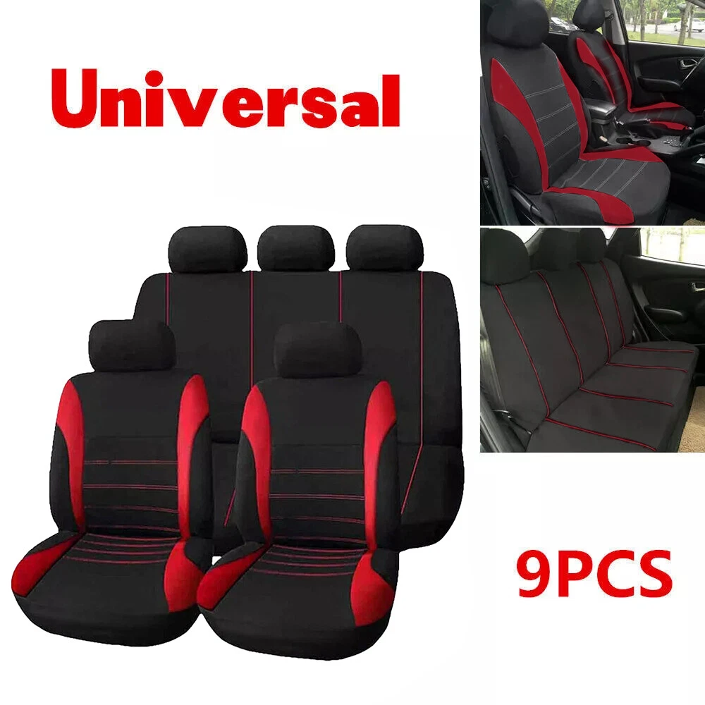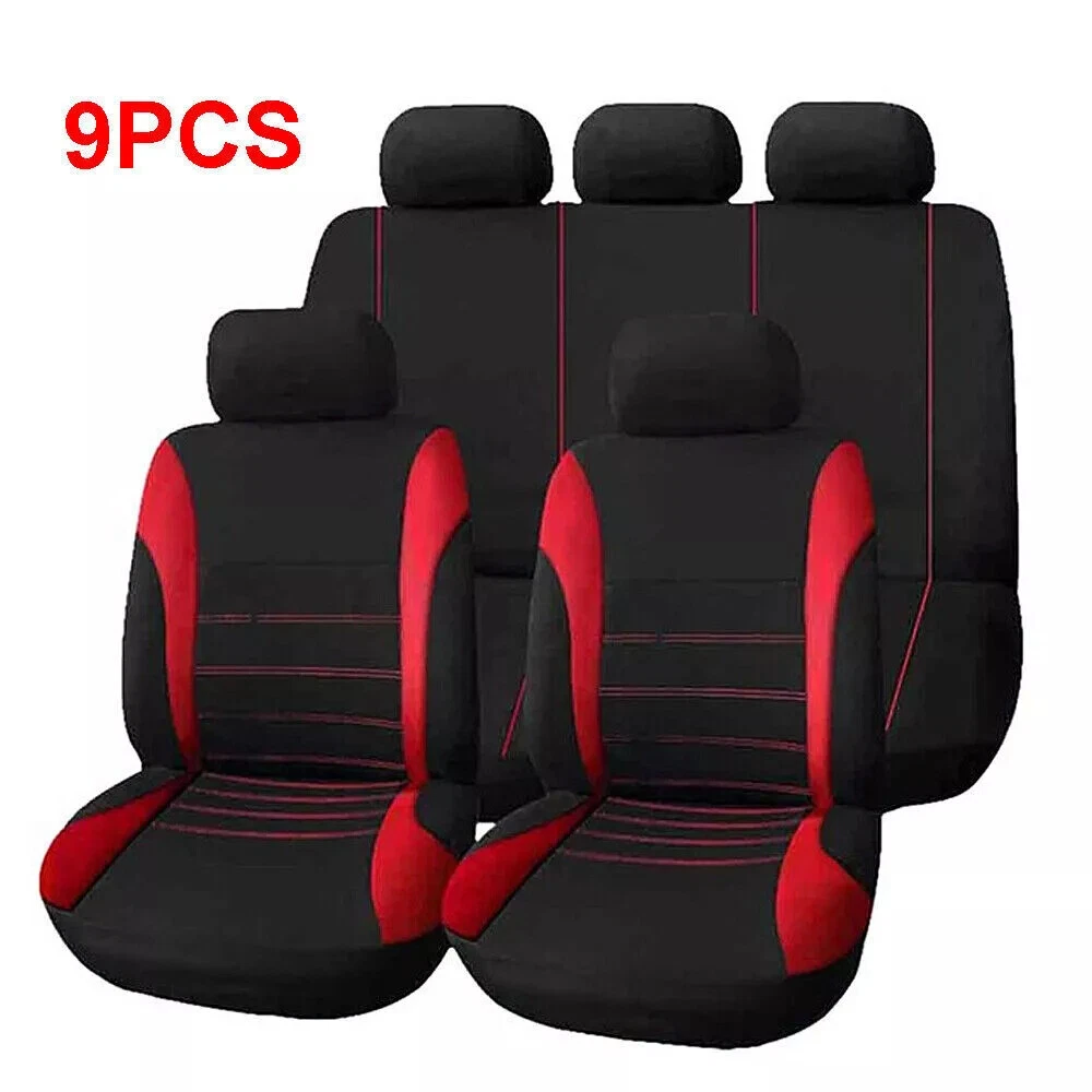Styling Full Seat Covers Covers Car Interior Accessories Car Seat Car 9PCS/Set Feature: 100% brand new and high quality This car seat cover helps protect your seat from mud and dirt Easy to install and clean High quality, washable, and durable to use Specifications: Condition: New Material: Polyester Color: Red Back Seat Cover:136 x 78cm Back Seat Bench Back Bottom Cover: 136 x 65cm Head Rest Covers: 29 x 32cm Quantity: 1 set = 2 front seat + 1 rear back + 1 rear seat + 5 headrest NOTE: Please allow 1-2mm differs due to manual measurement, thanks. Due to the difference between different monitors, the picture may not reflect the actual color of the item. Please understand, Thank you! Package included: 1 x Set of Car Seat Cover