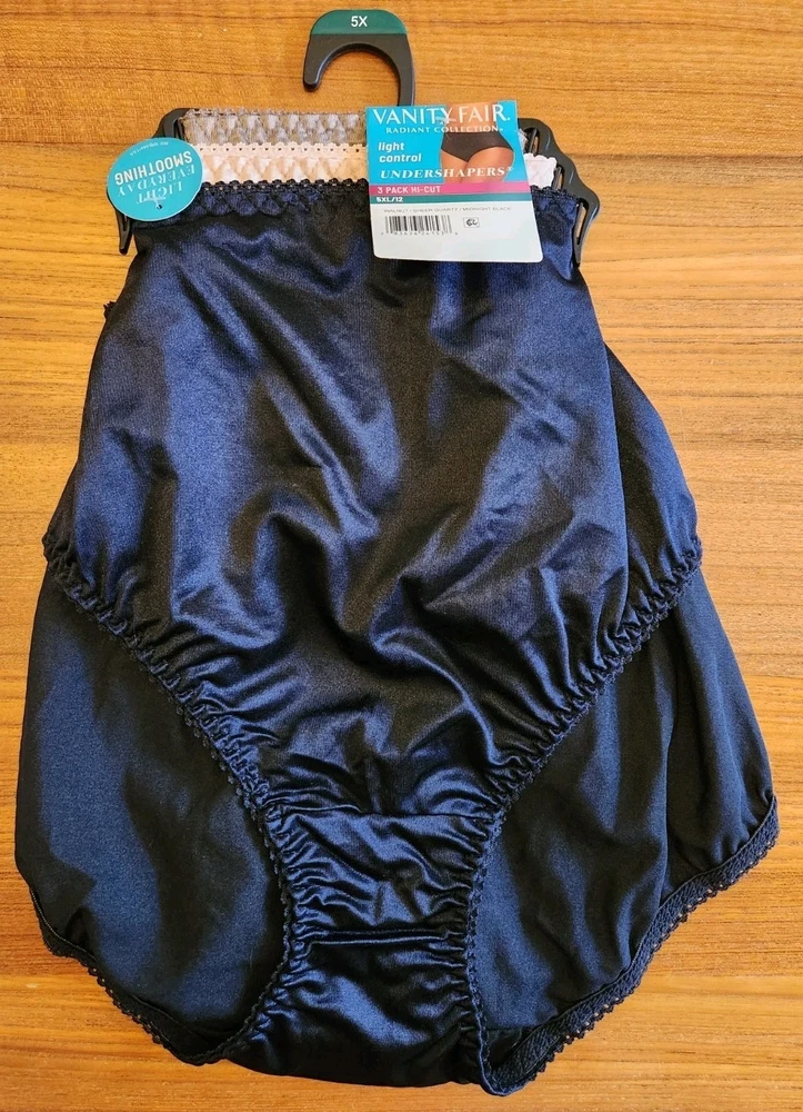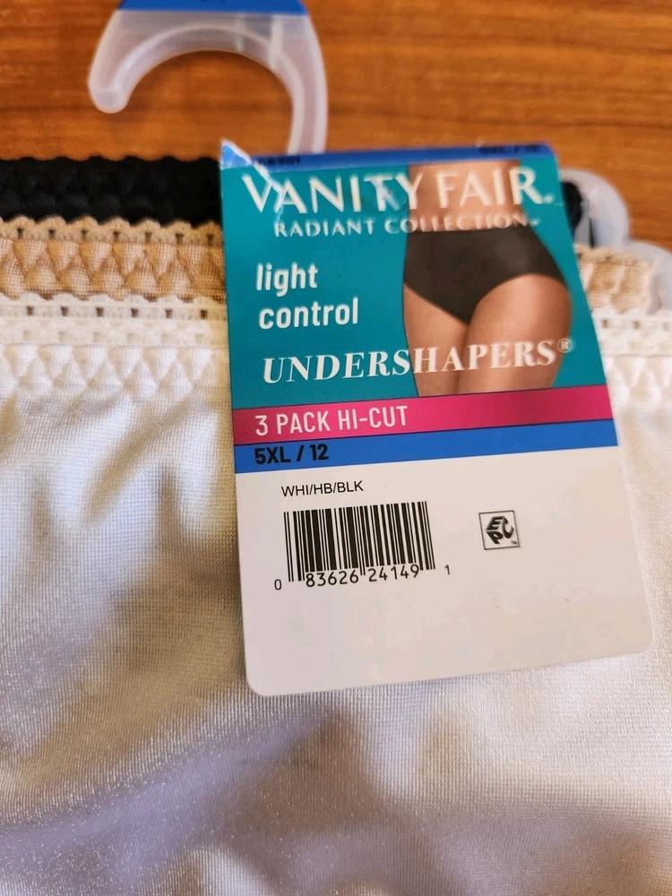 Brand new, tags attached, Vanity Fair 5XL (12) Radiant Collection 9 PAIRS Hi-Cut Brief Light Control Undershapers Panties. Colors are Black, White, Beige, Quartz. Nice assortment of colors at a great price. You receive (3) 3-Packs. See photos for more product details. Absolutely in brand new, perfect, tag attached condition. This item comes from a pet free and smoke free environment. I will ship your item via USPS within 1 business day of receiving your cleared payment. International shipping available. Don't forget to visit my eBay Store and add kidsbargainspot to your list of favorite sellers! Sales tax for your applicable state may apply.