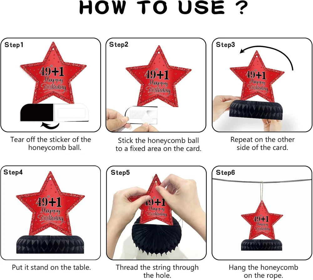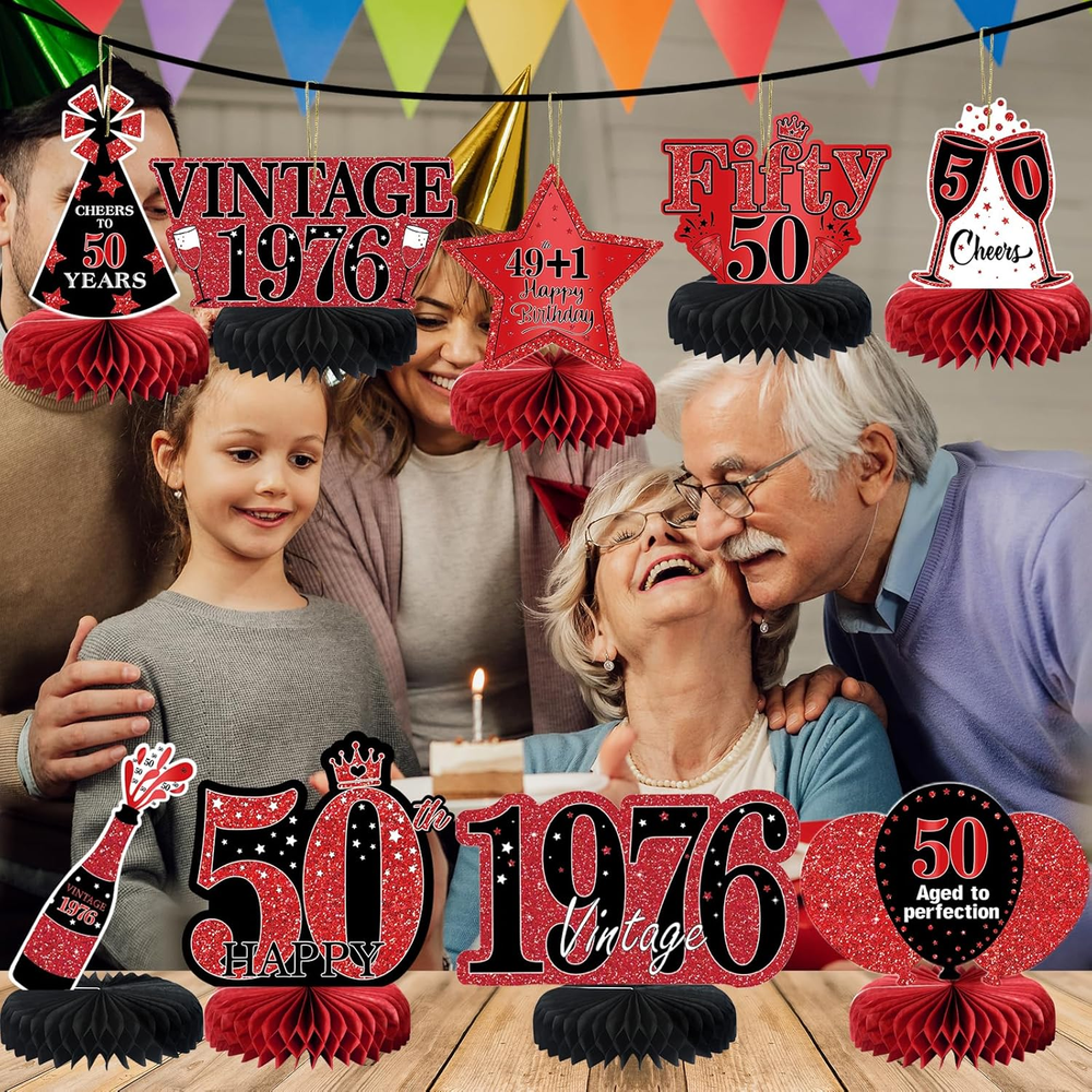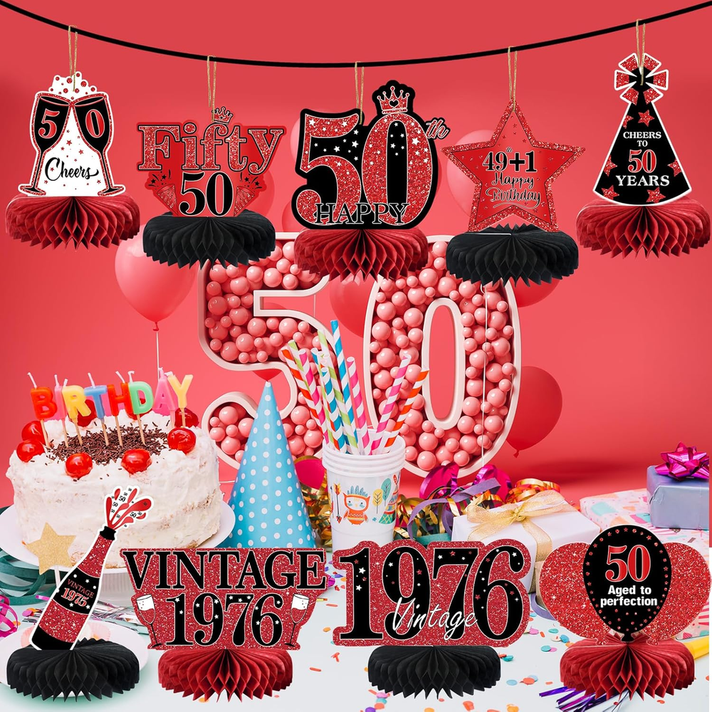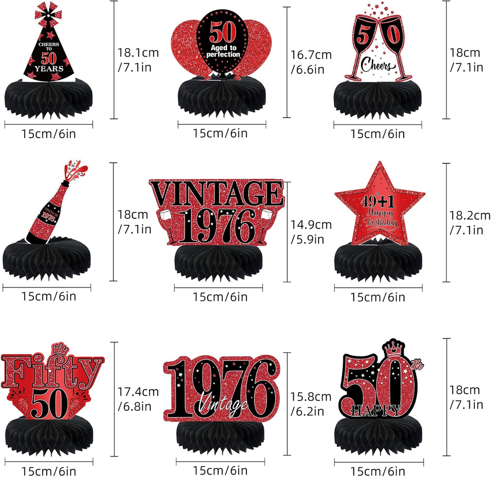 Store New Arrivals Add to Favorite View Feedback Contact Fast deliveries to the customer's home Quality customer service John Make the customers happy! 9Pcs 50Th Birthday Decorations Red and Black 50Th Birthday Party Decorations for Women,Happy 50 Years Vintage 1976 Aged Honeycomb Centerpieces Table Sign Decor Supplies Description [You will get] - 9 pcs red and black 50th birthday decorations honeycomb table centerpieces for women, it contains 9 patterned cardboards and 9 paper honeycombs,and matching lanyards. These chic 50th birthday table decorations are enough to decorate your themed party. [50 years old theme] - The 50th birthday table centerpiece decorations adopts double-sided printing and retro red black design, and the surface is printed with many related elements, such as Surprise 1976, Vintage 1976, Hello Fifty and other text and balloons, stars and other patterns. [Premium Material] - Made of high quality card, clear printing, light and durable, not easy to fade.50th birthday centerpieces for tables are sturdy, non-toxic and no odd smell, which are a good choice for your 50th birthday party decorations. [Easy to Assemble] - Very easy to assemble. Step1, tear off the sticker of the honeycomb ball. Step 2, stick the honeycomb ball to a fixed area on the card. Step 3, repeat on the other side of the card. Step 4,finally put it stand on the table.Step 5,Thread the string through the hole.Step 6,Hang the honeycomb on the rope. [Perfect Birthday Decorations] - Perfect as a 50th birthday decorations for men and women.You can place it on a table for decoration or hang it with the matching string.It is a great choice for your birthday party.Create a cheerful and surprising atmosphere for you. Product description 9Pcs Red Black 50th Birthday Decorations Table Honeycomb Centerpiece To throw a birthday party, we have the right decorations for your party needs. It is a great choice for your 50th birthday party.Create a cheerful and surprising atmosphere for you! Item Shape Hexagonal Unit Count 1.0 Count Color Red Black 50th Pattern Retro Red Black with 1974 Surprise, Vintage, Hello Fifty, Balloons, and Stars Material Cardboard, Paper Theme 50th Birthday, Vintage 1974 Occasion Birthday Included Components Birthday Honeycomb Centerpieces Table ABOUT US We offer the best prices around on high quality products. Our E-store includes media such as books, movies, music and games while offering electronics, toys, sporting apparel, clothing, tools, general home, garden items and more. SHIPPING We are always working hard to ensure your package arrives as soon as possible. Please understand that some factors like weather, high postal traffic, and the performance of shipping companies are outside of our control. We offer free shipping to the lower 48 states and ship within 2 business days of payment, usually sooner. We do not accept P.O. Boxes. Please provide a physical address. For shipping outside of the continental USA, we only use eBay's Global Shipping Program. The item is shipped to KY and then sent to the rest of the world. International customers are responsible for all duties and taxes. Continue to 'check out' to calculate costs for shipping the item to your country. Messages regarding eBay's Global Shipping Program MUST be directed at eBay EXCLUSIVELY. RETURNS We offer a 30-Day Return Policy on items in which you are not completely satisfied with. You have the option of a full-refund or an exchange of the item. No returns are available on items shipped outside of the USA PAYMENT We accept PayPal. CONTACT US This page content is yet to come Please ad us to your favorite seller and visit again later Thank You CUSTOMER SATISFACTION We try our very best to make sure every customer is completely satisfied. If there's a problem, message us! We're happy to help. WE ACCEPT