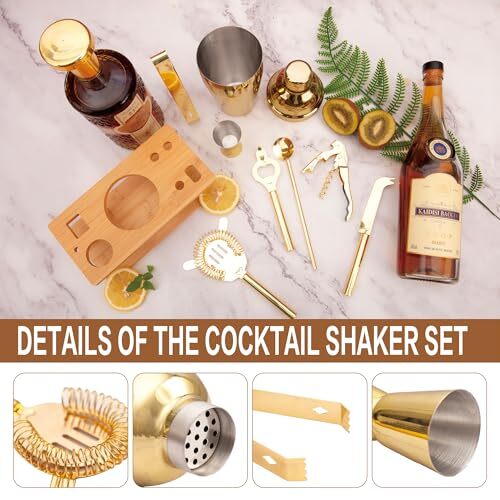 Return Policy Fast Delivery Trusted seller 9Pcs-Cocktail Shaker Set Bartending Kit Cocktail Bar Set Cocktail Mix Drink Making Kit Professional Bar and Home Drink Bar Tools for Bartender (Gold, 9Pcs) Product Description 【Bartender cocktail kit】Mixology bartender kit includes a 18.6oz stainless steel shaker,Strainer,a double size 0.5/1 oz measuring cup,bottle opener,ice tongs,chesse knife,spoon-straw,double lever corkscrew and a bamboo stand. 【Super high quality】All cocktail shaker sets are made of food-grade 304 stainless steel, The splicing part of the shaker fits tightly, and it will not leak, break, bend or warp when shaken, and it is very durable. You can freely use it to make any cocktail you like. 【Enjoy a happy bartending time】 Whether you are a professional bartender in a bar or a beginner who wants to try bartending at home, this cocktail shaker set can help you easily mix whiskey, tequila, duo Enjoy your own wine tasting time with drinks made from ginseng, rum, brandy, and other alcoholic beverages. 【Novel present ideas】If you have Someone with a passion for bartending around you, then this will be a perfect present for them! You can use it as an exquisite present for any occasion such as birthday, Christmas, Valentine's Day, Father's Day, Mother's Day, wedding, anniversary, housewarming! 【Easy to clean by hand】After using the shaker set, just rinse it with warm water and soap, and this cocktail shaker will look like a new one. By the way, if you have any questions or are not satisfied with the quality of this product, we will promptly process a replacement or refund for you, so you can buy with confidence. Shipping Returns Payment Shipping Shipping is FREE to all addresses other than APO/PO boxes in the lower 48 states. All our stock ships from US-based warehouses. Shipped via USPS or UPS (depending on location and package weight) Unless stated otherwise, all orders will ship within 24-72 hours of your payment being processed. Check our feedback to see the great reviews of FAST shipping we offer. Returns Seller does not accept returns Payment We currently accept payment via eBay managed payments only. Once payment is cleared, we will dispatch your shipment within 1-3 business days. Please refer to the "Shipping" tab for more information regarding shipping speed to your destination.