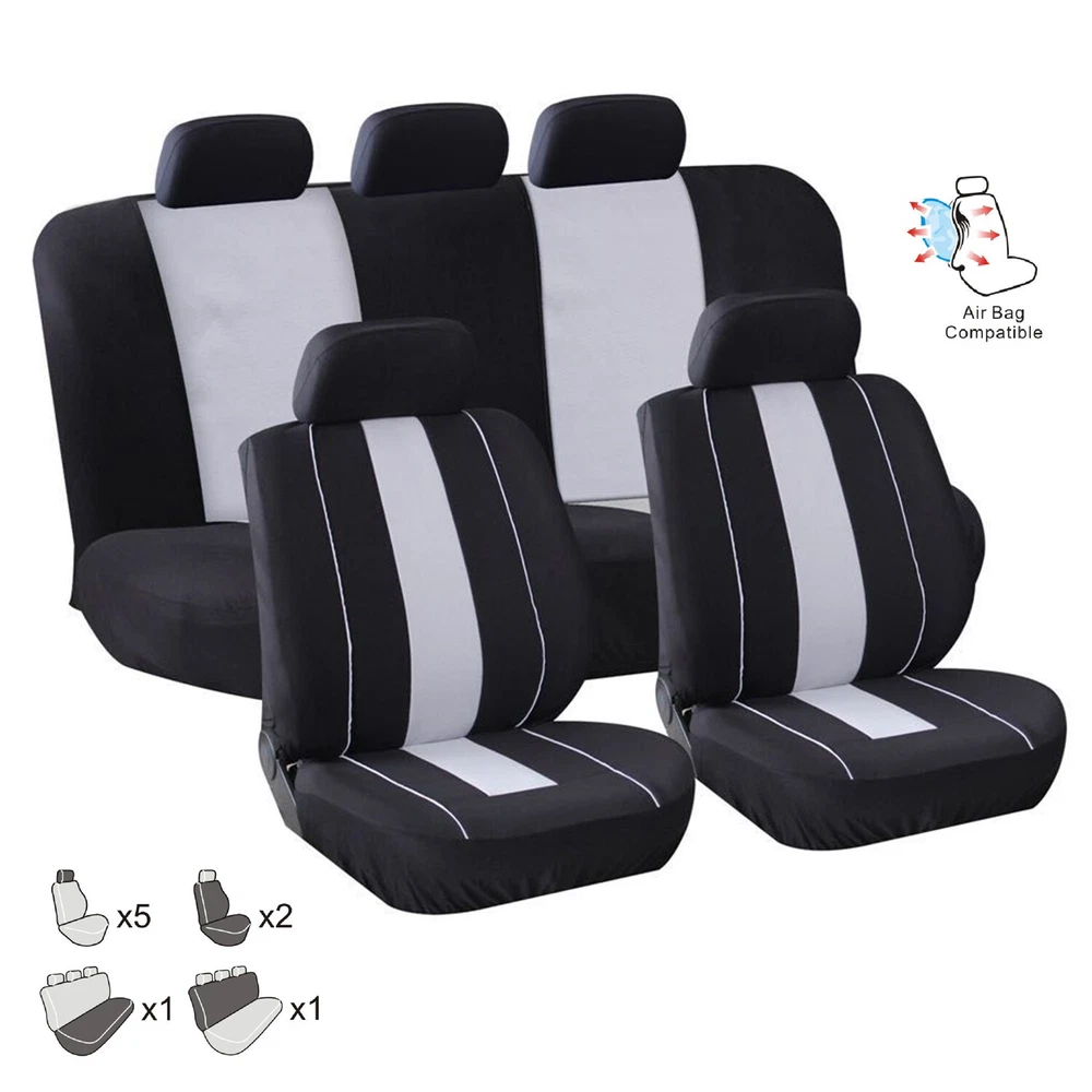 Product Description 9-piece Car Seat Cover Interior Accessories Fashion Mesh/Sponge Breathable 100% Brand New Full Seat Coverage set. Between which 2 of the front leg, 2 rear sofa, 5 head restraint covers Universal application suitable for almost all places (cars, trucks, vans, and SUVs) The rear sofa covers come separately, which is designed to accommodate child/child car seat, allow you to fully use the belt or built-in anchor behind the lower back. Materials are made of Resistant and Comfortable Breathtaking Panno-easy to Clean washable in washing machine, Dry Air Buy now and protect the original, or make the oldest places like the new. Features: Color: Black/Gray Material: single sided mesh Accessories: 28 hooks Package size: 32 * 22 * 9cm Package weight: 0.77kg Packaging includes: 4 x Poggiatesta Coperture (Format: 30x27 cm) 2 x Previous seat cover (dimensions: 118x56 cm) 2x Posterior Seat Coverage (low dimensions: 132x80 cm/rear of seat cover: 132x59 cm) Packaging details Unit type: 9 pcs/set Payment Returns Contact Us Shipping We accept payment by PayPal only ! Payment should be completed within 5 days after buyer places the order,or else an unpaid case will be opened in order to cancel the transaction. If you can not pay in time, please contact us. e-check from PayPal will only be processed once the payment clears. All of the items will be shipped to buyer's EBAY address,please confirm your address on Ebay before you buy.Your order will be usually shipped out the same or next business days once the payment is made and cleared. 30-day Warranty with Exchange for defective, malfunctioned, incorrect or parts-missing items. Please notify us and return the item with all parts and accessories packed and marked "FOR EXCHANGE" within 14 days of receipt. If defective, malfunctioned or parts-missing items are no longer available, a refund may be issued. All returning postage costs will be the responsibility of the buyers under all circumstances. If you encounter any problems about anything, please feel free to contact us and we will do our best to assist you solve the issue. If you are not satisfied in anyway, please feel free to let us know and give us a second chance to correct it before you decide to leave any neutral or negative feedback. Please contact us through eBay link if you have any questions. We will reply you within 24- 48 hours. Please check you spam mail if no response for 48 hours. All items will be checked before packing. All items are new and of high quality. Item will be shipped within 1 business days upon receipt of payment, excluding weekends and public holidays. If to USA,we will ship your order by USPS,it will take about 8-12 working days to you,and you can track it on line. If to other country,we will ship your order by China Post or Singapore Registered Air Mail,it will take about 14-21 working days to you,you aslo can track it on line. Delivery time is about 14-28 business days and it may take up to 8 weeks . Payment We accept payment by PayPal only ! Payment should be completed within 7 days after buyer places the order,or else an unpaid case will be opened in order to cancel the transaction. If you can not pay in time, please contact us. eCHECK from PayPal will only be processed once the payment clears. All of the items will be shipped to buyer's EBAY address,please confirm your address on Ebay before you buy.Your order will be usually shipped out the same or next business days once the payment is made and cleared. Returns 30-day Warranty with Exchange for defective, malfunctioned, incorrect or parts-missing items. Please notify us and return the item with all parts and accessories packed and marked "FOR EXCHANGE" within 14 days of receipt. If defective, malfunctioned or parts-missing items are no longer available, a refund may be issued. All returning postage costs will be the responsibility of the buyers under all circumstances. Contact Us If you encounter any problems about anything, please feel free to contact us and we will do our best to assist you solve the issue. If you are not satisfied in anyway, please feel free to let us know and give us a second chance to correct it before you decide to leave any neutral or negative feedback. Please contact us through eBay link if you have any questions. We will reply you within 24- 48 hours. Please check you spam mail if no response for 48 hours. Shipping All items will be checked before packing. All items are new and of high quality. Item will be shipped within 1 business days upon receipt of payment, excluding weekends and public holidays. If to USA,we will ship your order by USPS,it will take about 7-10 working days to you,and you can track it on line. If to other country,we will ship your order by China Post or Singapore Registered Air Mail,it will take about 14-21 working days to you,you aslo can track it on line. Delivery time is about 14-28 business days and it may take up to 8 weeks . Welcome to our Store ~