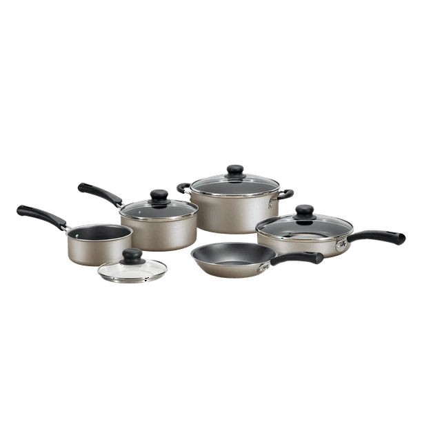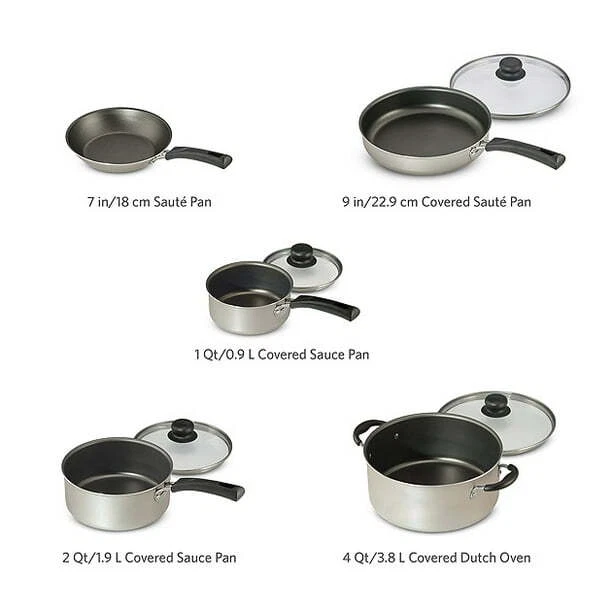 Product details 9-Piece Simple Cooking Nonstick Cookware Set provides all the cooking essentials. The interior nonstick coating ensures easy cooking and simple cleanup, while heat- and shatter-resistant tempered glass lids allow quick monitoring of cooking progress. The aluminum cookware set is lightweight yet durable and contains an assortment of pieces to create many different meals for a range of attendees. The set is easily be washed by hand between uses, and makes a decent starter set or addition for people who enjoy pot size options when preparing meals. It's available in two different colors, so you can get the set which will work best for your current kitchen design. The 9-Piece Simple Cooking Nonstick Cookware Set makes meal prep uncomplicated and cleanup easy. Complete cookware set with nonstick interior for easy cooking and cleaning Riveted, stay-cool handles Heat- and shatter-resistant tempered glass lids allow easy monitoring of cooking progress Compatible with gas, electric and ceramic glass cooktops Set includes: 7" saute pan, 9" deep saute pan with lid, 1 qt sauce pan with lid, 2 qt sauce pan with lid, 4 qt Dutch oven with lid On Jul 9, 2025 at 20:35:15 PDT, seller added the following information: On Jul 11, 2025 at 19:48:01 PDT, seller added the following information: