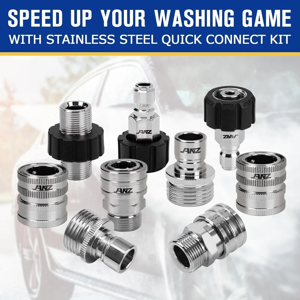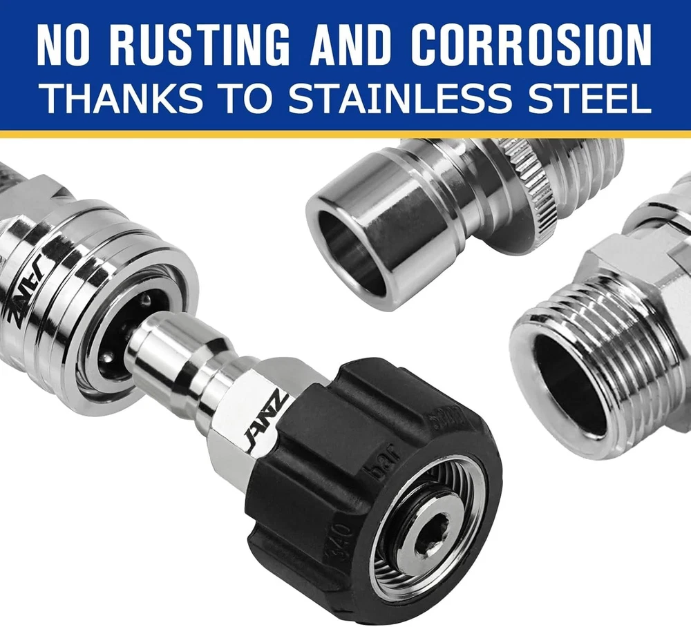 9-Piece Stainless Steel Pressure Washer Adapter Set - M22 to Quick Disconnect ‹ › ‹ › ‹ › ‹ › ‹ › ‹ › ‹ › ‹ › 9-Piece Stainless Steel Pressure Washer Adapter Set M22 to Quick Disconnect Perfect Solution for Your Pressure Washer: This comprehensive set includes every connector and adapter you need to convert your pressure washer connections to full stainless quick connects. What's Included: M22-14mm female + 3/8'' plug (QTY 2) M22-14mm male + 3/8'' QD (QTY 2) 1/2'' plug + 3/4'' male (QTY 2) 3/4" female + 1/2" quick connect (QTY 2) M22-14mm male + M22-14mm male (QTY 1) Quality Material: Each connector is crafted from high-quality stainless steel , which offers superior resistance to damage compared to brass. Features anti-rust and anti-corrosion attributes, ensuring high durability with remarkable hardness. Easy to Connect: Our electroplating treatment ensures a smooth operation for all connects, making it effortless to attach your pump, hose, and spray gun. This kit effectively converts 3/4'' threads into quick connectors , allowing you to easily connect all standard garden hoses to the inlet of your pressure washer. High-Pressure Rated: Every adapter provides a secure connection, supporting a maximum working pressure of up to 5,000 PSI . Attention: Note that the M22-14mm female fitting has a 14mm inside plug. If your pressure washer requires a 15mm connection, it may lead to leakage. Please verify that you have an M22-14mm hose prior to purchasing. Why Choose Our Adapter Set? Transform your pressure washing experience with our 9-Piece Stainless Steel Pressure Washer Adapter Set. With unrivaled quality and purpose-driven design, this kit not only makes connections easier but also enhances the durability and efficiency of your pressure washing tasks. Don’t let complicated connections slow you down – invest in this essential set and elevate your cleaning capabilities today! Shipping Free & Fast Shipping - We offer free shipping to most of the USA with a normal delivery time of 3-7 days. However, due to the current situation, additional delivery time (up to 3 weeks) may be required for some items. Alternative Carriers - We may use alternative carriers (e.g. USPS, FedEx, UPS, etc.) to ensure your package arrives safely and on time. Due to the use of multiple carriers, we are unable to provide a tracking number automatically. Handling Time - Orders are processed and shipped within 1-2 business days of receiving cleared payment. Shipping Restrictions - Shipping to Alaska, Hawaii, Puerto Rico, Guam, and other US territories may incur shipping charges or delivery restrictions. Please contact us before ordering, or your order can be refunded/cancelled. State Restrictions - There may be restrictions based on your state of purchase. For example, certain items may not be shipped to California due to state regulations. Contact for Tracking Updates - If you require tracking updates or have any concerns about the delivery of your order, please feel free to contact us, and we will be happy to assist you. Return Please see our eBay Return Policy. Thank you. Payment We accept all major credit cards, PayPal, and Apple Pay for your convenience. Your payment information is secure and encrypted to ensure a safe and seamless transaction. Please complete your payment within 3 days of purchase to avoid any delays in shipping. Feedback Your feedback is extremely important to us. We strive to provide the best products and customer service possible. If you are satisfied with your purchase, please take a moment to leave us a positive review. If you have any concerns or issues with your order, please contact us before leaving negative feedback. We are committed to resolving any problems and ensuring your satisfaction. Contact Us If you have any questions or concerns, please feel free to reach out to our customer support team. You can contact us through the eBay messaging system. We are available Monday to Friday, 9:00 am to 5:00 pm EST, and we will do our best to respond to your inquiry within 24 hours. Thank you for supporting our small family business! UPC: Not Set Unit Quantity: 0.72 kg Features: Quick Disconnect Items Included: M22-14mm male + 3/8'' QD (QTY 2),1/2'' plug+ 3/4'' male(QTY 2),M22-14mm male + M22-14mm male(QTY 1) Material: Stainless Steel Type: Pressure Washer Adapter Set Brand: Unbranded Power Source: Corded Electric Maximum Pressure: 5000 psi Product Line: Not Set Voltage: Not Set Model: Not Set Horsepower: Not Set Engine Type: Not Set Power: Not Set Soap Tank Capacity: Not Set Fuel Tank Capacity: Not Set Engine Size: Not Set Manufacturer Warranty: Not Set Noise Level: Not Set MPN: Not Set Color: Silver Year Manufactured: Not Set Item Height: Not Set Item Diameter: Not Set Cable Length: Not Set Item Length: Not Set Item Width: Not Set Country/Region of Manufacture: Not Set Style: Not Set Item Weight: 0.72 kg Unit Type: Not Set Assembly Required: Not Set