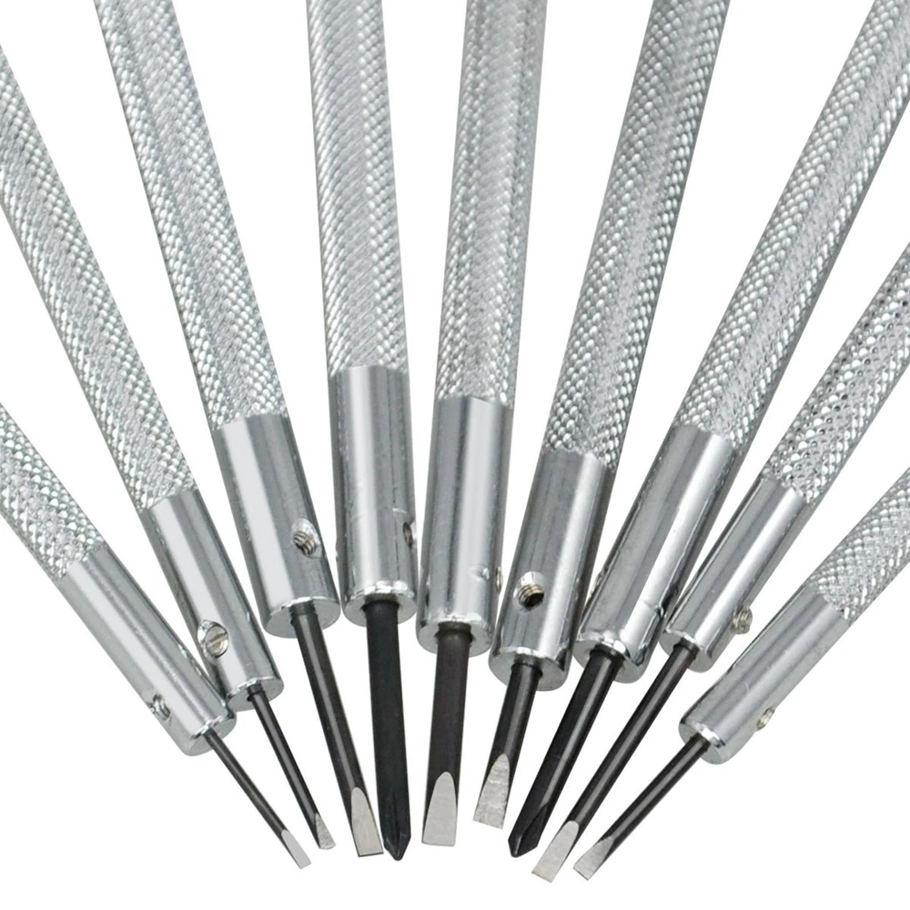9-Piece Watch Screwdriver Set with Rotating Stand 0.8-2.0mm Blades for Watch Repair
