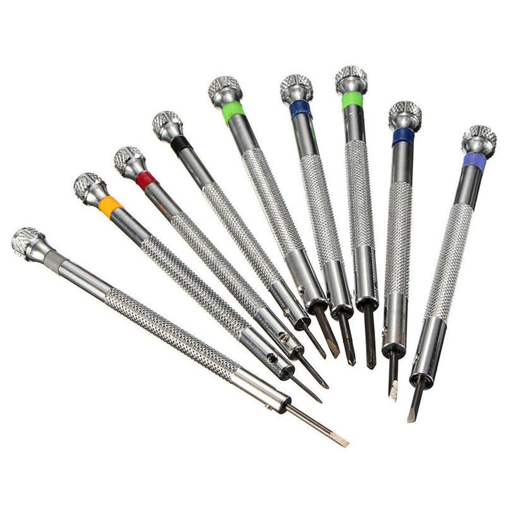 Product Description Perfect to repairing watches, eyeglass frames and electronic products. Blades replace are available. Specifications: Material: Metal and Plastic Color: As pictures 9 sized screwdrivers 9 sized Blades Rotating Stand and antiskid bottom Flathead screwdriver blade diameter: -0.8 -1.0 -1.2 -1.4 -1.6 -1.8 -2.0 Phillips screwdriver: + 1.6 + 1.2 What's included: 9Pcs Screwdriver 9Pcs Blades 1Pc Rotating Stand Shipping Returns Contact Us Payment 1. Items sent from US warehouse. 2. Receiving time = Processing time + Shipping time. 3. Processing Time: Around 1-2 business Days. 4. Shipping Time: 3-5 business day. It may have a little delay during some holiday (such as Christmas), any problem, please feel free to contact. Always believe we can figure things out with communication, if it comes to return, the pacakge must be intact and the same as you receive. If you have any questions, please feel free to email our service specialists 24 Hours a Day, 7 Days a Week. We will reply you ASAP. Return/refund is accepted within 30 days after the buyer receives the item. NO exchange will be accepted after 30 days from the date when the item is received. Please contact us first before returning your product!!! If you have any questions, our Customer Service staffs welcome you to email us. We strive to answer all questions and resolve any problems as quickly as possible. We care about our valued customers, and will always try to help you. So if you have any problems, You can contact us 7*24, we will reply at the first time. We accept all verified payments from ebay. Orders will be shipped after receiving cleared payment. Shipping 1. Items sent from US warehouse. 2. Receiving time = Processing time + Shipping time. 3. Processing Time: Around 1-2 business Days. 4. Shipping Time: 3-5 business day. It may have a little delay during some holiday (such as Christmas), any problem, please feel free to contact. Returns Always believe we can figure things out with communication, if it comes to return, the pacakge must be intact and the same as you receive. If you have any questions, please feel free to email our service specialists 24 Hours a Day, 7 Days a Week. We will reply you ASAP. Return/refund is accepted within 30 days after the buyer receives the item. NO exchange will be accepted after 30 days from the date when the item is received. Please contact us first before returning your product!!! Contact Us If you have any questions, our Customer Service staffs welcome you to email us. We strive to answer all questions and resolve any problems as quickly as possible. We care about our valued customers, and will always try to help you. So if you have any problems, You can contact us 7*24, we will reply at the first time. Payment We accept all verified payments from ebay. Orders will be shipped after receiving cleared payment. You may also like Brushed 60A ESC Waterproof Speed Control 2S-3S LiPo for 1/10 RC Cars Boat 18.89 USD 28-36.5mm 1.5mm Thick Flat Sapphire Watch Glass Crystal Replacement Repair Parts 8.59 USD 19.99 USD 10Pack Clear Battery Storage Case Protective Box Organizer for GoPro Hero 10 9 b 9.78 USD 19.99 USD High Quality Ebony Gold Plated Classical Guitar Chords Tuners 3R 3L Machine Head 23.89 USD 100PCS stem extenders/extensions for repairing Extending watch crown stems 12.78 USD 105Pcs Servo Plug Male Female JST JR Connector Crimp Pin Wire for RC Car Boat 13.89 USD powered by