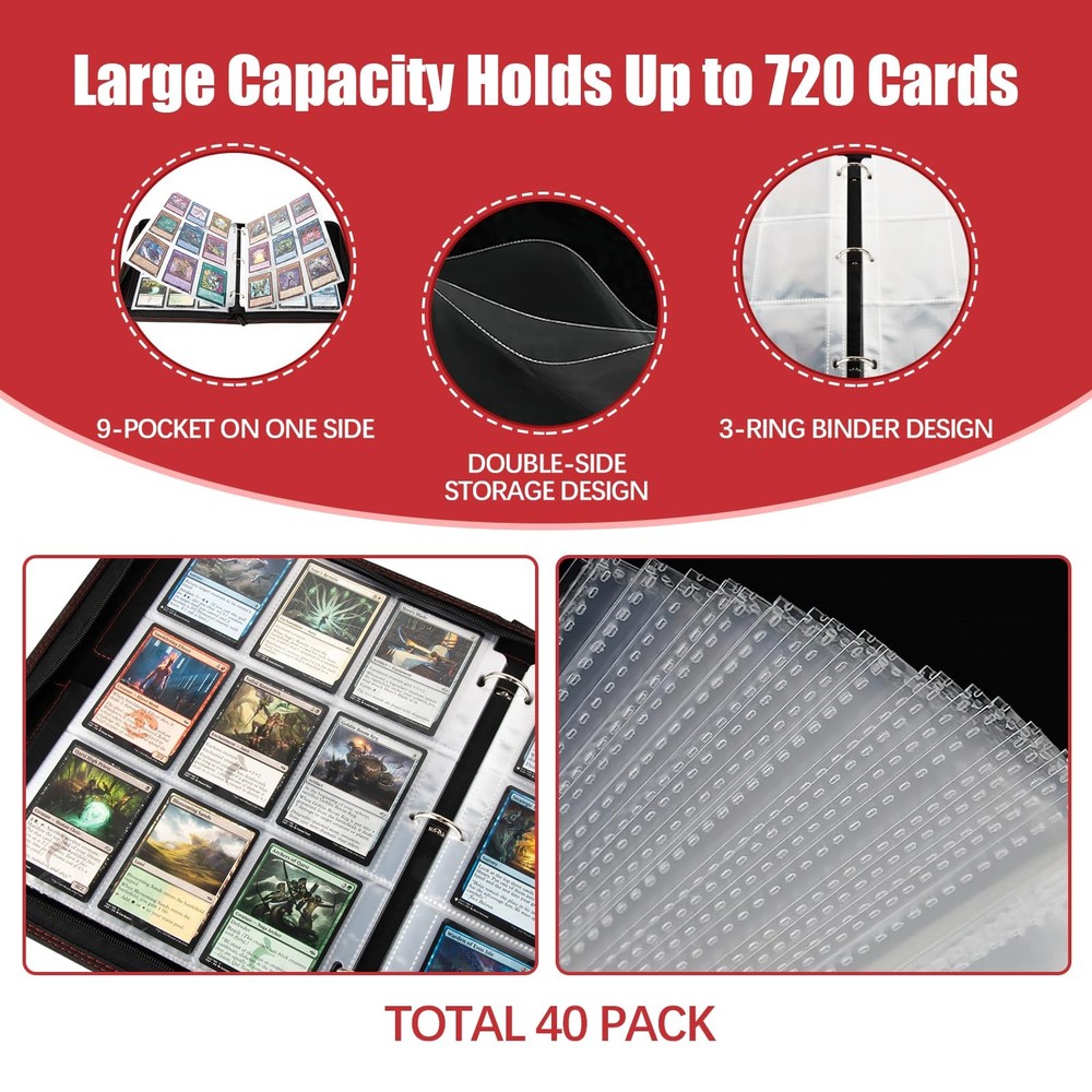 This binder is a game-changer for card collectors! The double-sided pockets hold 40 cards securely while keeping them visible and protected. The sturdy build feels premium, and the pages flip smoothly without bending. Perfect for organizing trading cards, sports cards, or even photos—everything stays neatly in place. The clear sleeves show off your collection beautifully, and the binder itself is lightweight for easy carrying. A must-have for serious collectors who want both protection and display in one sleek solution. Highly recommend!