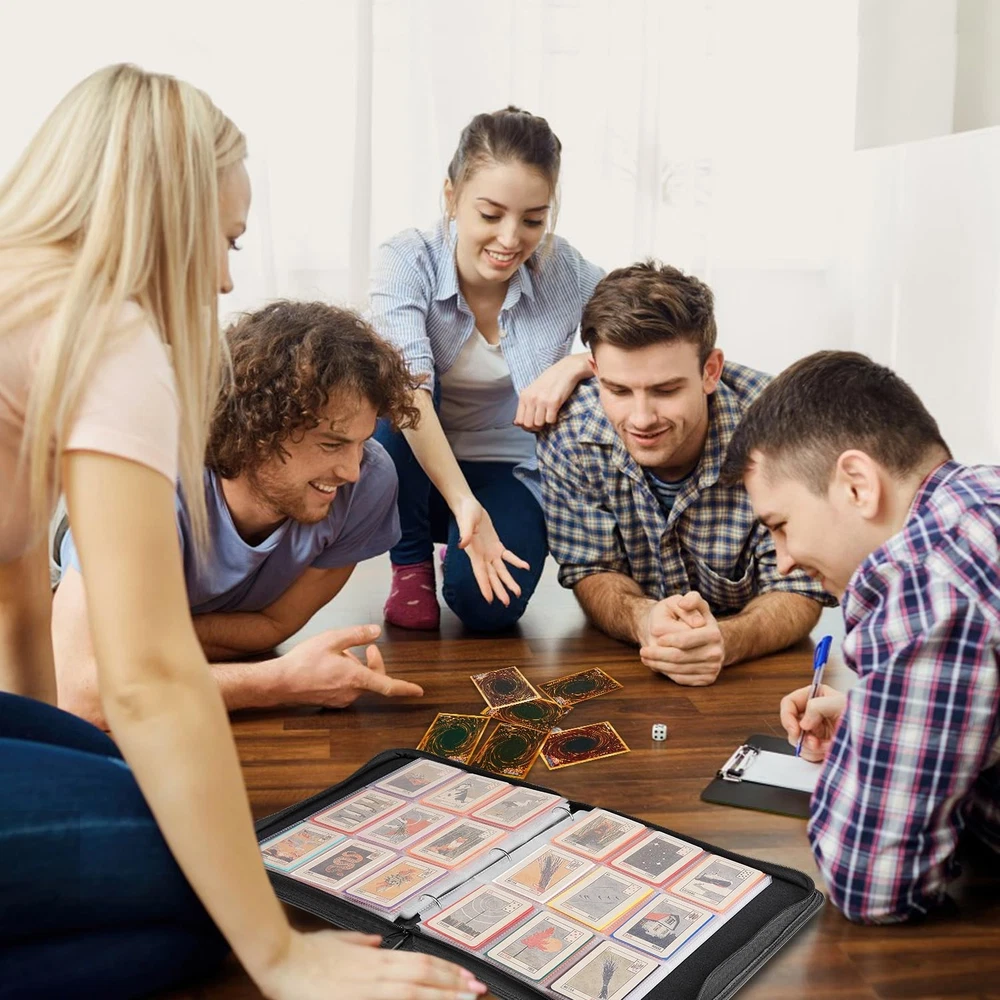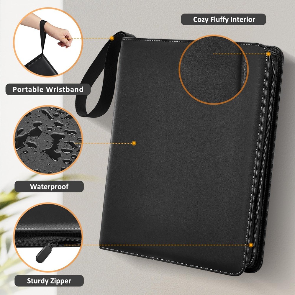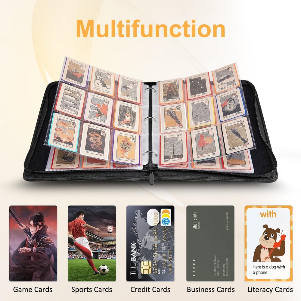 9-Pocket Card Binder - Perfect for Your Cards Collection Are you tired of your kid's card flying around the room? Are you tired of looking for cards all over the house? Our card binder with sleeves are perfect for your kids to collect valuable and cherished trading cards and you too! You can collect and play the cards with your children together. It will cultivate children's habit of organizing small cards and keeping room neatly. All kinds of Card Holders Sport cards (baseball cards/ football cards) Game cards (yugioh cards) Trading cards Coupons Business cards Credit cards Gift cards or other cards. Zipper Binder for Cards Collection A perfect gift idea for kids to collect and organize their favorite cards! π[Advanced Details] The zipper binder for cards collection is made of high-grade PU leather, and water or raindrops will not penetrate. Transparent polypropylene card bag, acid-free, strong, prevents card bending. 9 Pocket card binder is a suitable sized wrist strap for children or adults to carry around. π[Suitable Capacity] The middle of the trading card binder is a three-ring design, which is convenient for you to add or subtract pages at will. 900 card pockets (9 pockets on both sides/per page), great for trading cards to collect and store, or as a photo album. The 2.7*3.6in pocket size fits all your TCG cards and the sleeves on the cards, compatible with baseball cards, yugioh cards, football cards, Super Pro cards, etc. β¨[Security Protection] The yugioh card binder is designed for the top pocket to keep your card securely in place. The outer cover of the folder is very strong and protects the card from bending and damaging. Zipper closure design, easy to use, no card will overflow. The wristband design makes the trading card holder easy to carry and you don't have to worry about losing it. π[Suitable for a Variety of Cards] Our pokemon album card holder is not only compatible with Poke cards, but also fits all types of standard sized collector cards such as baseball cards, MTG card games, Coin cards, yugioh cards, football cards, NBA basketball cards, sports cards, Tcg cards, etc. If you want a baseball card binder, a football card binder, a yugioh card binder, a sports card binder, a basketball card binder or an NFL card binder, this is it. π[Great Gift and Service] Collectible trading card albums is a great gift for a card collector, it can provide a perfect protection for your cards. If you have any questions about the pokemon card binder 900 pockets, you can contact us at any time, we will provide you with the best service and help.