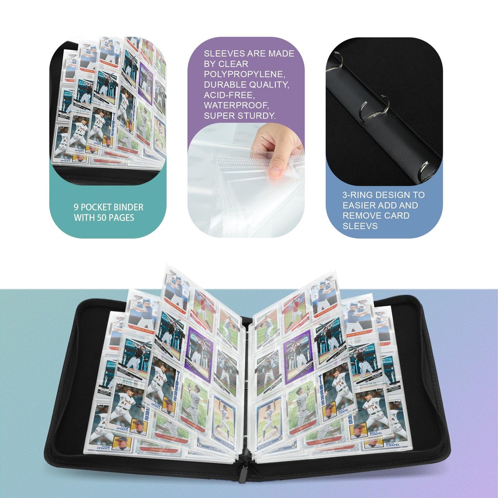 $ 12.48Trading Card Binder with Sleeves, 9 Pocket Baseball Card Binder, Sports Card ...