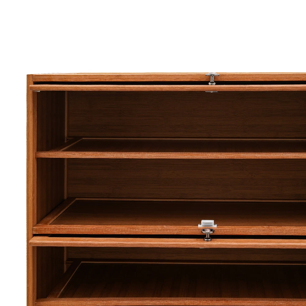a stylish and organized space for your shoes! The bamboo construction is sturdy, and the flip doors keep everything neat while adding a modern touch. Love how it maximizes storage without taking up too much room—perfect for small spaces. The extra open shelf is a bonus for displaying decor or quick-access items. Highly recommend for anyone looking to declutter!