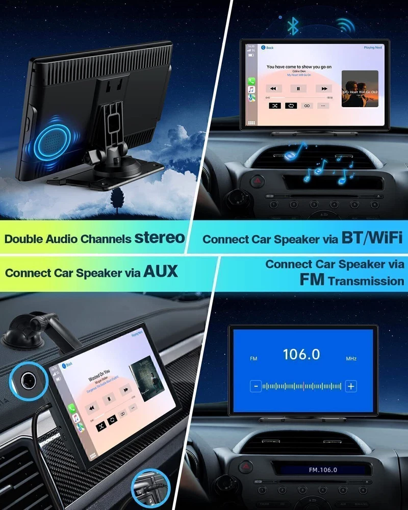 8" Portable Car Stereo Radio Wireless Apple Carplay/Android Auto Touchscreen GPS 52.99 USD Free shipping 9.26" 4K Front Dash Cam Portable Wireless Apple Carplay Android Auto Car Stereo 105.29 USD Free shipping 2024 Upgrade 2 in 1 Wireless CarPlay Adapter Android Auto Wireless Adapter Box 37.19 USD Free shipping 9.26" Touch Screen Car Stereo Radio For Wireless Apple Carplay/Android Auto GPS 59.99 USD Free shipping Wireless Car Stereo Apple Carplay with 2.5K Dash Cam+1080P Camera GPS Navigation 90.99 USD Free shipping 9"2.5K Dash Cam Car Stereo Radio Wireless Apple Carplay&Android Auto+Rear Camera 99.21 USD Free shipping 2in1 Universal Wireless Adapter for Apple Android Auto Carplay WiFi Plug & Play 35.79 USD Free shipping Wireless Carplay Adapter USB Dongle Plug & Play For Apple Carplay Android Auto 35.59 USD Free shipping 2 in 1 Android Auto Wireless Adapter Wireless CarPlay Adapter Plug Play Radio 34.19 USD Free shipping 2 IN 1 Wireless Carplay Android Auto Adapter, USB Type C Plug & Play Car Dongle 36.99 USD Free shipping 9 Inch Wireless Car Stereo with Apple Carplay,Portable Touch Screen GPS Navigation for Car,Car Audio Receivers with Bluetooth,Android Auto,Airplay,AUX/FM,Screen for All Vehicles US STOCK! Fast Delivery, Fast Received! Specific dimensions of this product: 22cm x 13.6cm x 2.4cm Things to know before buying: 1. To use Android Auto, Google Pixels phone needs to be Android 8.0 or above. For Android phones from other brands, the system needs to be Android 11 or above. 2.Wireless Bluetooth play function only supports IOS system. 3. Wireless Mirror Link only supports IOS system. The one good is you can move from car to car . A great solution to not having CarPlay in an older vehicle. Great alternative for expensive radio with Apple Carplay. Portable Wireless for Apple Carplay and Android Auto are easy to install, saving you money and time. GPS navigation: Users can purchase offline navigation directly from the Play Store. Connect to wifi, use Google Maps perfectly, you can go wherever you want, and never get lost again Wireless Carplay: The wireless Carplay in-vehicle system can closely integrate the user's iOS device and iOS experience with the dashboard system. Users who use Carplay can connect to the car system through a data cable to achieve voice-controlled navigation, make calls, send and receive messages, and listen to music. Wirless Android auto: The wired Android auto car system can closely integrate the user's Android phone and player, and realize navigation, make calls, send and receive information, listen to music and other operations through data cable connection; About this item 🚗 【Wireless Apple Carplay & Android Auto】 This wireless carplay car stereo support Apple CarPlay & Android Auto. You can simply get into your car and your Smartphone will automatically connect to the apple car play. With wireless CarPlay screen, you can access your smartphone's apps, maps, music, videos, and other features, as well as use Siri or Google Assistant voice to control the Car play screen. so you can focus on the road, keep your hands on the wheel, and drive safely ! 🚗 【Wireless Apple Airplay & 9-Inch HD Touch Screen】 You need to connect your iPhone and Carplay to the same Wi-Fi network, select SmartScreen in screen mirroring in the iPhone control center, and play Youtube, TikTok, and other videos on the car play screen. This portable carplay screen features a resolution of 1024*600 9-inch HD touch screen and supports 1080P video playback. Even outdoors or on trips, you can enjoy the high-definition large-screen video experience. 🚗 【Built-In Mic & Support Siri/Google Voice Assistant】 The universal carplay built-in clear mic allows you to answer the phone while driving, without having to hold your phone all the time. You can Send voice commands to access Siri/Google Assistant, such as "play music", "GPS Navigation", "send message" or "make phone calls" and more, very easy to use. 🚗 【Online Maps & Real-time GPS Navigation】 The real-time map information is enlarged and displayed on the apple carplay screen, GPS Navigator can use map applications such as Google Maps, Waze, and more. Compared to traditional navigators, GPS navigators for cars can navigate in real-time with the mobile phone map, and sync the latest smartphone‘s GPS navigation at any time, with no need for frequent updates. The 9 Inches HD IPS display can bring a more intuitive visual. 8-core high-definition 9-inch IPS capacitive screen running fast radio player, 1024*600 high resolution 5G WIFI : Connect WIFI, you will find a new world, stronger anti-interference ability, more stable Wifi wireless signal, and faster transmission speed FM radio : Online music can be transmitted to the car stereo through FM to enjoy the original car stereo, high-end radio chip, powerful noise reduction, and anti-interference ability, support FM function, clear channel and low noise Steering wheel control: through it, you can control the functions you need through the steering wheel, which is more convenient Split screen function: two pages can be displayed at the same time, such as navigation and music display at the same time Adjustable volume and screen brightness: Manual adjustment on the car play Mobile phone mirror link: IOS mirror link Image mirror: Turn on/off Screensaver: Turn off/1 min/5 min Wallpaper: support Driving Posting: Left Rudder/ Right Rudder Protable Apple Carplay & Android Auto Other Feature Intelligent voice can directly control the player to open and close the mobile phone, open and close navigation, make calls and other functions through the voice, so as to better liberate your hands and realize safe driving Built-in A2DP/Hands Free/Phone book Bluetooth, automatic loading of the phone book, compared with the previous version, the speed is faster and the channel capacity is larger Notice: Only support IOS system Support 12-24V voltage, cigarette lighter power supply, suitable for al