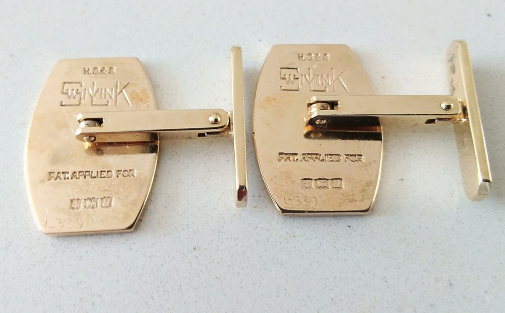 9ct Gold on Silver SWIVLINK Cufflinks 1969 Birmingham Hallmark Made in England by Henry Griffith & Sons each diamond cut face approx. 21mm x 14mm, pair weighs a solid 8g please take a look at pictures & description for more detail / condition, these are the actual cufflinks you are bidding for, superb design & quality. Excellent Condition clean & ready to wear I’m always happy to combine p&p for items & lots paid for in single transaction on one invoice. please ask or wait for combined invoice before making any payment to ensure maximum saving on shipping. UK or Overseas: your parcel will always be sent securely packed, tracked door to door & insured to full sale value