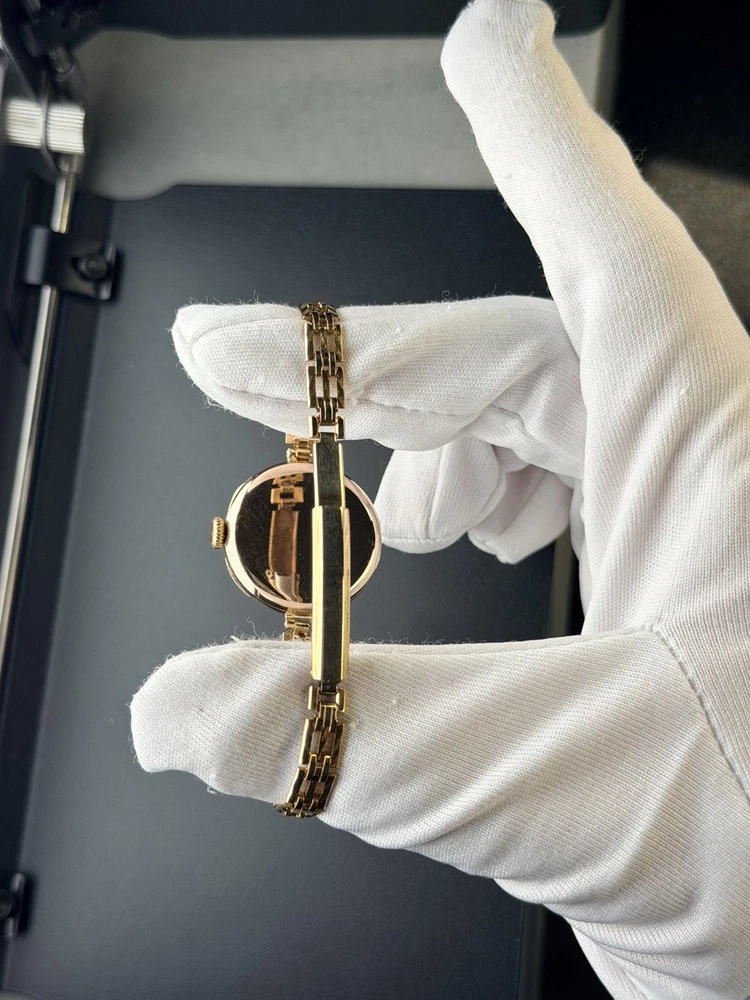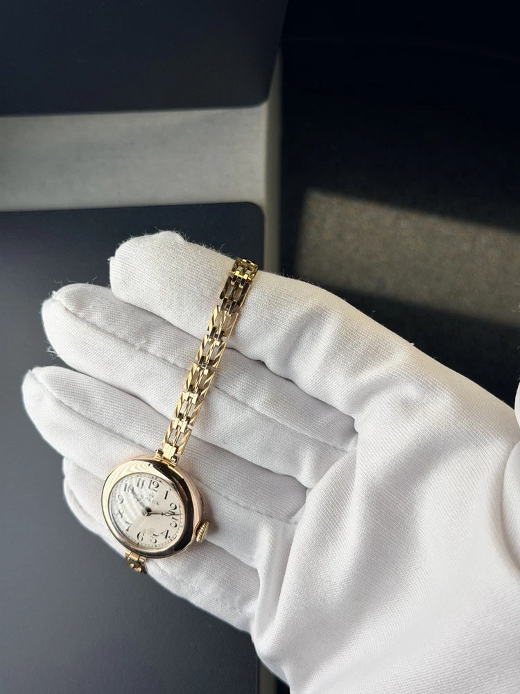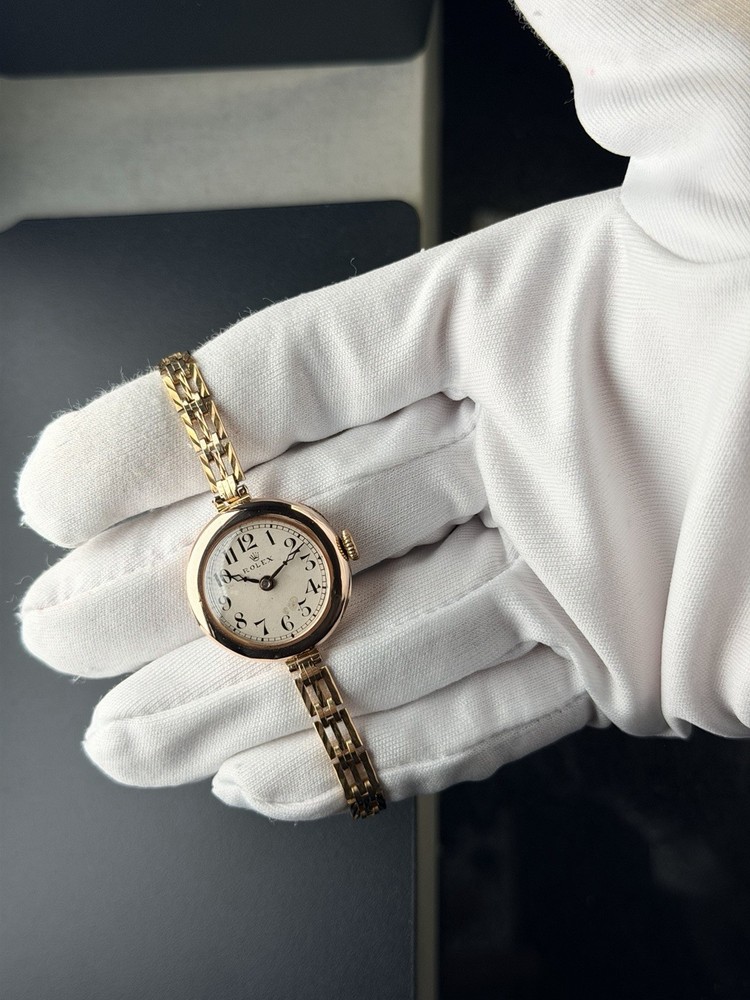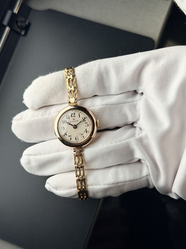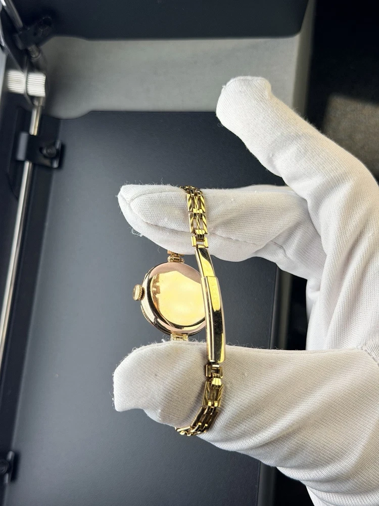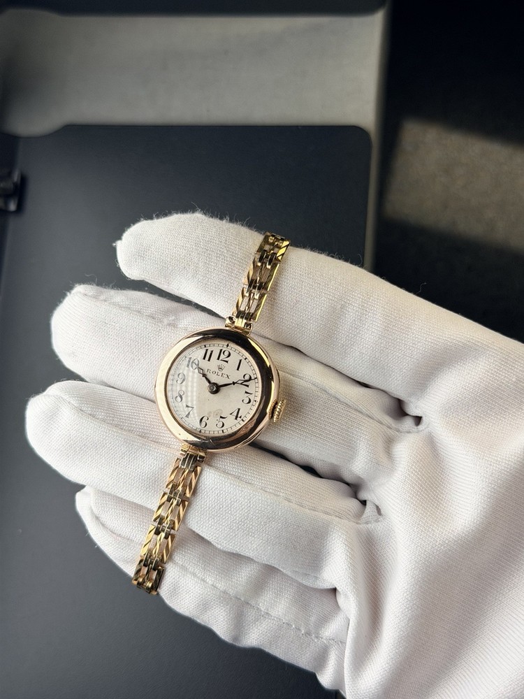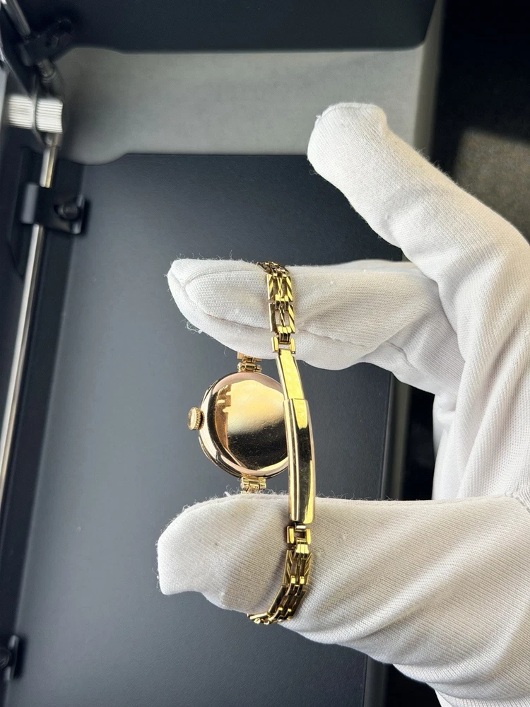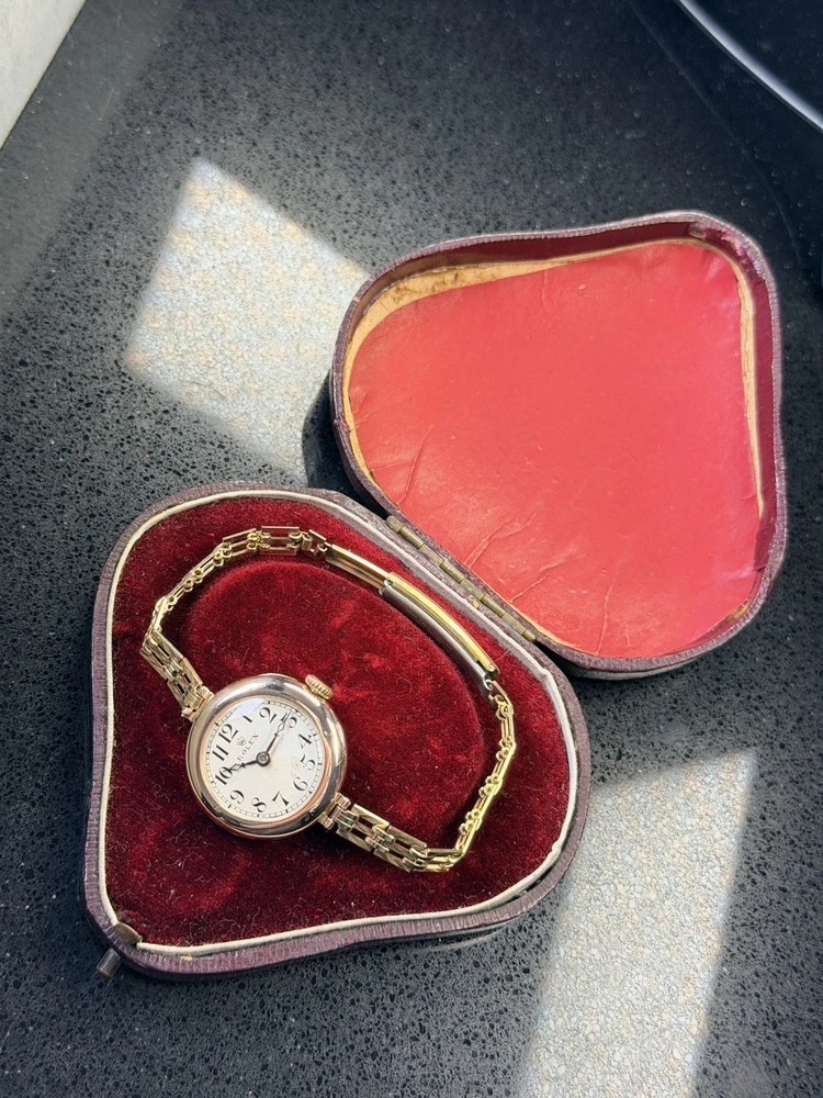 Vintage Rolex Ladies Watch in 9ct solid gold case, good working condition, keeping good time. This watch features white dial with arabic numerals. Case size is 26mm with corresponding gold 9-375 hallmarks, Bracelet is length-adjusting gold plated one. The case is also signed W&D", this watch case refers to the early hallmarked cases used for Rolex by the Rolex brand founders Hans Wilsdorf and Alfred Davis. The letters stand for "Wilsdorf and Davis". The watch had been deep cleaned, ready to wear as gifts. Comes with a red antique box as shown in photo. To be shipped via Royal Mail Special Delivery Next Day 1pm Tracked & Signed. Authenticity Guarantee: Yes Dial: Good/fair condition, showing signs of age. Movement: Rolex signed movement in going order, no warranty for future time keeping or going order. Case: Signed 9ct 375 with corresponding gold hallmarks. In good condition, general scratches. Free of personal engraving. Strap/Bracelet: Gold plated length adjustable. Terms & Conditions: Please be aware that all vintage watches have their own unique imperfections, whether aesthetic or functional. We kindly encourage you to thoroughly review the photos and ensure it meets your satisfaction before placing an order. Should you have any questions, please don’t hesitate to reach out – we’re always happy to assist. For watches priced at £1,500 and above, it will go through ebay authentication process free of charge, we use Royal Mail Special Delivery Next Day 1pm Guarantee Signed & Tracked to send to eBay's Authenticity Centre for verification and certification before they are dispatched to customers.