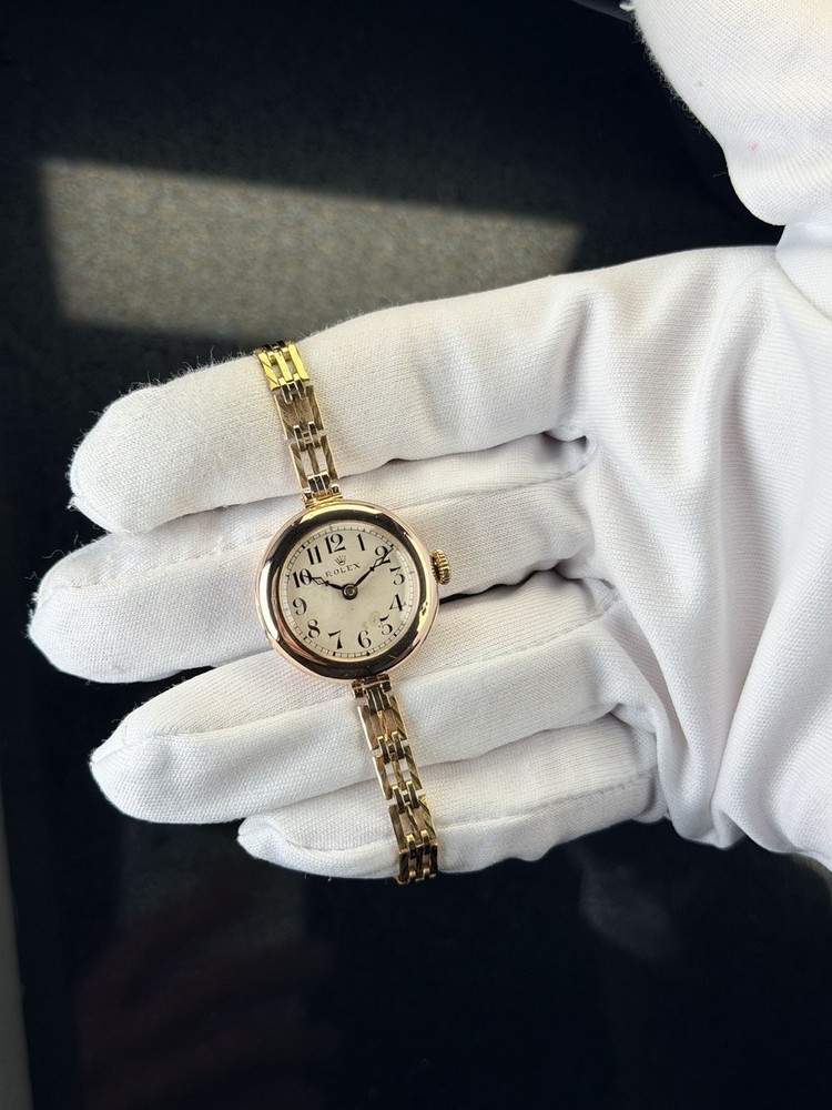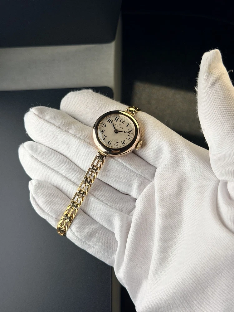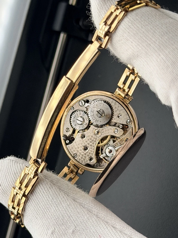 (9K Gold) Vintage Rolex Lady Art Deco Cocktail Watch 20mm Antique Bracelet