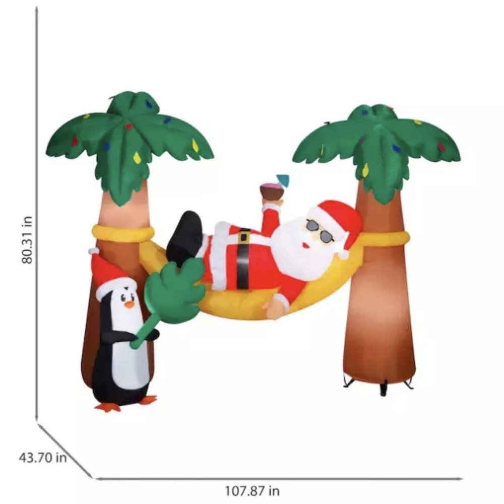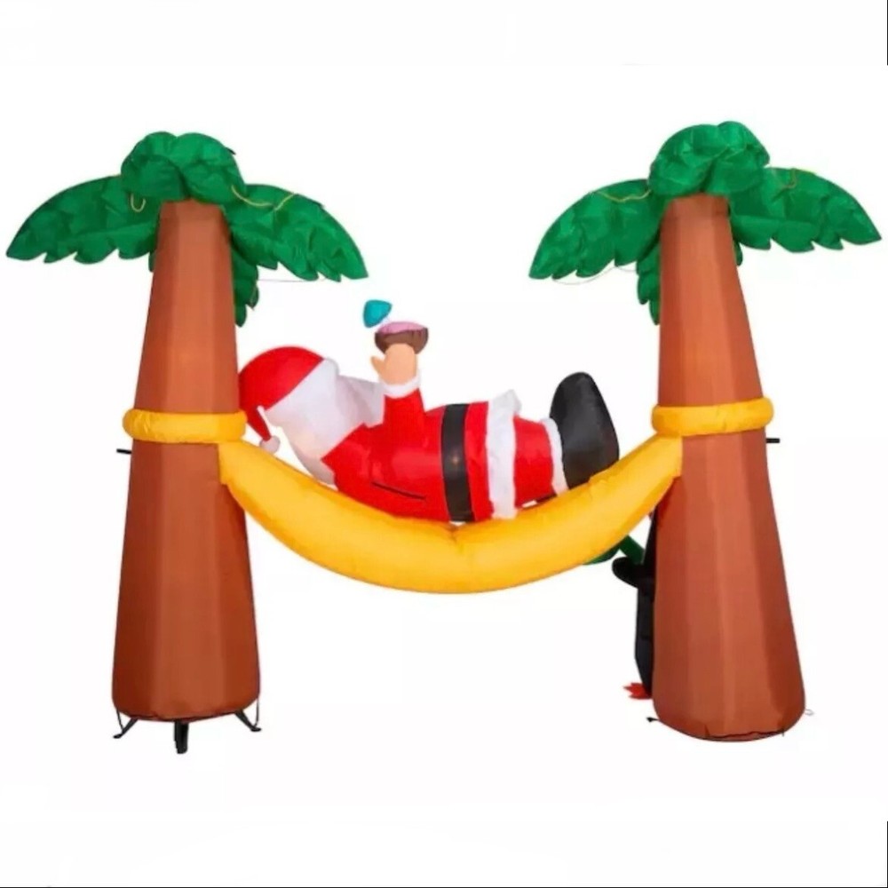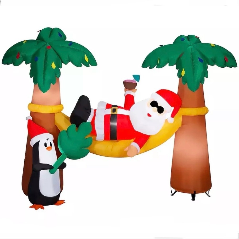 9 FT Santa Claus Hammock Palm Trees Airblown Yard Inflatable Christmas Tropical