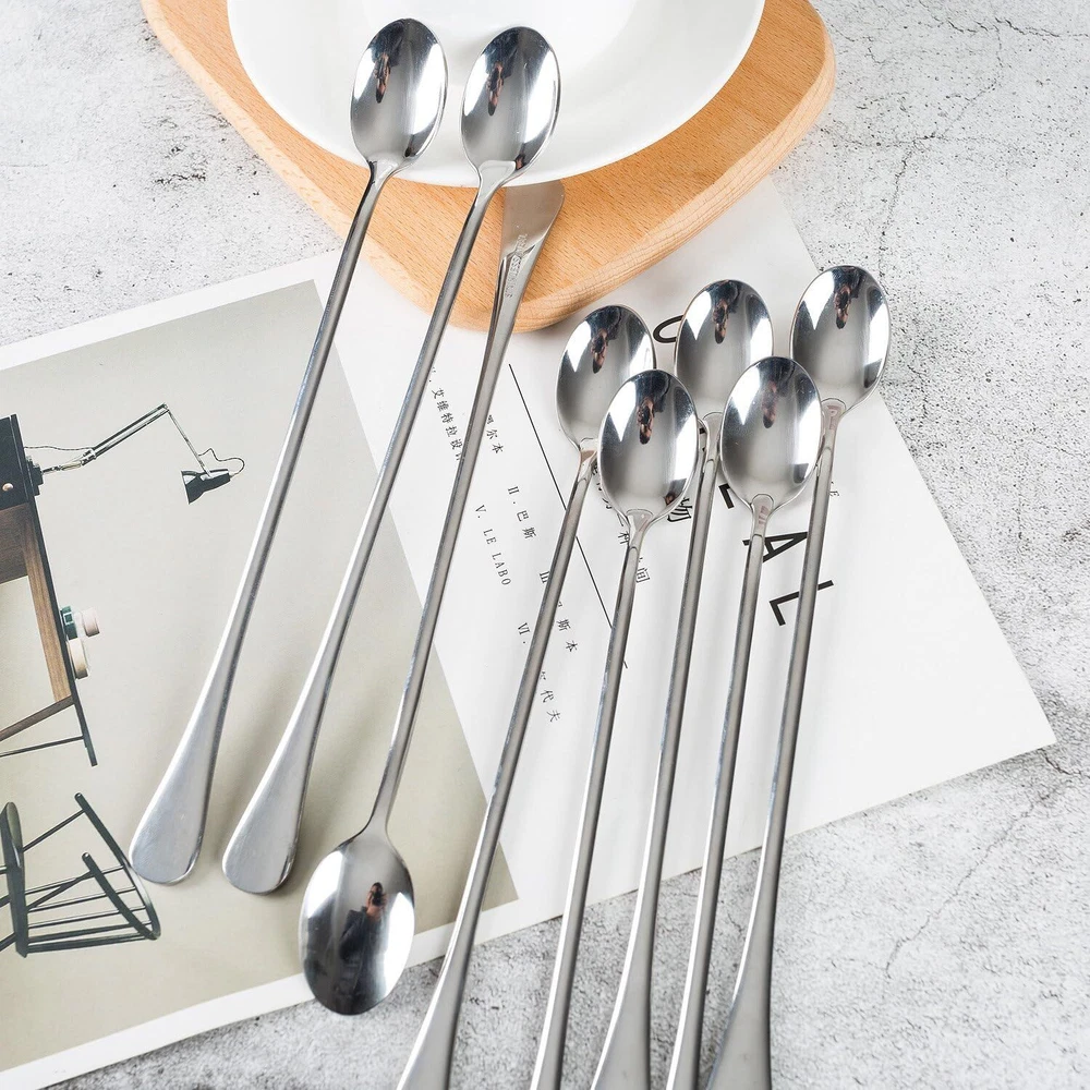9-inch Long-handled ice tea spoon, cocktail stir spoons, stainless steel 9 IN Product Details Item Weight: 7 Ounces Number of Pieces: 8 Is Dishwasher Safe: Yes Product Dimensions: 10.39 x 2.72 x 0.91 inches Item Weight: 7 ounces Manufacturer: keekie ag Country of Origin: China Item model number: C-8 Is Discontinued By Manufacturer: No Color: 9 IN Material: Stainless Steel Brand: dhrbsx Style: Tableware Product Dimensions: 9.5"L x 1.2"W 8-piece ice cream spoons/ice teaspoons, coffee mixing spoon 9.5-inch Made of high quality stainless steel vacuum titanium, never change color Dishwasher-safe without harsh detergents Perfect for home, office and restaurant. Food quality materials for human,nice for family dinner party.