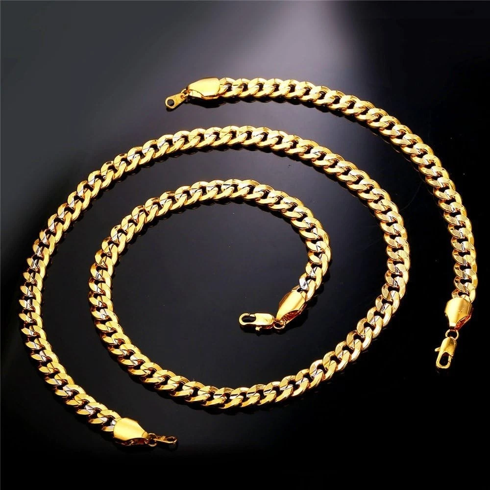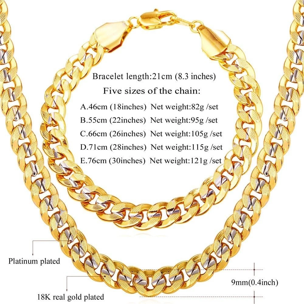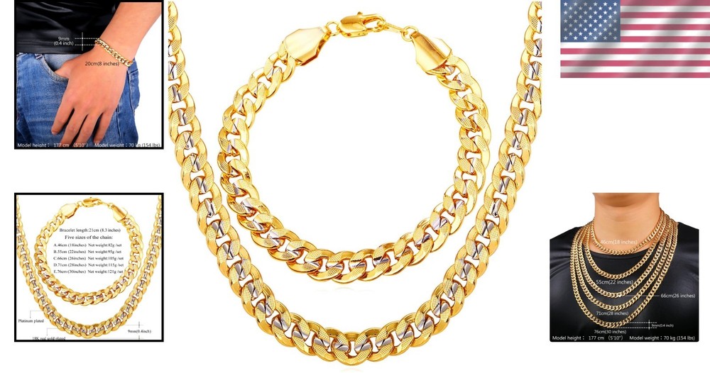 Exclusive 9mm Gold-Plated Miami Cuban Chain - Cool Hip Hop Fashion Necklace ‹ › ‹ › ‹ › ‹ › ‹ › ‹ › ‹ › ‹ › ‹ › ‹ › ‹ › Exclusive 9mm Gold-Plated Miami Cuban Chain Elevate your style with this stunning Cool Hip Hop Fashion Necklace, designed to make a bold statement. Key Features: Miami Cuban Chain: Experience the chunky curb chain style – the most sought-after fashion accessory, beloved by hip-hop enthusiasts for its chic versatility and effortless pairing with everyday outfits. High-Quality Materials: Crafted from surgical brass copper, this chain is vacuum-plated with 18K gold and platinum, creating a unique two-tone metal appearance that glimmers brilliantly, even after extended wear. Enjoy peace of mind with its low maintenance care; safe for showering, swimming, or during workouts. Sturdy Design: The robust link structure is complemented by an easy-to-clasp lobster claw closure, ensuring durability and strength for daily wear. Versatile Sizing: Choose your perfect fit! Available in necklace lengths of 18/20/22/24/26/28/30 inches and paired with a stylish bracelet measuring 8.3 inches (21 cm). The fashionable Cuban width is 9mm (0.3 inches). Perfect Gift: This elegant unisex golden chain set is the ideal statement piece for anyone looking to elevate their accessory game. Nickel-free and lead-free, the hypoallergenic finish guarantees a comfortable wear, even for sensitive skin. Charming Packaging: Each jewelry set includes a necklace and a bracelet, beautifully presented in a branded jewelry box, making it a perfect gift for Anniversaries, Birthdays, Christmas, Valentine’s Day, Father's Day, Mother’s Day, or just because. Why Choose the Exclusive Miami Cuban Chain? Indulge in a piece of jewelry that transcends time and trends. The Exclusive 9mm Gold-Plated Miami Cuban Chain isn’t just an accessory; it’s a declaration of style, personality, and flair. Stand out from the crowd and adorn yourself in confidence with this trendsetter’s must-have. Make a lasting impression – whether it’s a festive occasion or a casual outing, this chain has you covered. Embrace the essence of hip-hop culture while enjoying quality and unmatched elegance. Order your Exceptional Miami Cuban Chain today and redefine your fashion statement! Shipping Free & Fast Shipping - We offer free shipping to most of the USA with a normal delivery time of 3-7 days. However, due to the current situation, additional delivery time (up to 3 weeks) may be required for some items. Alternative Carriers - We may use alternative carriers (e.g. USPS, FedEx, UPS, etc.) to ensure your package arrives safely and on time. Due to the use of multiple carriers, we are unable to provide a tracking number automatically. Handling Time - Orders are processed and shipped within 1-2 business days of receiving cleared payment. Shipping Restrictions - Shipping to Alaska, Hawaii, Puerto Rico, Guam, and other US territories may incur shipping charges or delivery restrictions. Please contact us before ordering, or your order can be refunded/cancelled. State Restrictions - There may be restrictions based on your state of purchase. For example, certain items may not be shipped to California due to state regulations. Contact for Tracking Updates - If you require tracking updates or have any concerns about the delivery of your order, please feel free to contact us, and we will be happy to assist you. Return 30-Day Hassle-Free Returns - We want you to be completely satisfied with your purchase. If you are not, you can return the item within 30 days of receiving it for a full refund or exchange. Easy Return Process - To start a return, simply contact us and we will provide you with a prepaid return shipping label and detailed instructions. Restocking Fee - There are no restocking fees for returns. However, the buyer is responsible for return shipping costs if the return is not due to a seller's error. Refund Processing Time - Refunds will be processed within 5 business days of receiving the returned item in its condition. Payment We accept all major credit cards, PayPal, and Apple Pay for your convenience. Your payment information is secure and encrypted to ensure a safe and seamless transaction. Please complete your payment within 3 days of purchase to avoid any delays in shipping. Feedback Your feedback is extremely important to us. We strive to provide the best products and customer service possible. If you are satisfied with your purchase, please take a moment to leave us a positive review. If you have any concerns or issues with your order, please contact us before leaving negative feedback. We are committed to resolving any problems and ensuring your satisfaction. Contact Us If you have any questions or concerns, please feel free to out to our customer support team. You can contact us through the eBay messaging system. We are available Monday to Friday, 9:00 am to 5:00 pm EST, and we will do our best to respond to your inquiry within 24 hours. Buy it now and enjoy a pleasant shopping experience! Style: Chain Type: Necklace Chain Type: Cuban Link