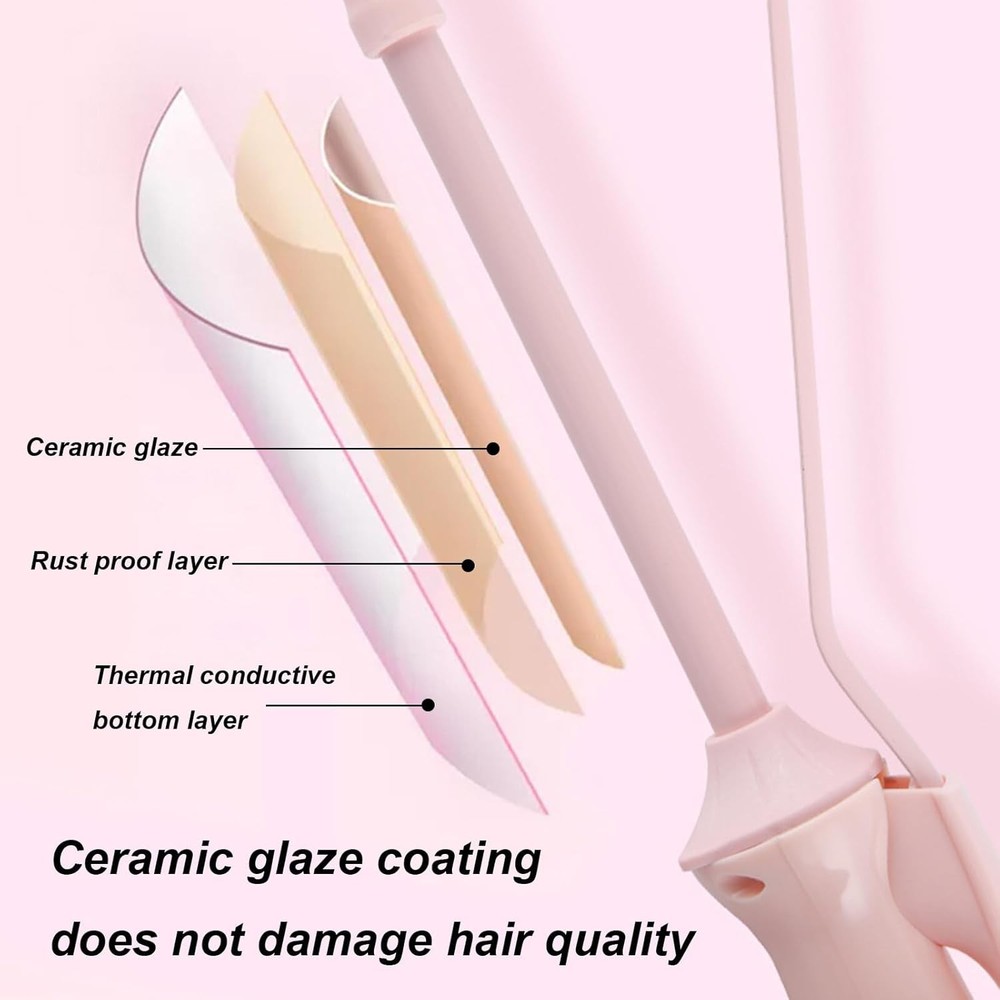 9mm Thin Curling Wand Hair Curler Ceramic Coated Hair Curling Iron for Long and Short Hair Product Details Product Dimensions : 12 x 23 x 23 inches; 7.41 ounces Manufacturer : Ruiqas Product Benefits: Curling Shape: Straight Brand: Ruiqas Hair Type: Wavy Material: Ceramic Tourmaline Unique Design: Our curling iron rollers are 9mm (3/8 inch) with a ceramic hair tube, the ceramic coating on the barrel releases negative ions to reduce damage to your hair and keep it soft and shiny. Equipped with a 1.3 metre swivel cord, it allows you to operate it in the freest way possible PTC Heating: Using PTC heating technology, it heats up quickly in 30 seconds and can cool down quickly with automatic constant temperature, reducing scalp damage due to hot and cold temperatures Safe to Use: Automatically turns off after 30 minutes to ensure safe operation. After use, this curling iron is a perfect birthday/holiday/Valentine's Day gift for friends or family Easy to Create Tight Little Curls: Fast heating to create tight spiral curls, the curling iron heats up extremely fast, even on rushed mornings, you can make beautiful curls in minutes and the effect lasts all day 100% Risk-Free Purchase:Our products are worthy of your trust, if you receive a product that is not as good as you would like it to be, please don't worry about it, please contact us for a refund or free replacement. Ideal gift for your friends and family Features: Using PTC heating technology, this curling wand heats up quickly and evenly. Ceramic coating on the barrel releases negative ions to reduce hair damage, keeping hair smooth and shiny. Auto- shut off after 30 minutes guarantee safe handling. Allows you to easily create voluminous tight curls for both short and long hairs. swivel cord enables you to operate in the most free way. Specification: Plug type: US plug Power: 20W Color: Pink Heater material: Tourmaline Ceramic Curling barrel diameter: 9mm Product length: 31cm Power cord length: 1. 3 meters Note: Please allow 1- 3cm ( 0. 4- 1. 18" ) difference due to manual measurement and slight color variation for different display setting. Package Including Package Includes: 1* Hair curling iron