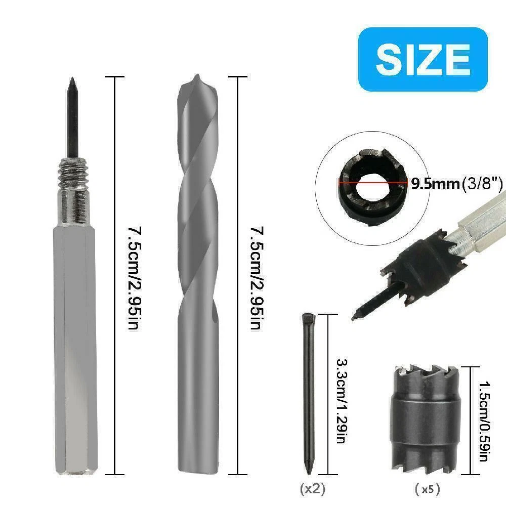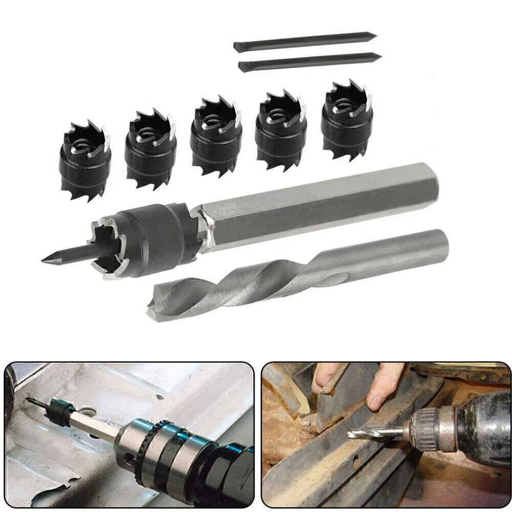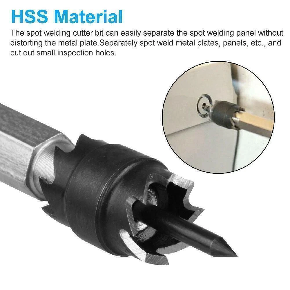 Product Description If you have any questions, please contact customer service first, do not open disputes easily, thank you! Features: HSS Material: Made of high-speed steel material, high hardness and wear resistance. Center pin on the bit is spring-loaded. Double-sided Blades: Sharp double-sided blades for high efficiency. Suitable for thin stainless-steel sheets, iron sheets, aluminum sheets, F.R.P, or other thin metal sheets. Spot weld cutter drill bit for easily separate spot-welded panels without distorting the sheet metal. Separate Spot-welded sheet metal, panel, etc. and cut small access holes. This weld cutter is a double-sided rotary cutter blade that separates spot-welded panels more effectively than a panel cutter. Double-sided 3/8-inch rotary blade and Hex Shank fit most drills. Easy to replace the blades when it begins to dull. Specifications: Material: HSS Diameter of the Saw Tooth Part: 3/8"(9.5mm) Use: Iron, cast iron, alloy steel, carbon steel, die steel Package include: 1 x Electric Welding Drill Kit (9PCS) About Us We accept all payments authorized by eBay. powered by