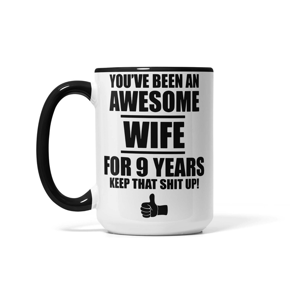 This 9th Anniversary Gift For Wife Mug Coffee Cup is a novelty coffee mug with a capacity of 11oz, made of ceramic and designed in white color. With a height of 3.75 inches and a width of 3.14 inches, this unique and personalized gift for your wife's 9th wedding anniversary is perfect for celebrating this special milestone. Proudly manufactured in the United States, this mug is not only a practical kitchen item but also a thoughtful and sentimental present to show your love and appreciation.