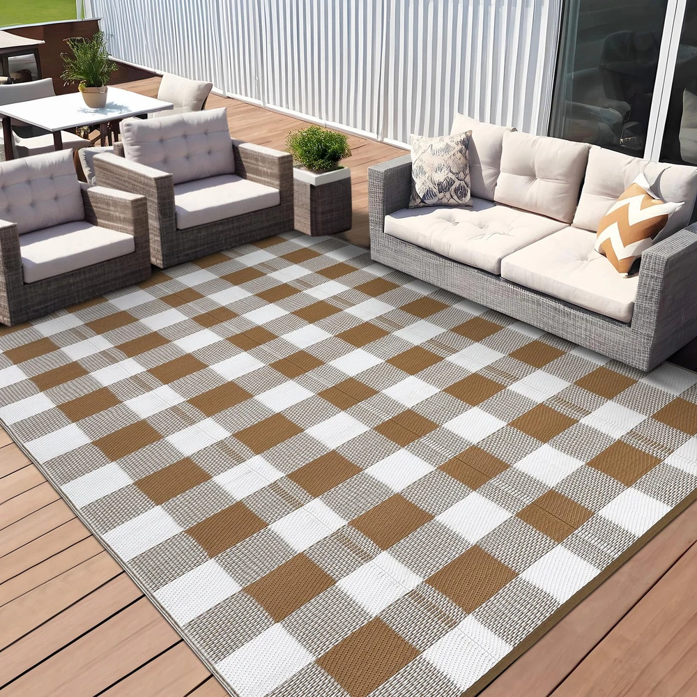 This rug is a game-changer for outdoor spaces! The stain and water resistance make it perfect for picnics, camping, or patio use—spills wipe right off. It’s incredibly durable, fade-resistant, and easy to clean, staying fresh through rain or heavy use. The texture is comfortable underfoot, and the design adds a stylish touch. Highly recommend for anyone needing a low-maintenance, weatherproof rug!
