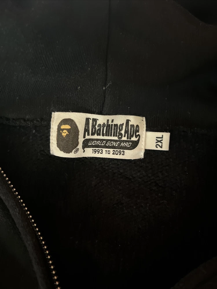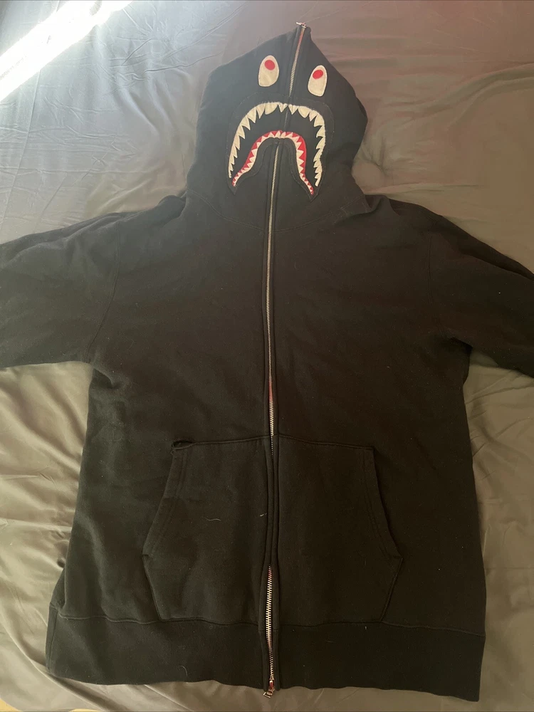 A BATHING APE SHARK FULL ZIP HOODIE (BLACK) SZ XXL