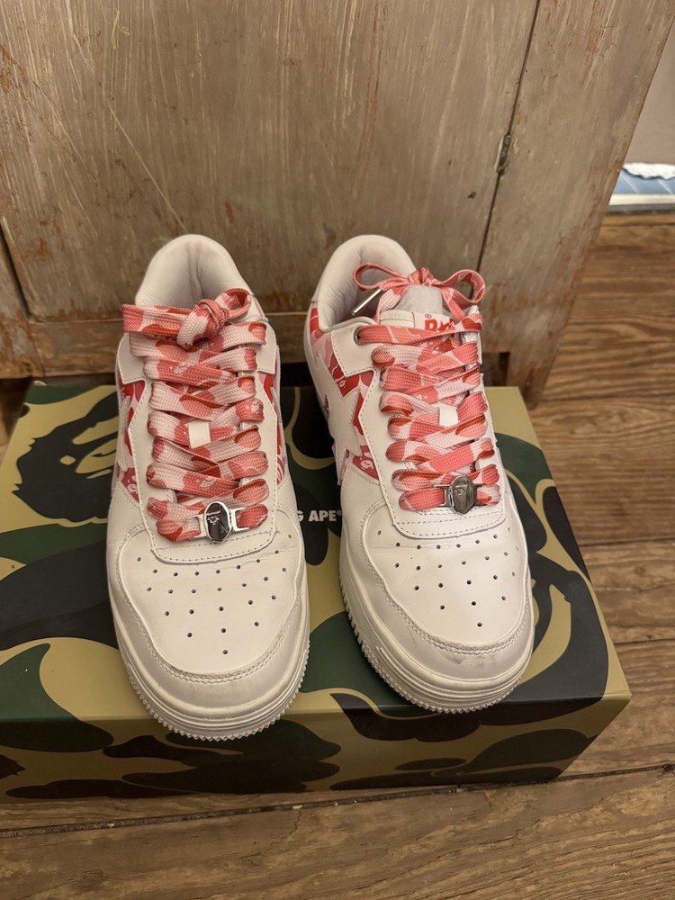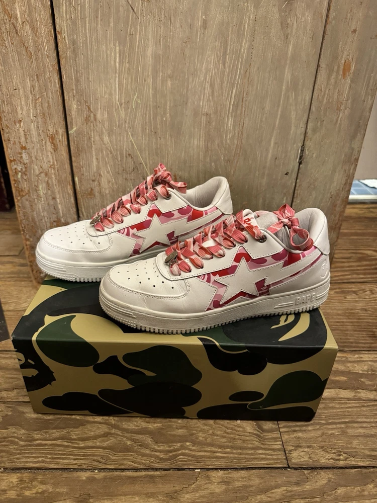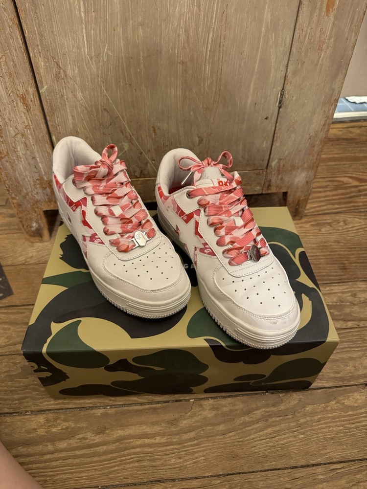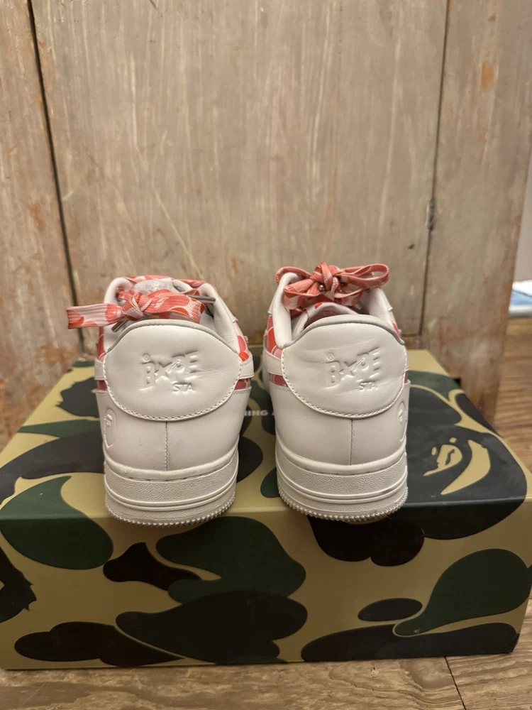 Model: 2025 Model ABC CAMO BAPE STA Style: Sneakers MPN: 1K70-191-335 Brand: A BATHING APE US Shoe Size: 8 Department: Men Outsole Material: Rubber Type: Low-Top Motif Pattern: ABC CAMO Upper Material: Cowhide Color: Pink (Motif) Fabric Type: Canvas Motif: BAPE STA