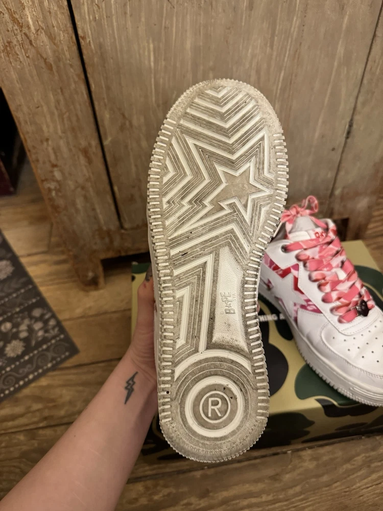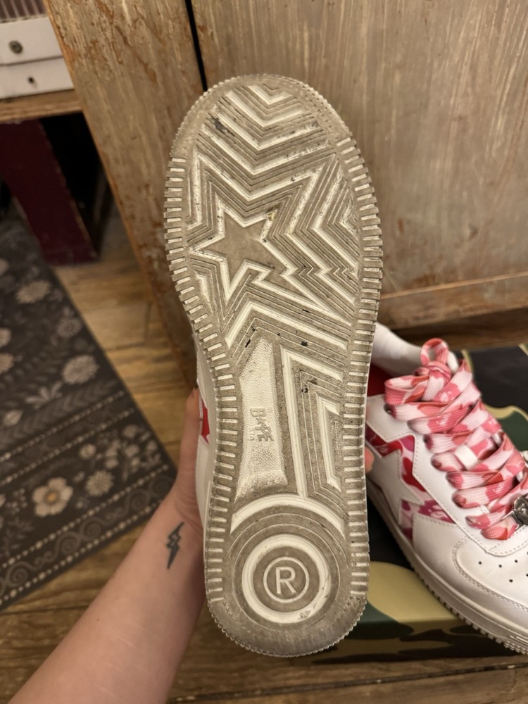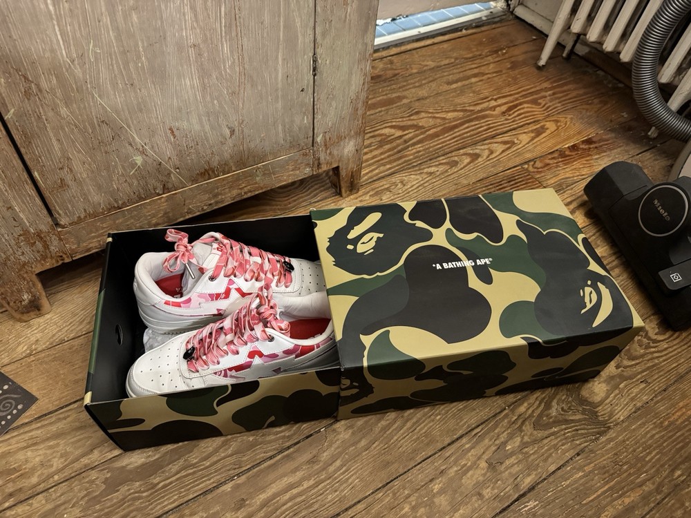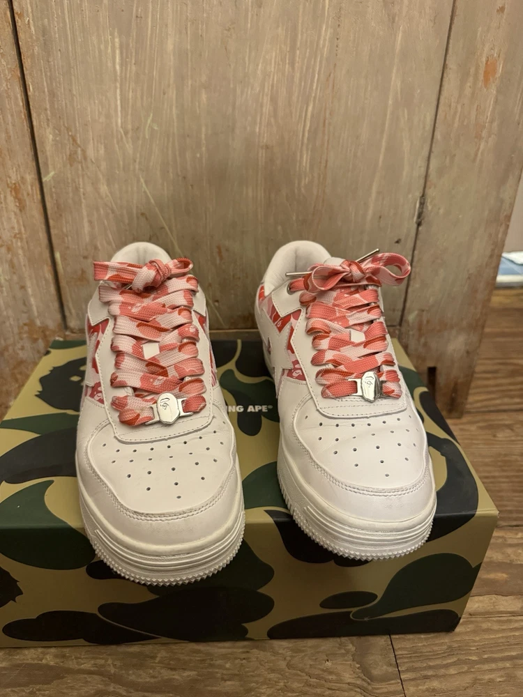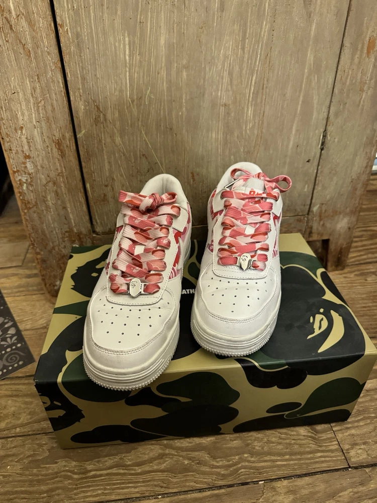 Model: 2025 Model ABC CAMO BAPE STA Style: Sneakers MPN: 1K70-191-335 Brand: A BATHING APE US Shoe Size: 8 Department: Men Outsole Material: Rubber Type: Low-Top Motif Pattern: ABC CAMO Upper Material: Cowhide Color: Pink (Motif) Fabric Type: Canvas Motif: BAPE STA