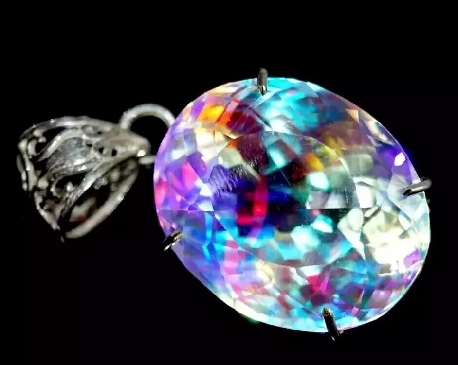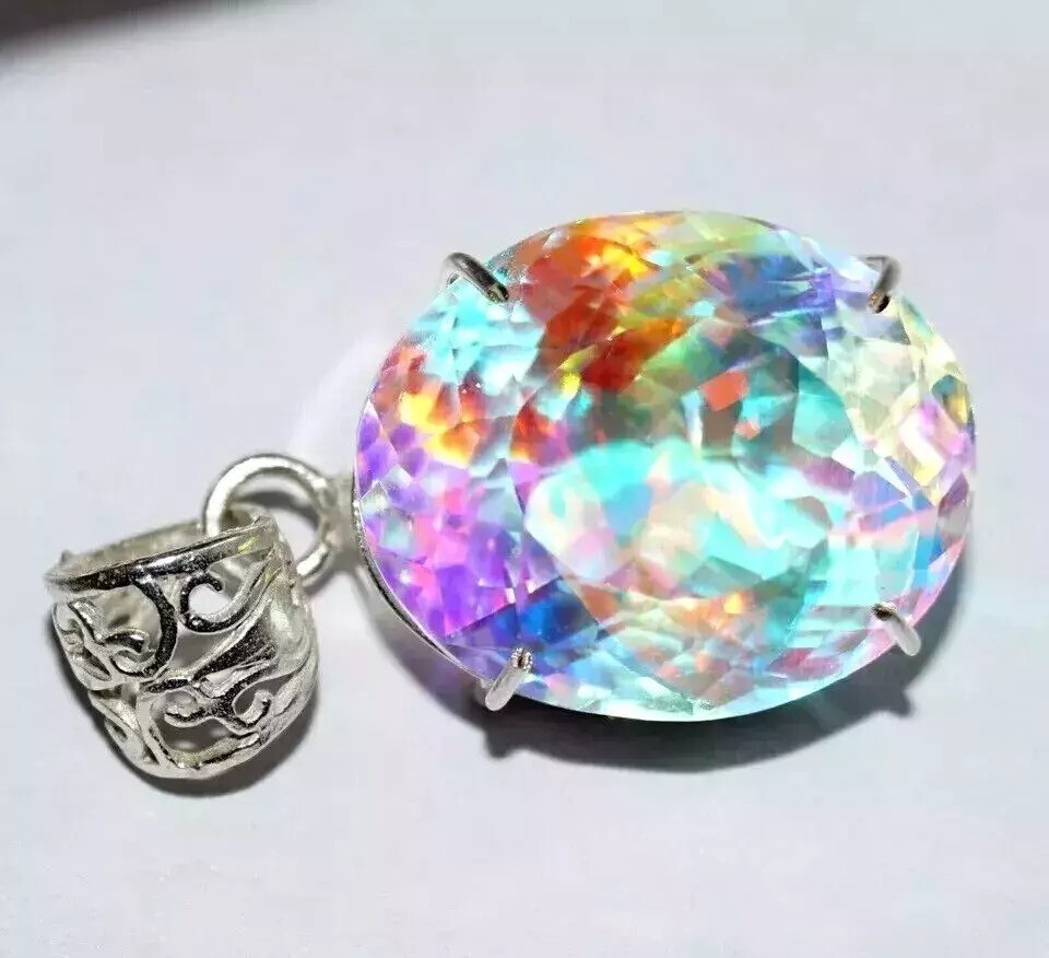 96 Ct+ A++ Natural Trillion Cut Mystic 925 Solid Silver Pendant Loose Gemstone