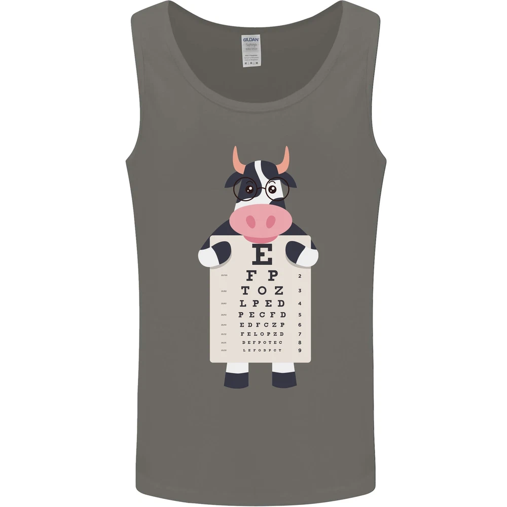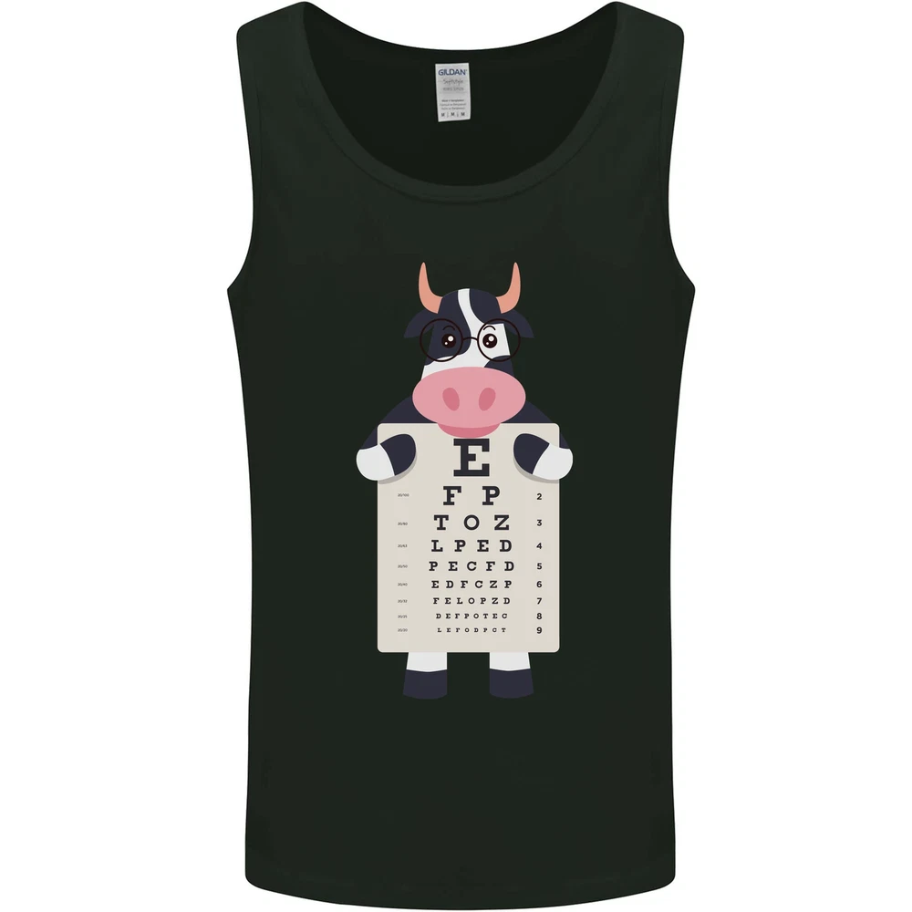 A Cow Holding a Snellen Eye Chart Glasses Mens Vest Tank Top