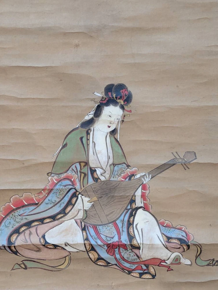 A Crafted Hanging Scroll, Beautiful Painting Playing The Biwa, Classic Beauty, E