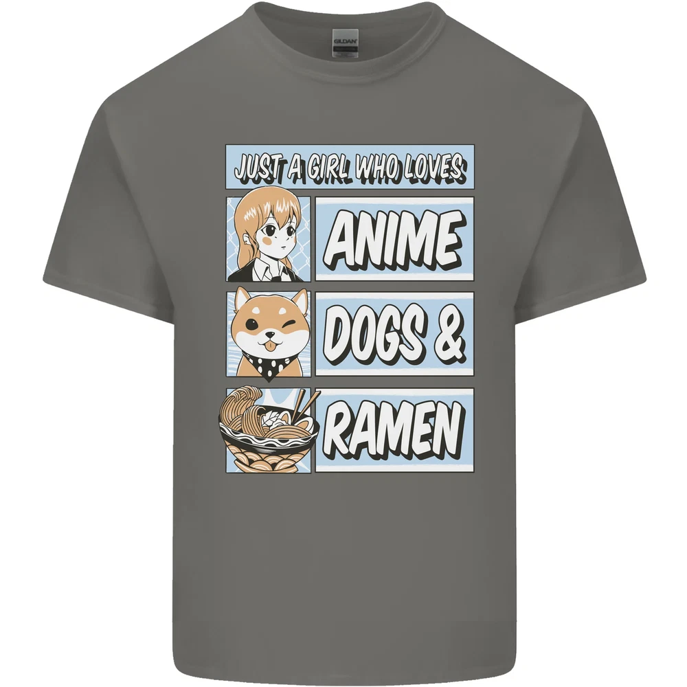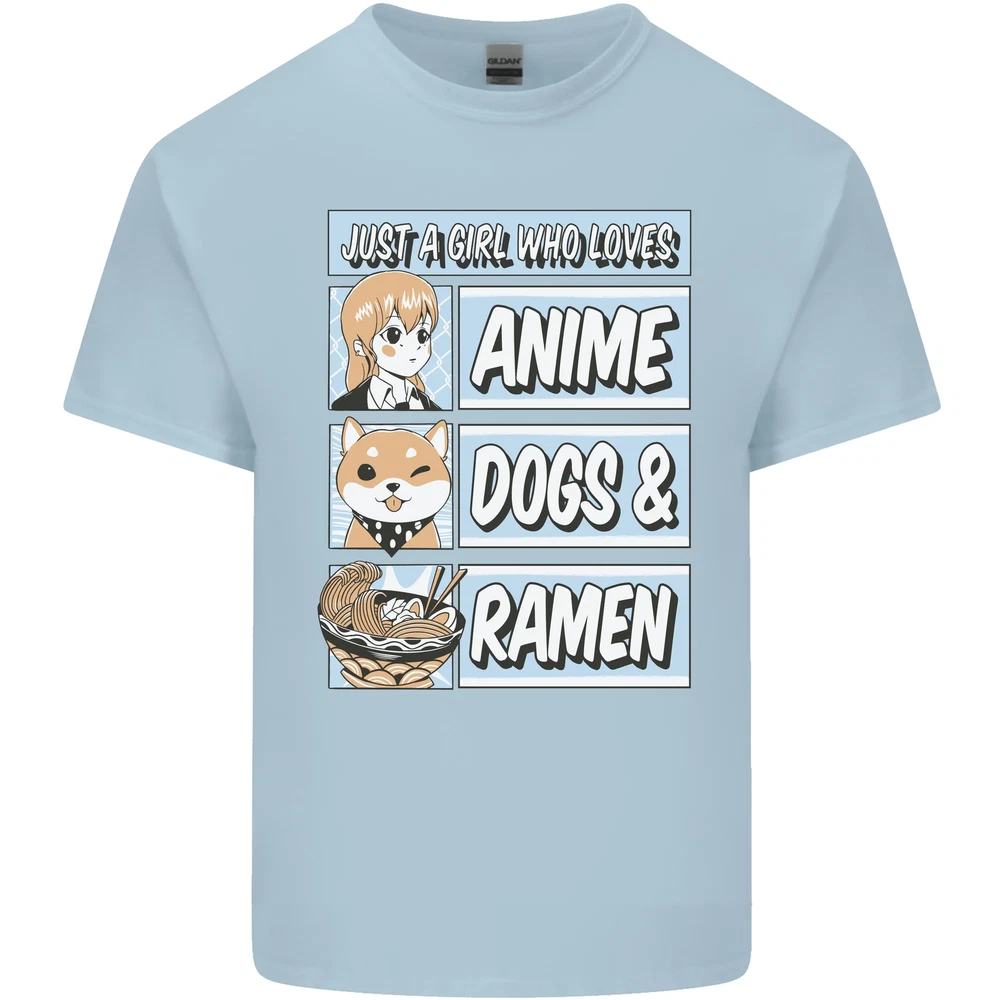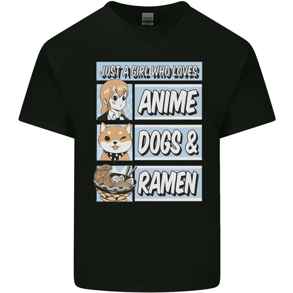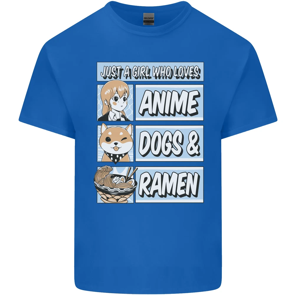 A Girl Who Loves Anime Dogs & Ramen Mens Cotton T-Shirt Tee Top
