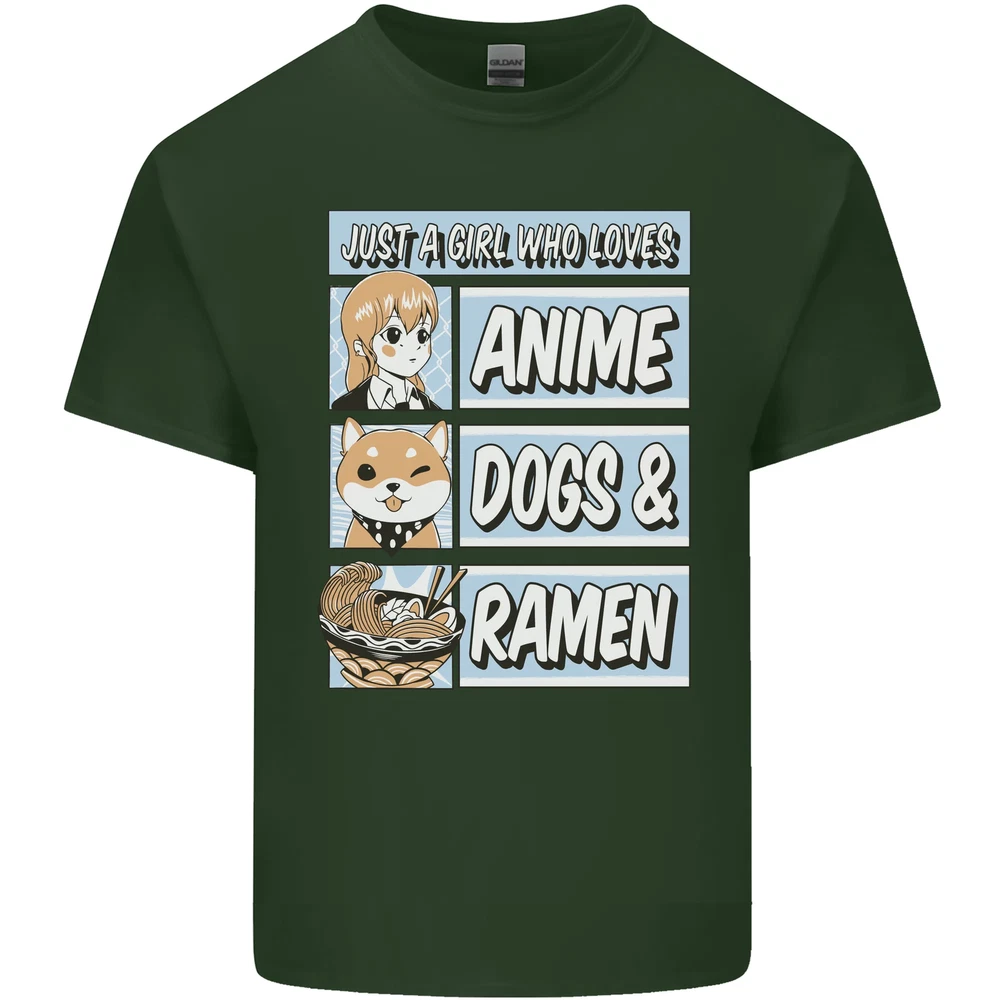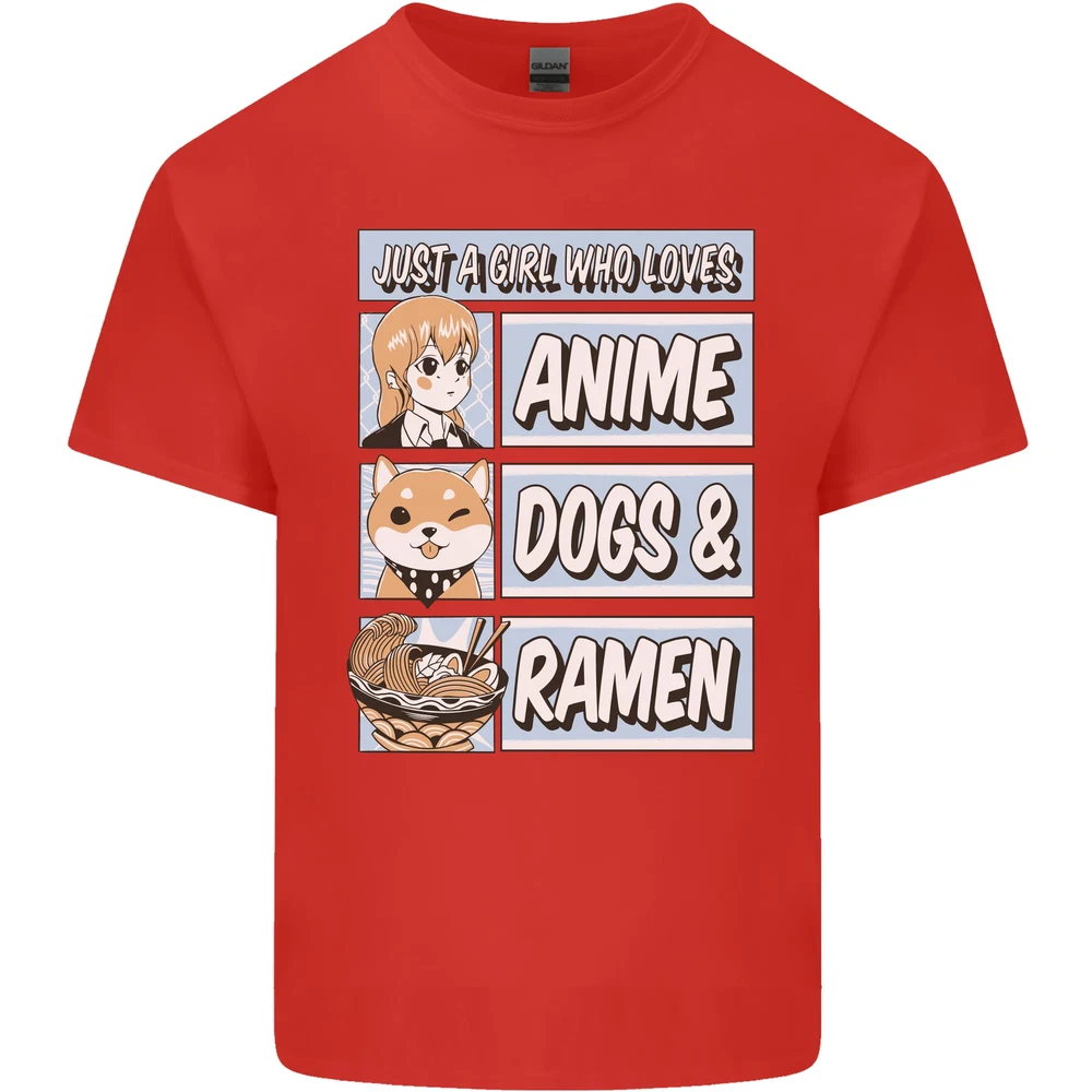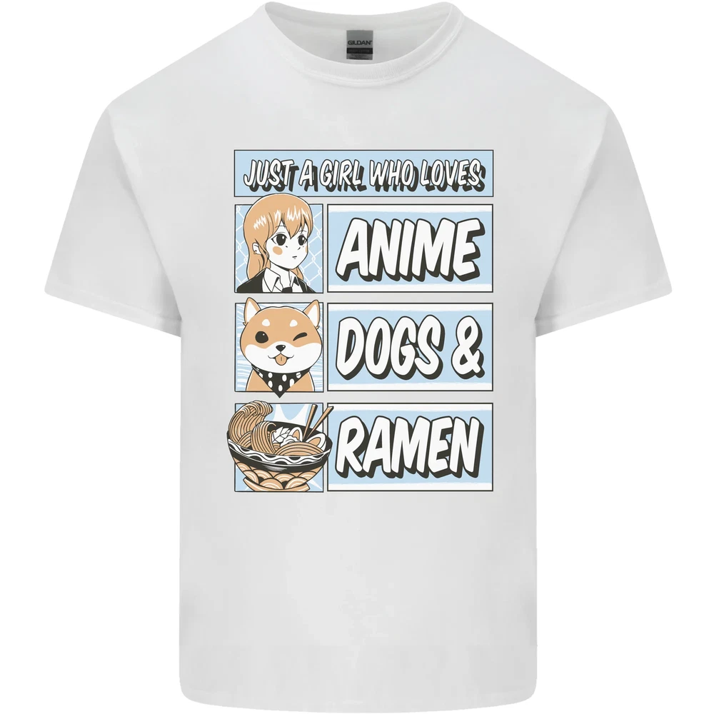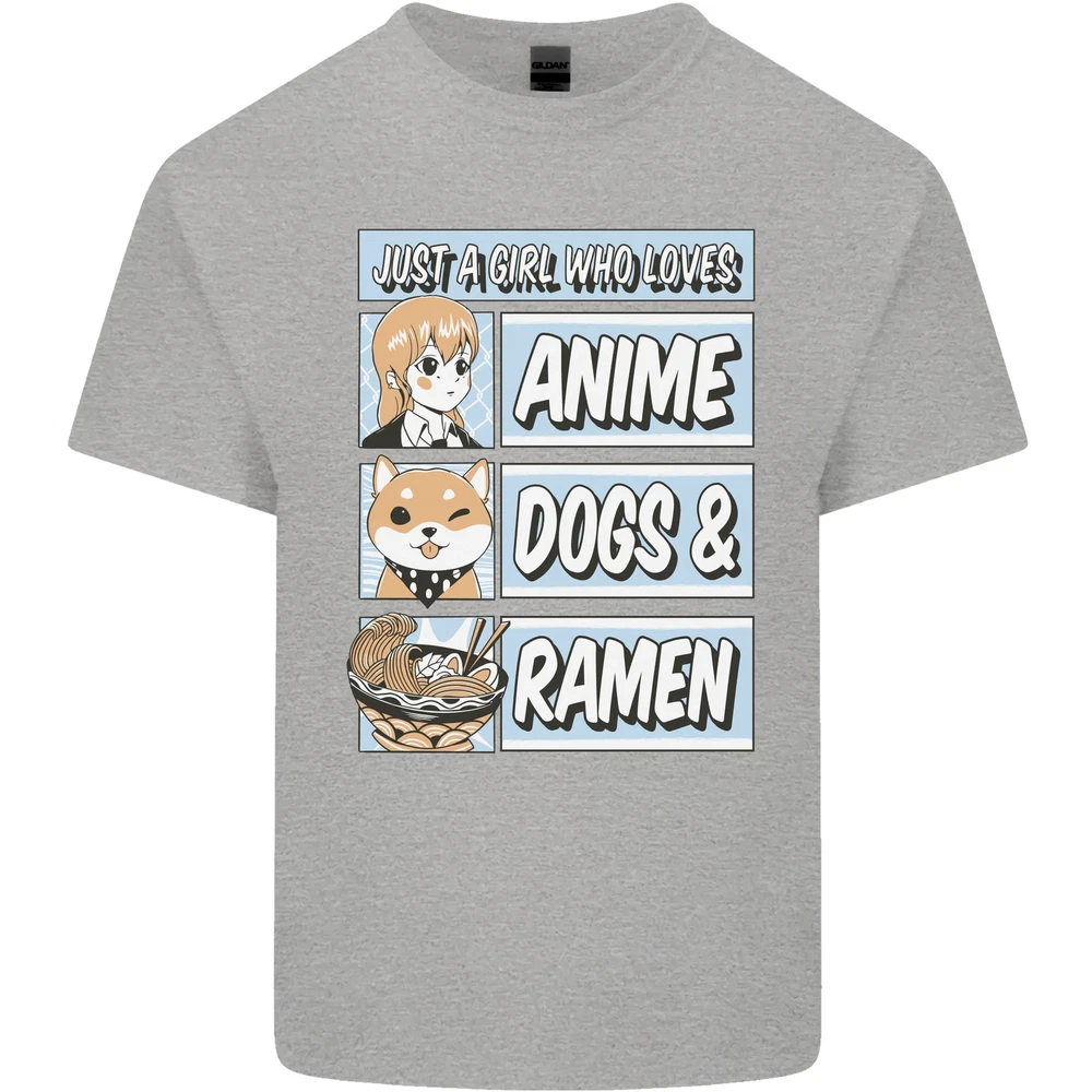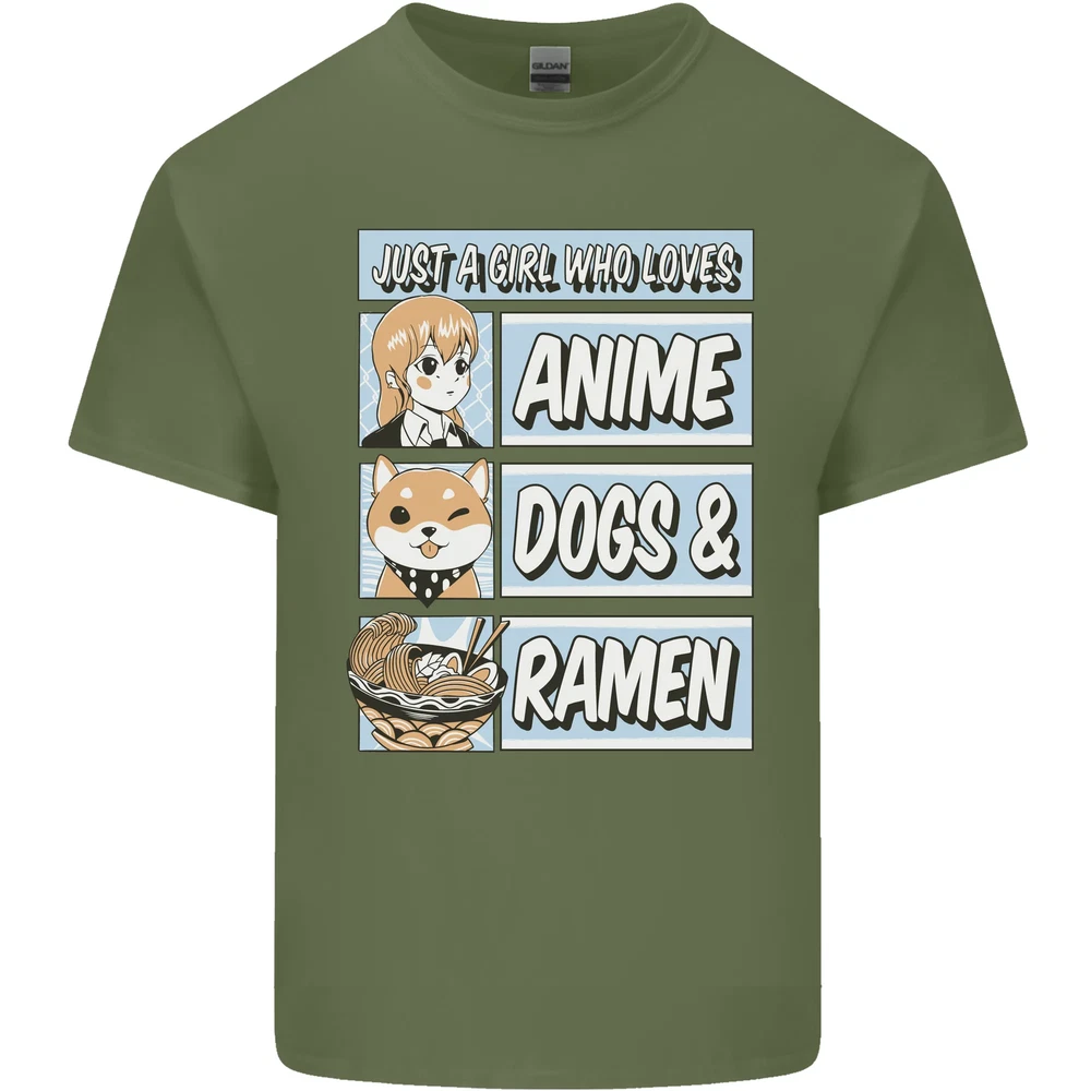 A Girl Who Loves Anime Dogs & Ramen Mens Cotton T-Shirt Tee Top