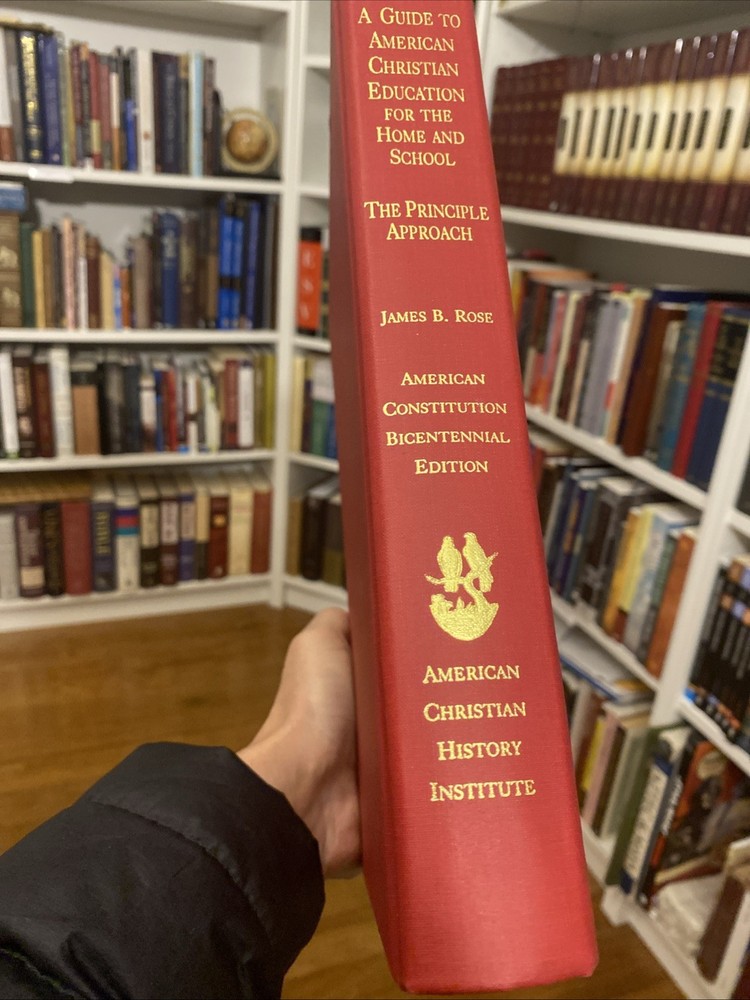 ### Item Description: **A Guide to American Christian Education for the Home and School: The Principle Approach** by James B. Rose – the classic comprehensive guide for Biblical classical homeschooling and Christian schools. - **Approximately 500 pages** (xlv + 502 pages) in oversized hardcover format. - Packed with over 100 charts, diagrams, sample lessons, curriculum overviews, and a Biblical index. - Covers the Principle Approach philosophy, America's Christian history and government, the Seven Principles, notebook method, and practical application for home education, school-at-home, and Christian schools from kindergarten through high school. - Essential resource for homeschool parents seeking to restore Biblical reasoning, Christian character, and Providential history in education. Condition: **Excellent/Gently used** – Clean pages, tight binding, no writing/highlighting/underlining noted, minimal shelf wear. A well-cared-for copy ready for your homeschool library. This timeless 1987 edition (American Constitution Bicentennial) is highly valued in Principle Approach and classical Christian education communities. Perfect for families committed to raising children with Biblical principles of self-government and liberty. Fast, secure shipping with careful packaging. Questions welcome – thanks for looking!